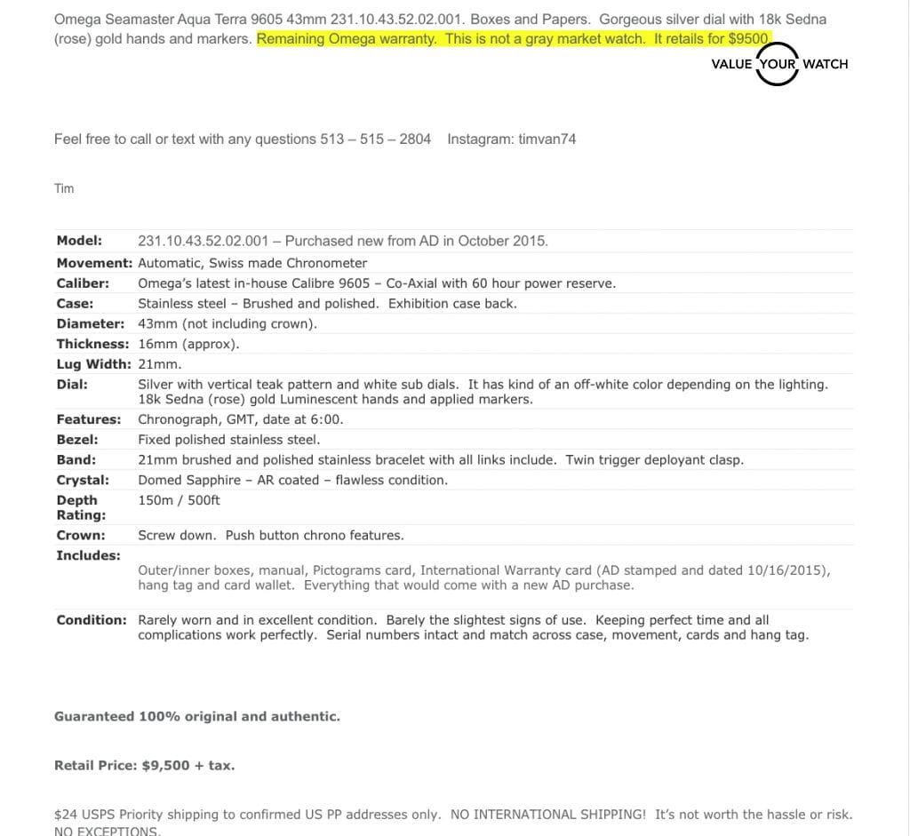 When you combine Pictures, Videos, and great watch description, it will be much easier for you to sell the watch, but more importantly, you will be much easier to deal with compared to some other watch sellers. There are not that many people who use all the three ways to describe the watch.