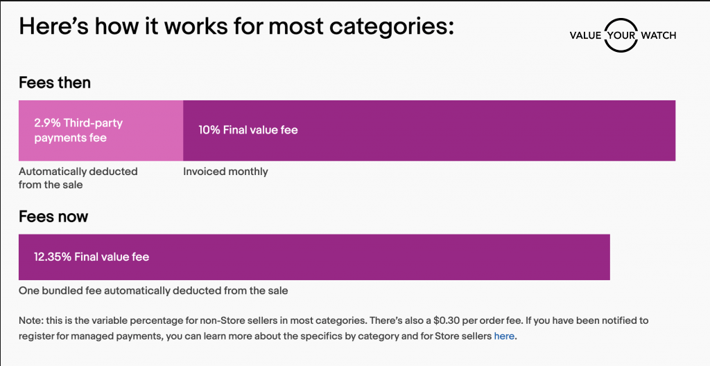 The fees for selling watches on eBay for non-Store sellers as well as Starter eBay Store