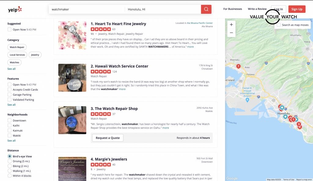 After doing the quick search, you might see the same watchmaker on google as well as Yelp. That’s your starting point. There is a likelihood that those watchmakers have a good reputation and many people like them. Now you need to find out if you will like them as well.