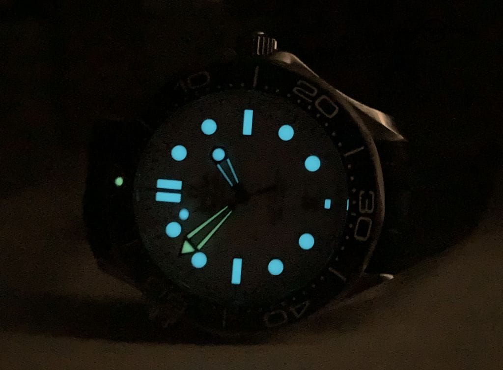 Delivered with a durable strap, joint with the quality of the build, gives me confidence it will handle my outdoor lifestyle. For a more dressy look, the bracelet is available from Omega for $700. The watch doesn’t need the bracelet. Wearing the black strap with the black bezel looks splendid. I have no reason to change the appearance. Doing so would change the spirit.