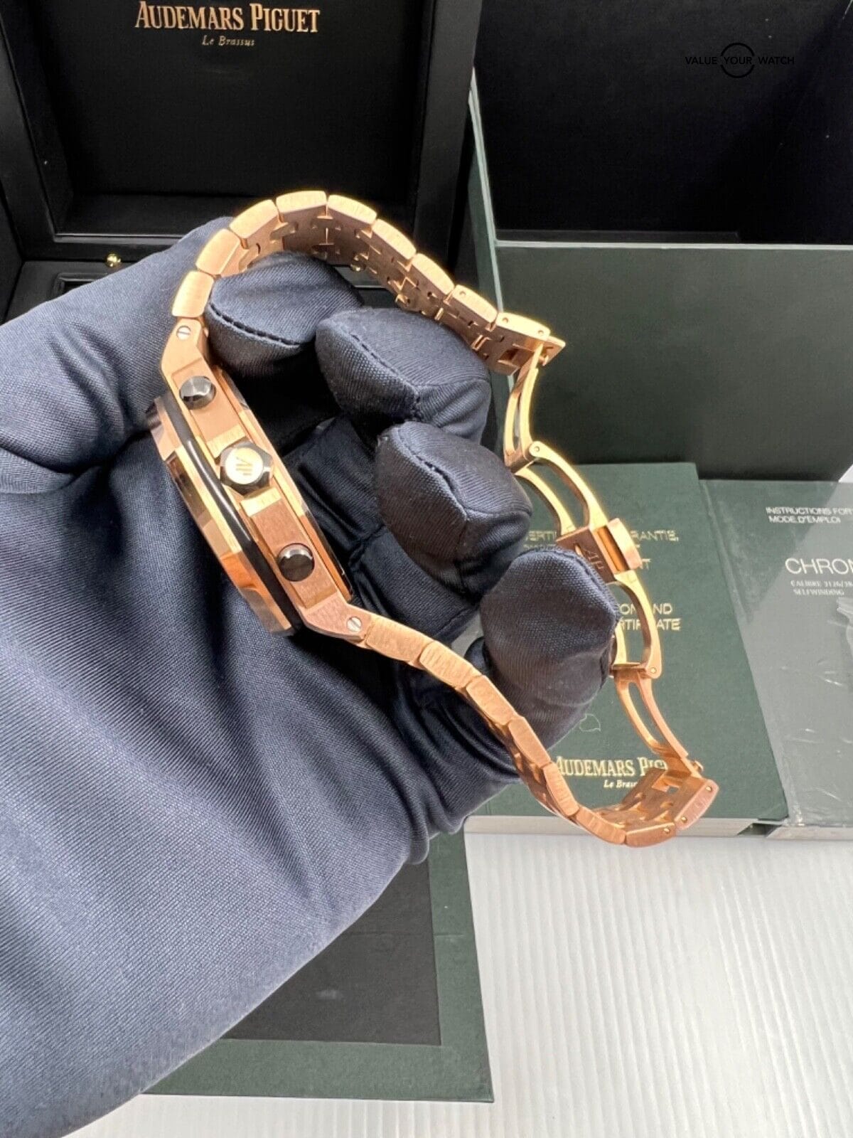In conclusion, the 2017 Box Papers Audemars Piguet Royal Oak Offshore Salmon Dial Rose Gold 42mm is a remarkable timepiece that embodies the brand’s legacy of excellence and innovation. Whether you are considering buying this watch or selling one, following these tips will help ensure a smooth and satisfying transaction in the world of luxury watches.
