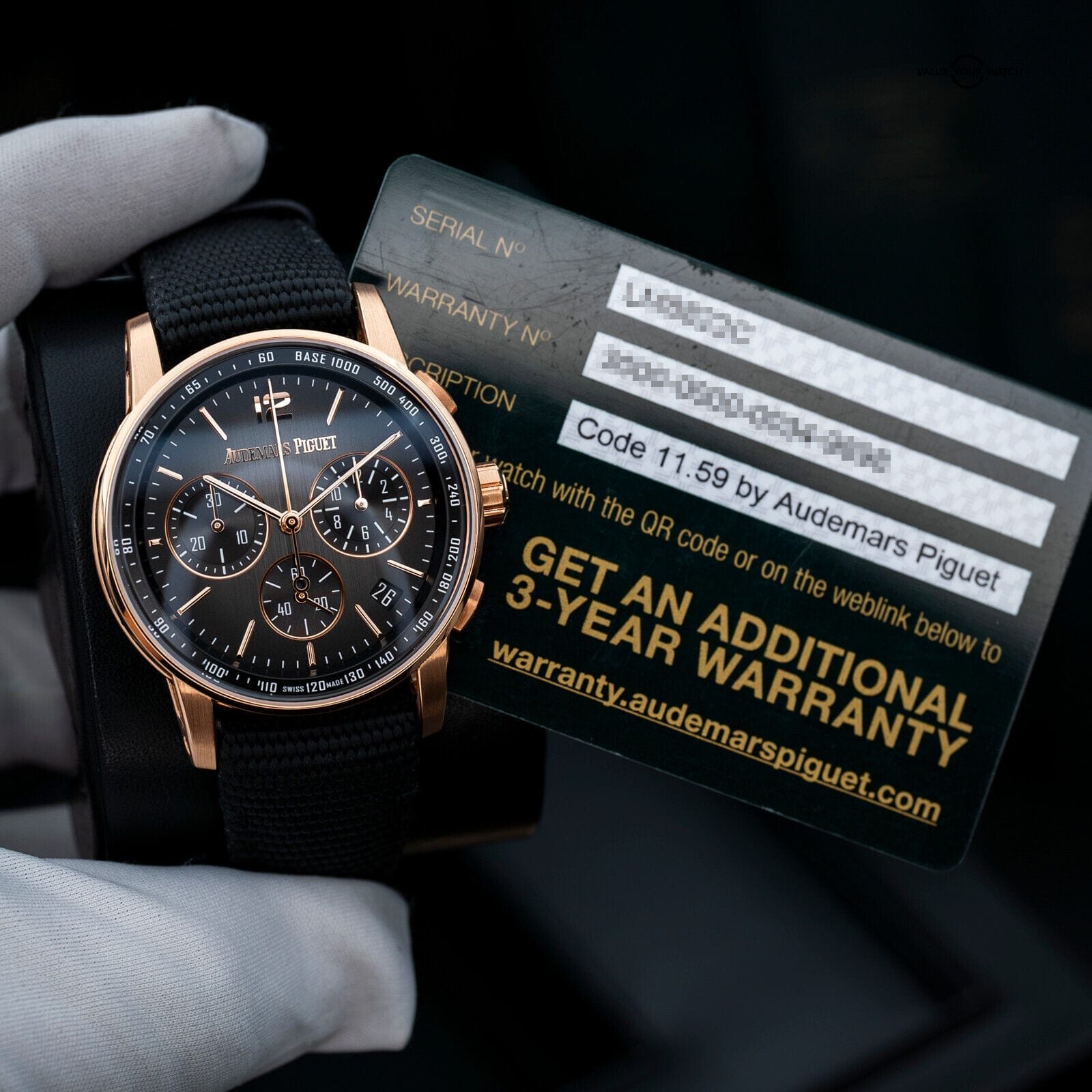 This timepiece comes as a complete set with both the authentic AP outer and inner boxes and the international warranty card. This watch was purchased brand new from an AP boutique on June 23rd, 2023 so the international warranty will be valid until June 2028.