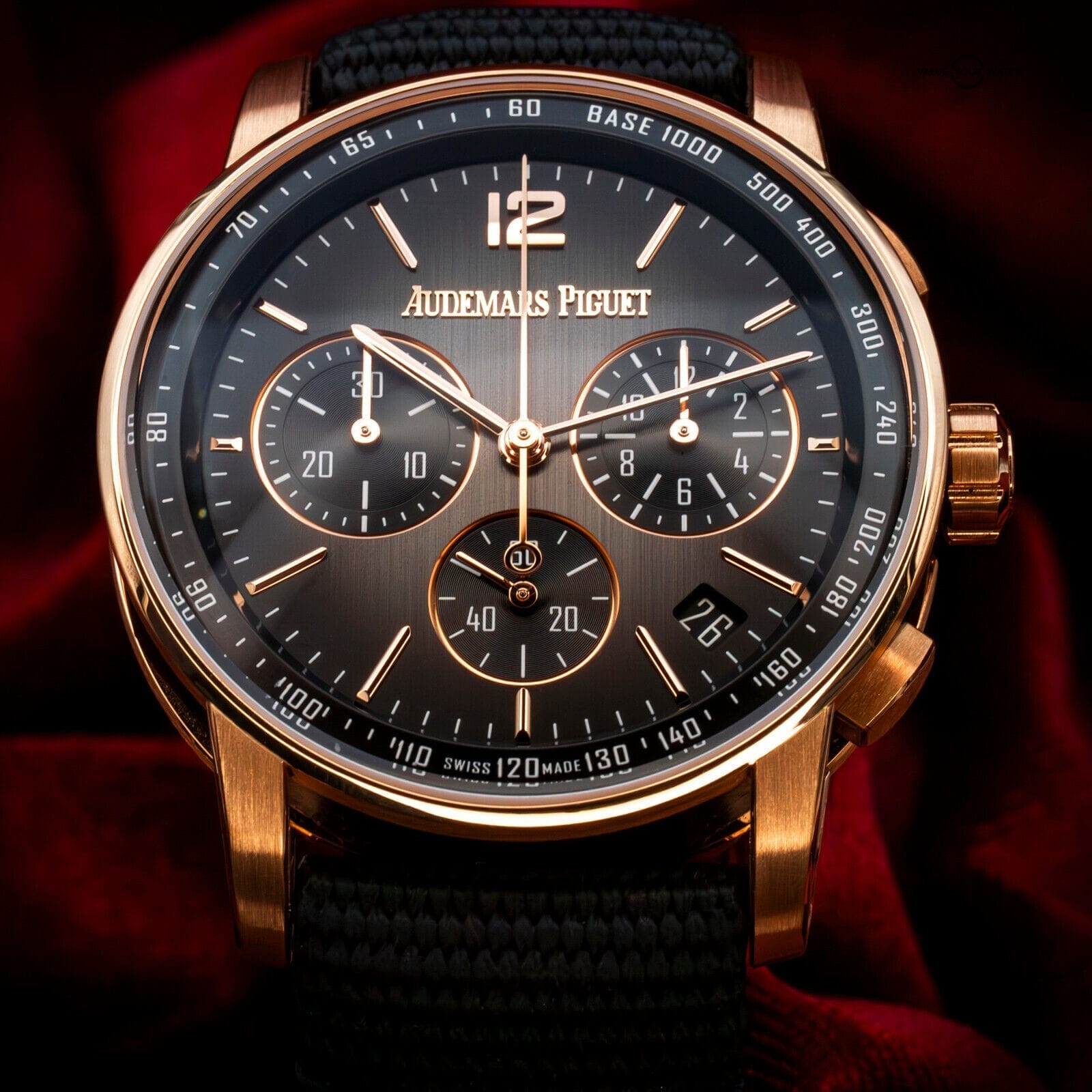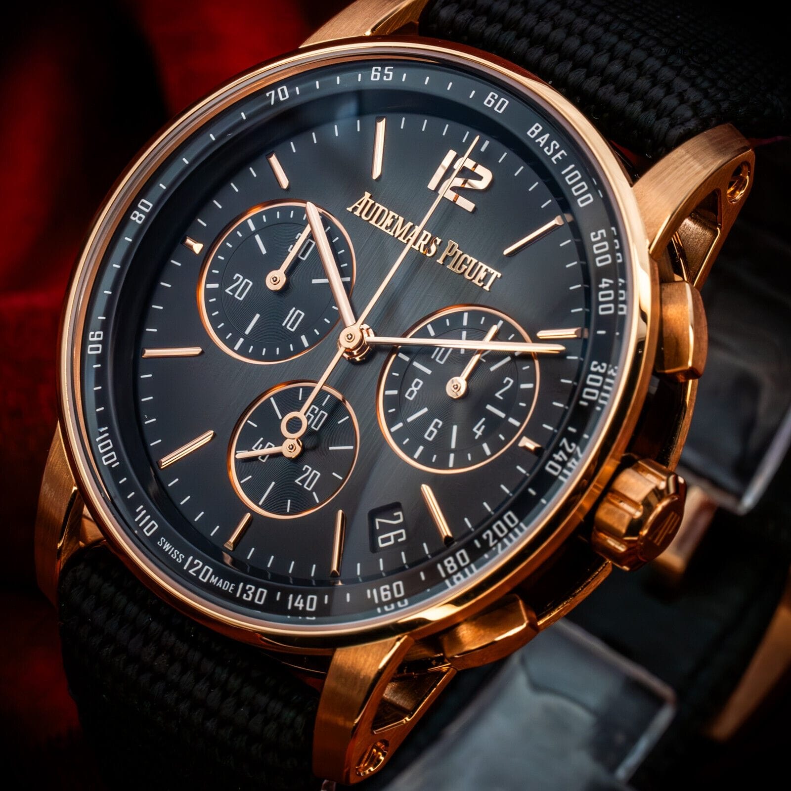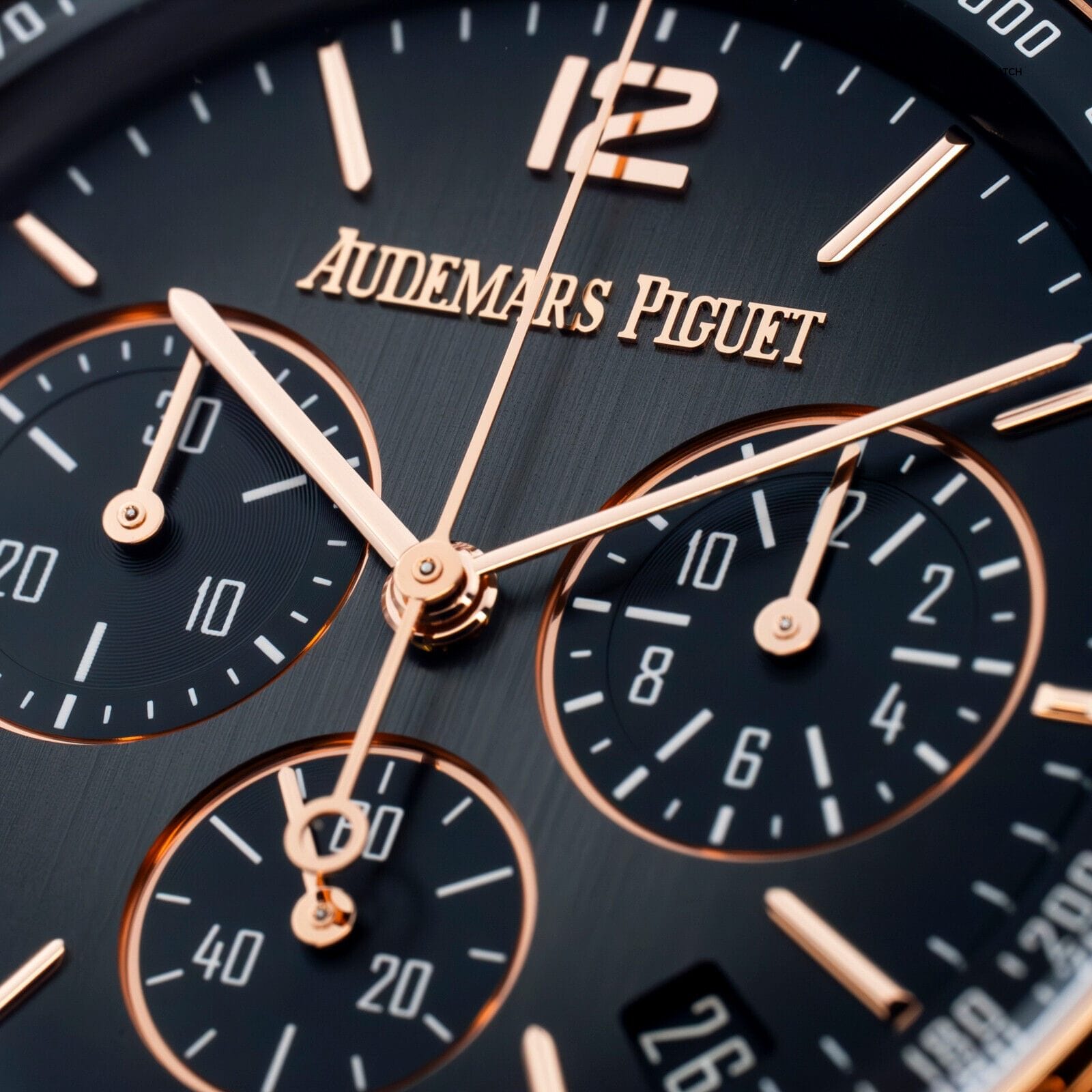 A simply stunning release from AP, this Code 11.59 is dripping with class. With a stunning black and grey smoked dial, striking 18 karat rose gold and black ceramic throughout the case, this piece is sure to turn heads.