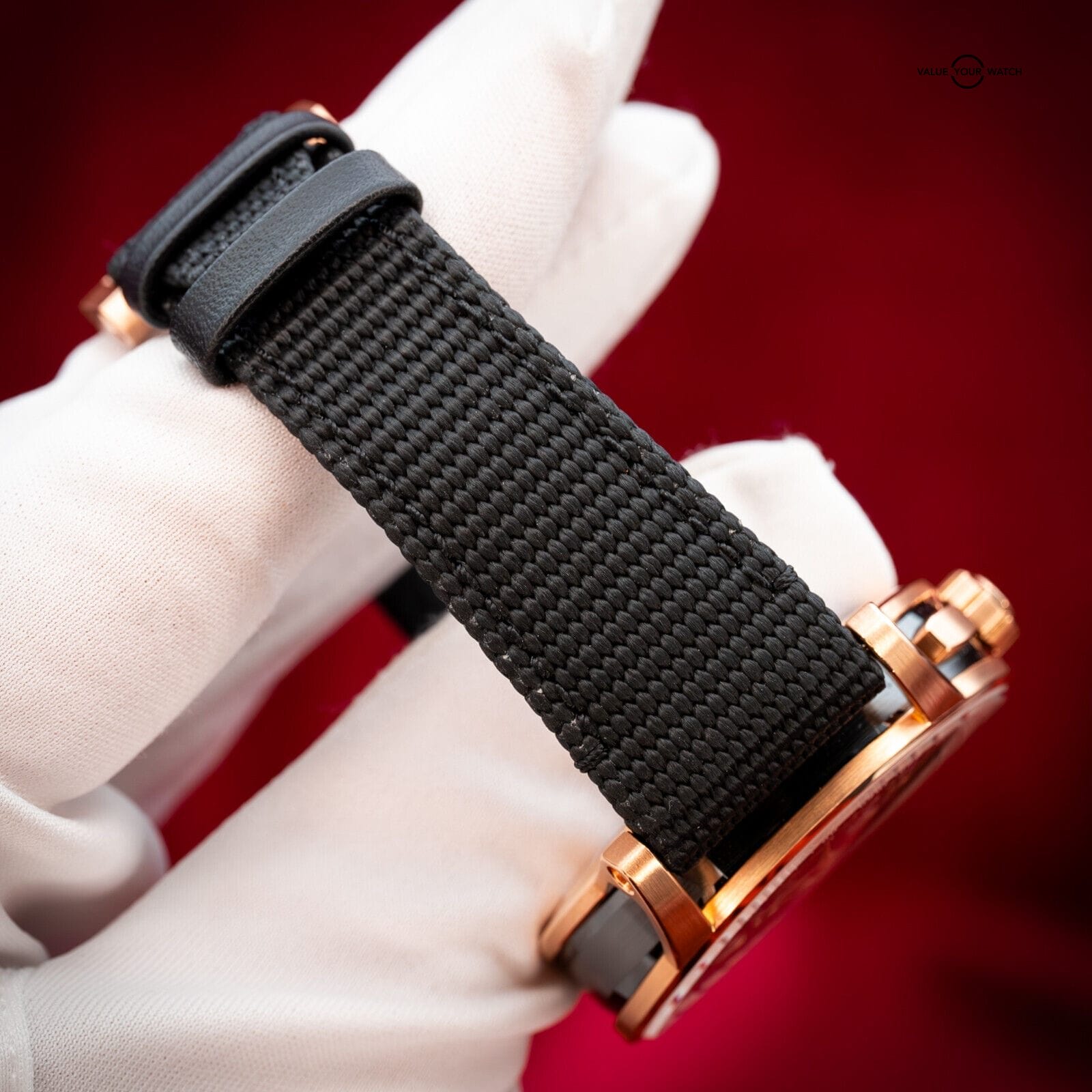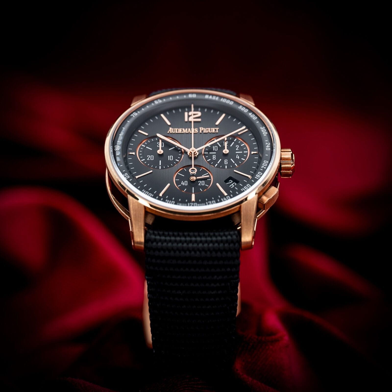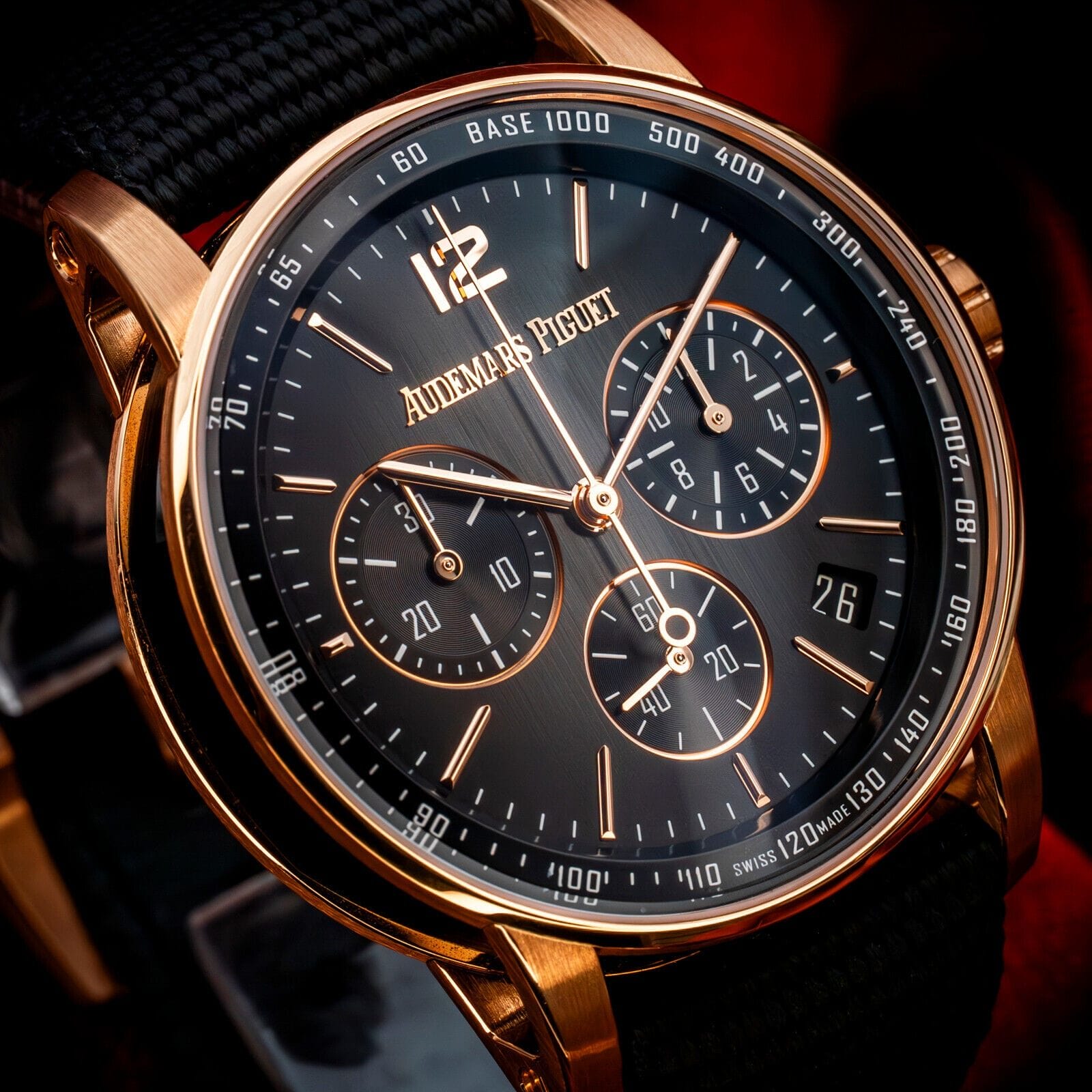 A simply stunning release from AP, this Code 11.59 is dripping with class. With a stunning black and grey smoked dial, striking 18 karat rose gold and black ceramic throughout the case, this piece is sure to turn heads.