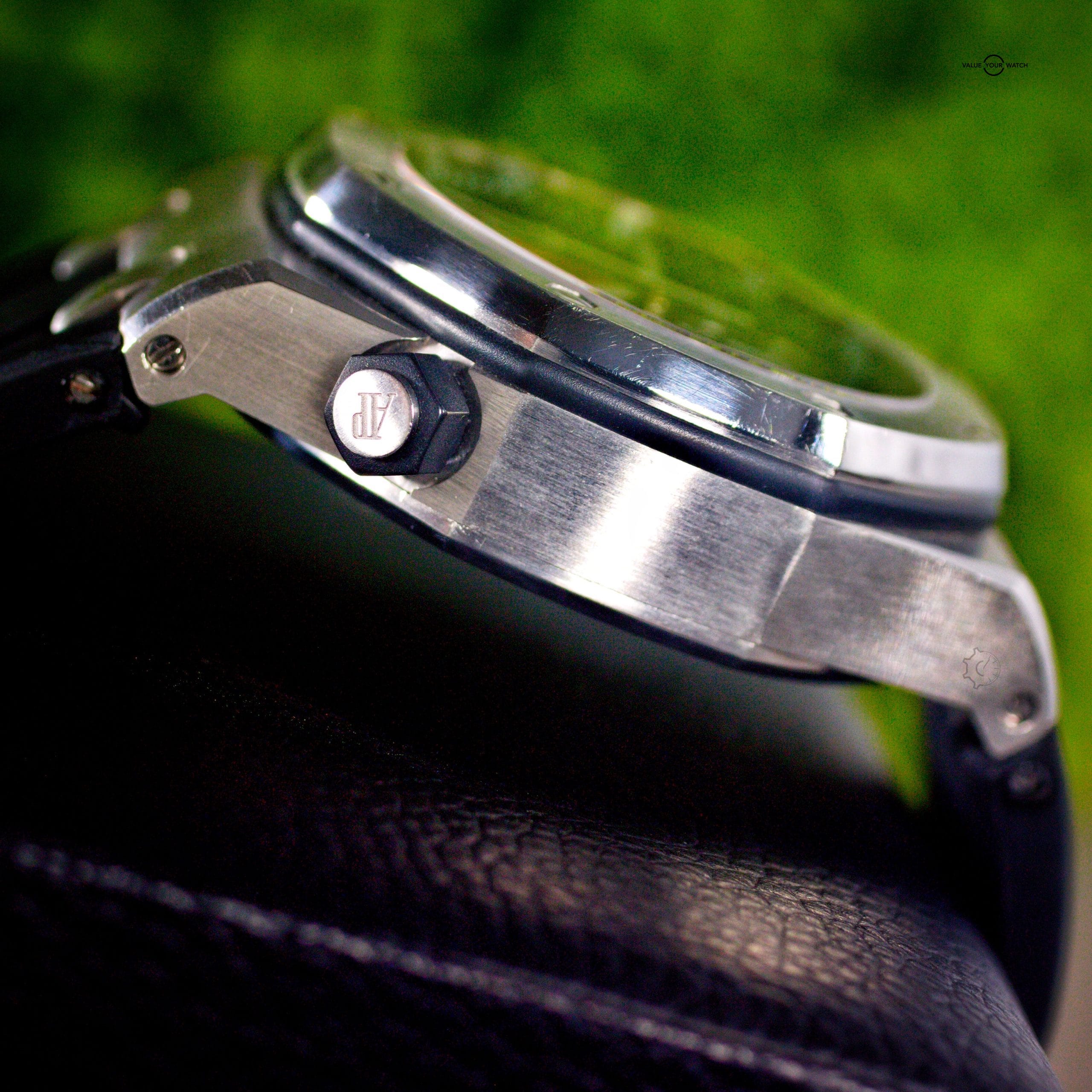 This limited numbered edition Royal Oak Offshore Alinghi Polaris features all of the indications needed for a regatta. The watch sports a flyback chronograph, regatta countdown timer, 20-minute counter at 9 o’clock, 6-hour counter at 6 o’clock, and 60-second counter at 3 o’clock. The aperture below 12 o’clock switches between red and black to indicate the passage of a minute. At 10 o’clock is a crown that controls the internal bezel with the cardinal points and 60-minute counter. The case back is customized with a compass design for this limited edition. This watch comes in its original collector’s set Sailing Winch-shaped inner box, with manual & service papers dated 2019! Local F2F available in Southern California |