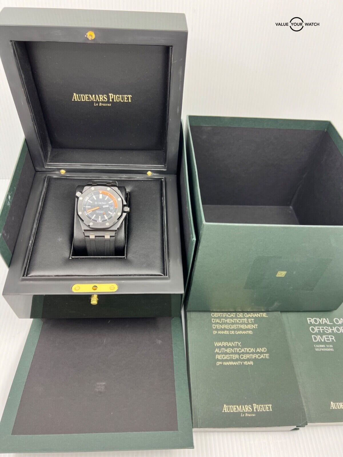 2014 Box Papers AP Audemars Piguet Royal Oak Offshore Black Ceramic Orange Diver