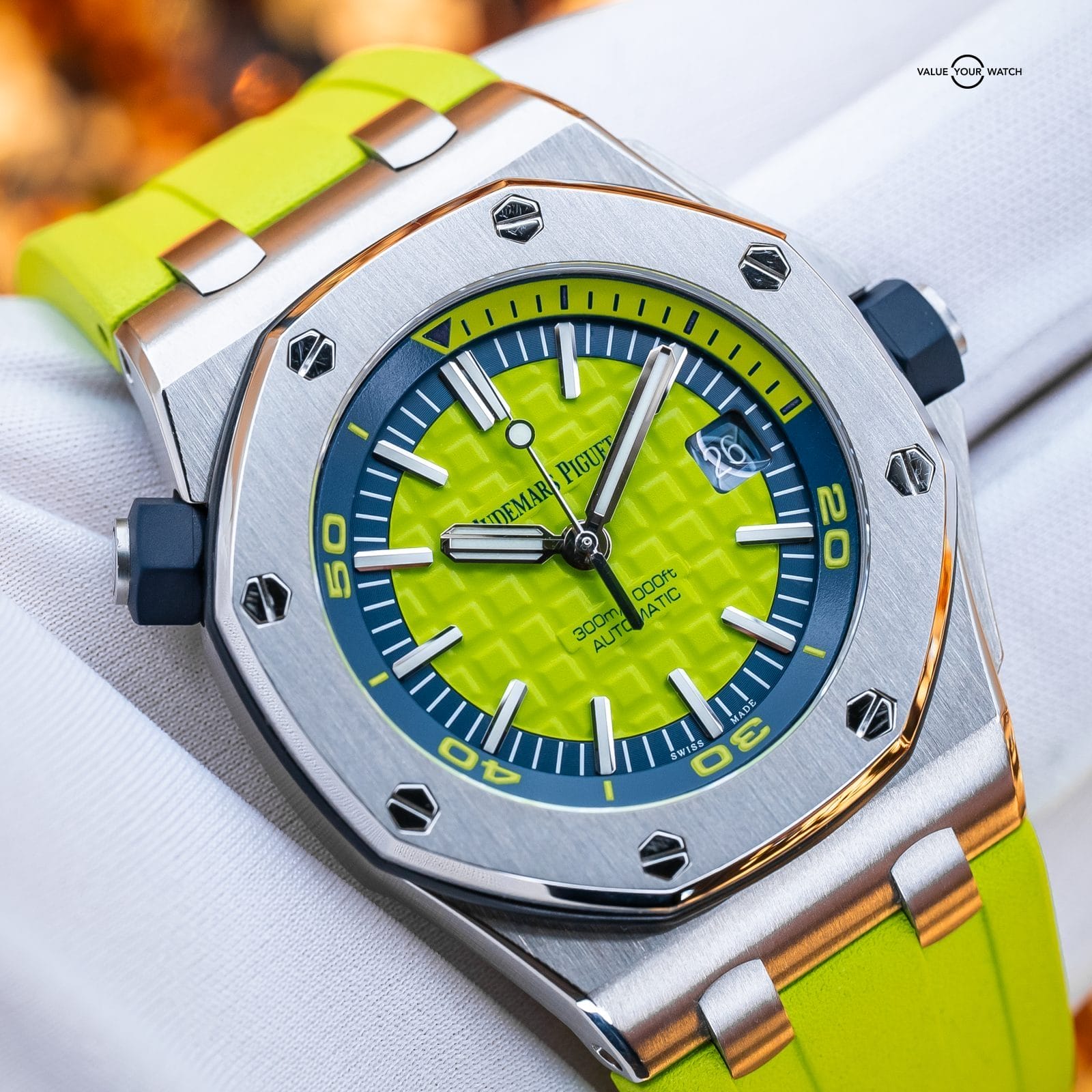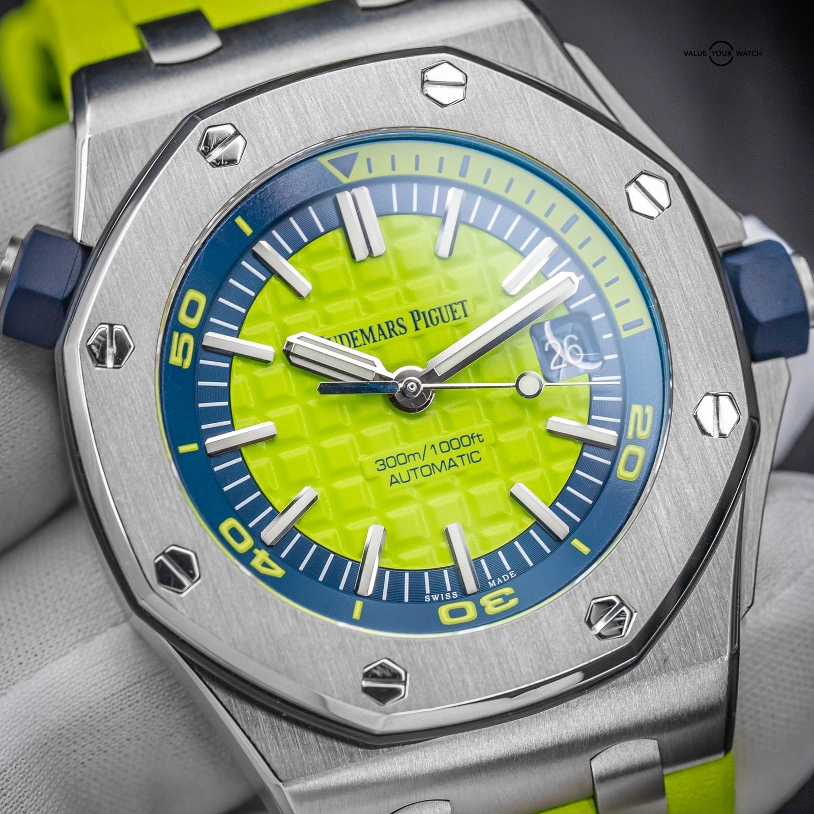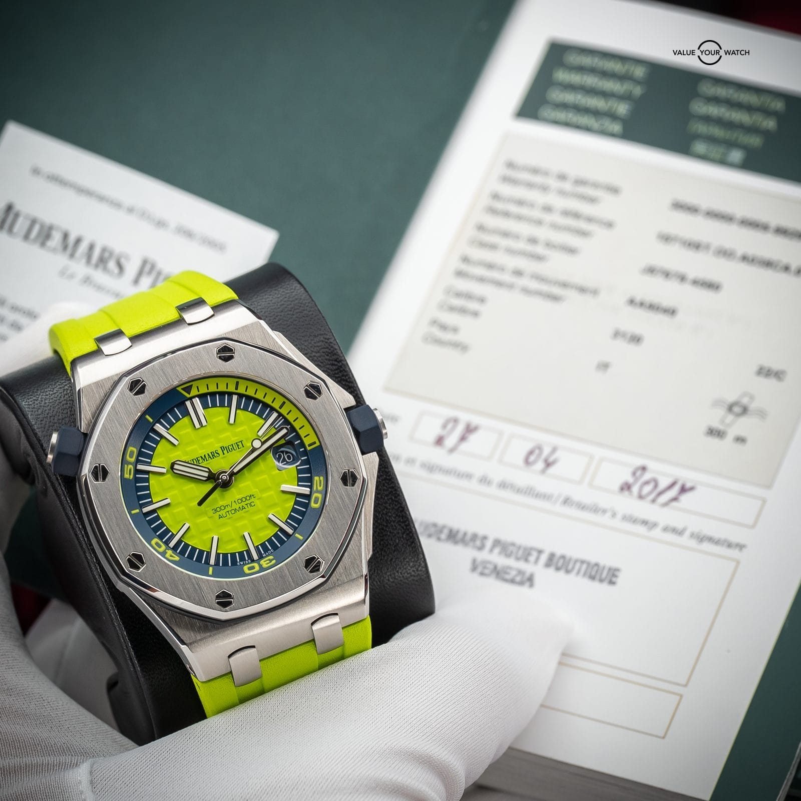 Audemars Piguet Royal Oak Offshore Diver “Lime Green” MINT! 15710ST.OO.A038CA.01