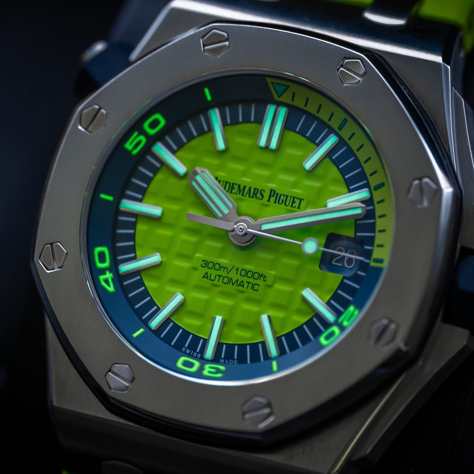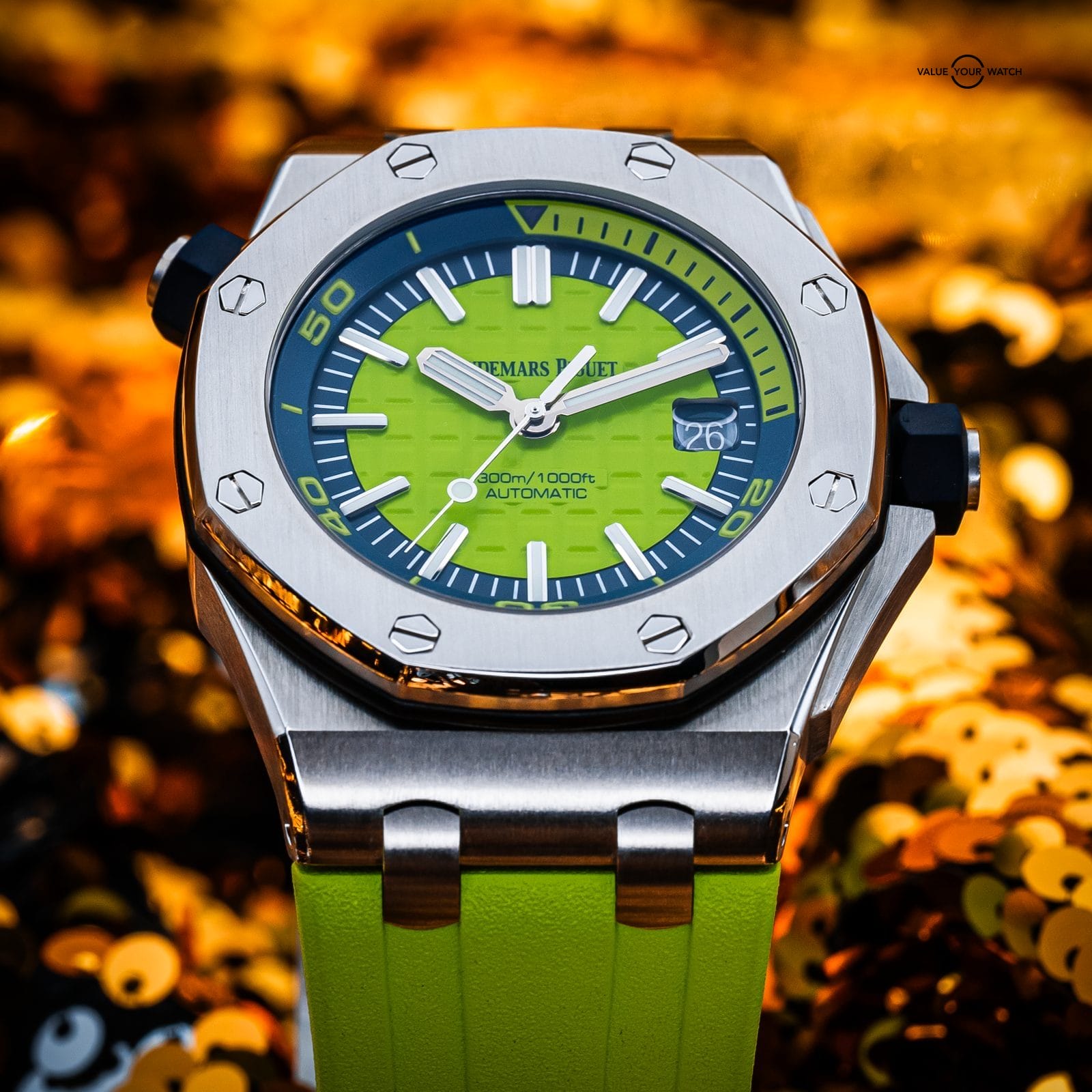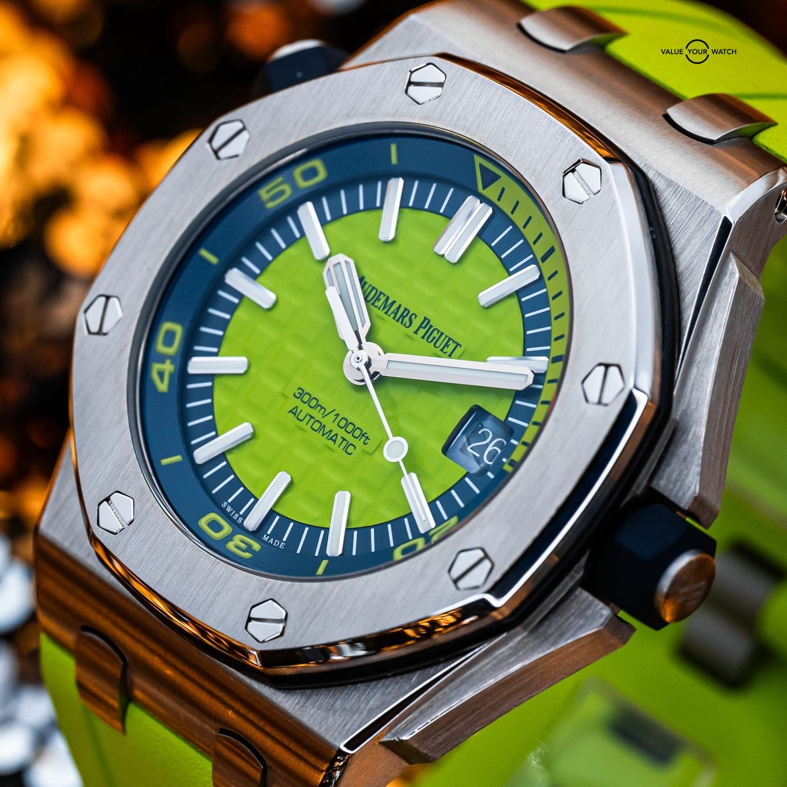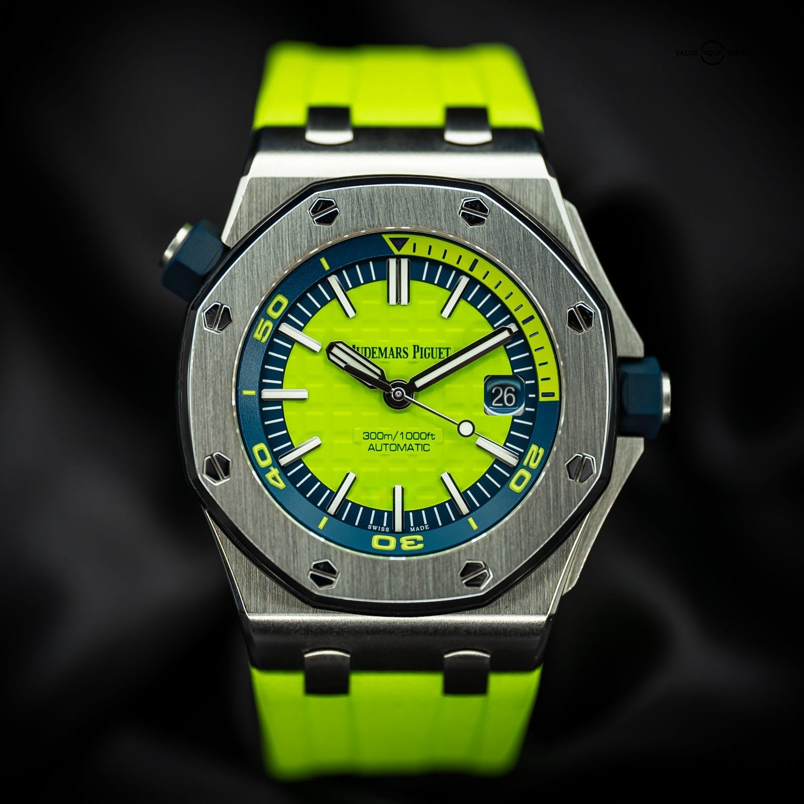 Audemars Piguet Royal Oak Offshore Diver “Lime Green” MINT! 15710ST.OO.A038CA.01