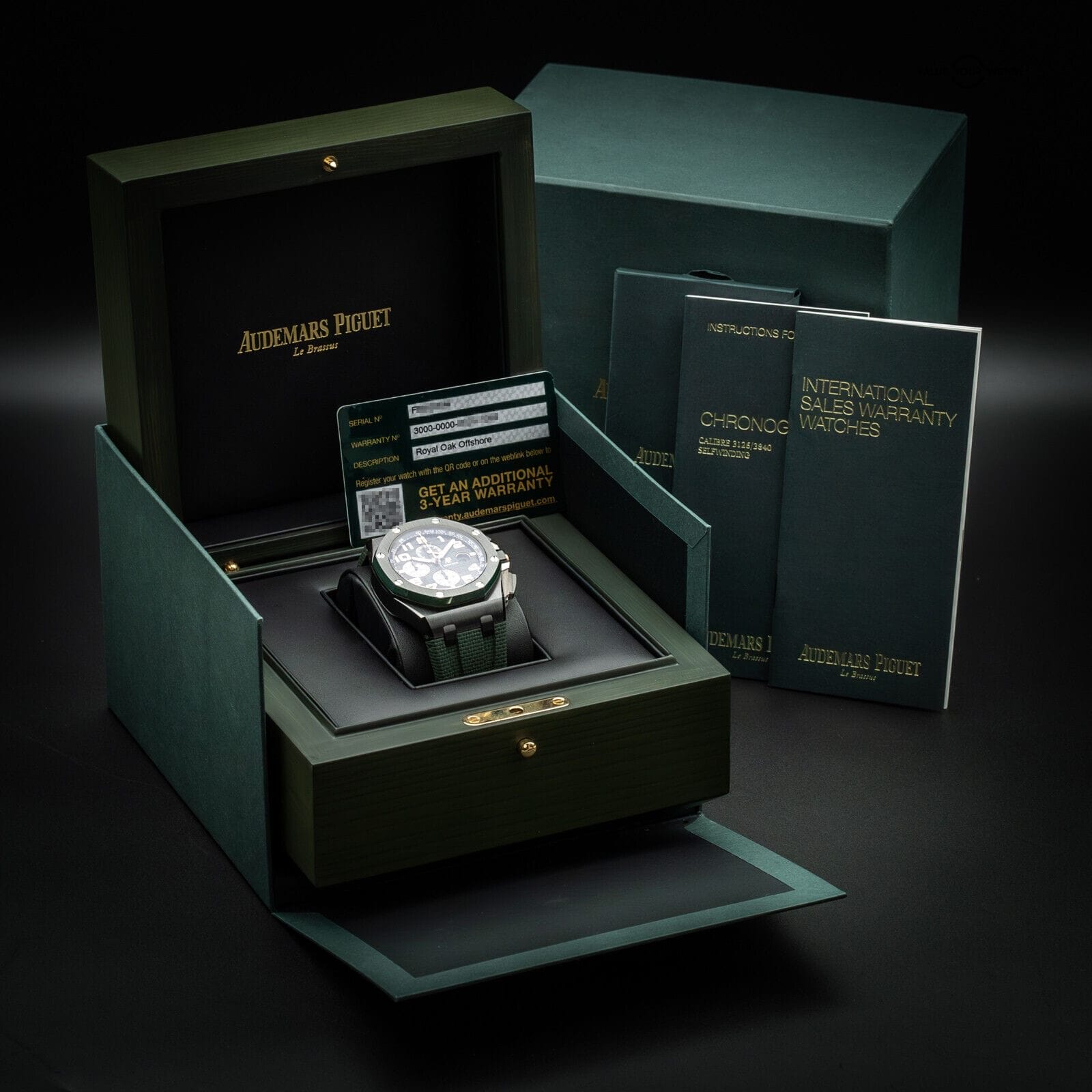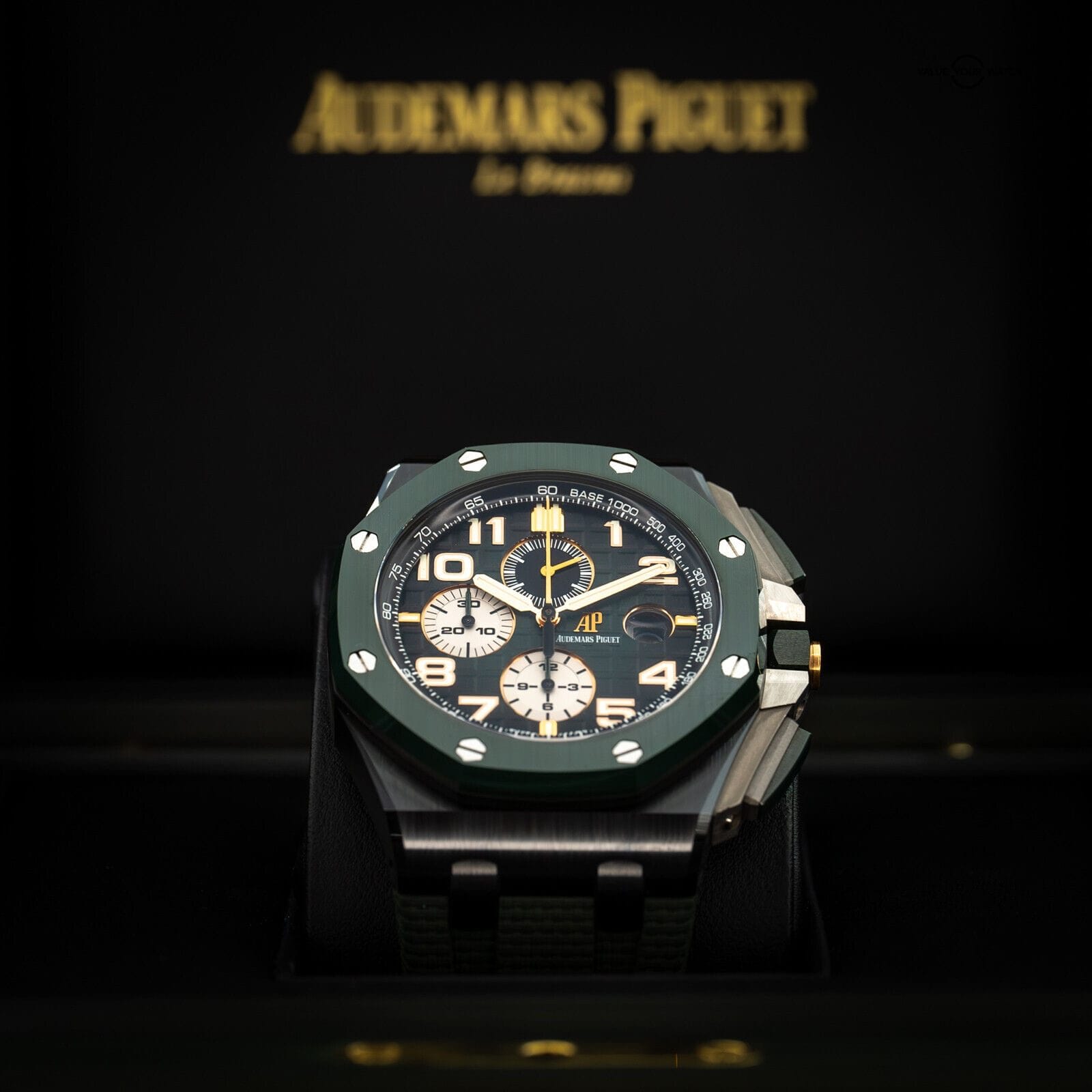 Audemars Piguet Royal Oak Offshore Green Ceramic 44mm Chronograph Complete Set MINT! 26405CE.OO.A056CA.01