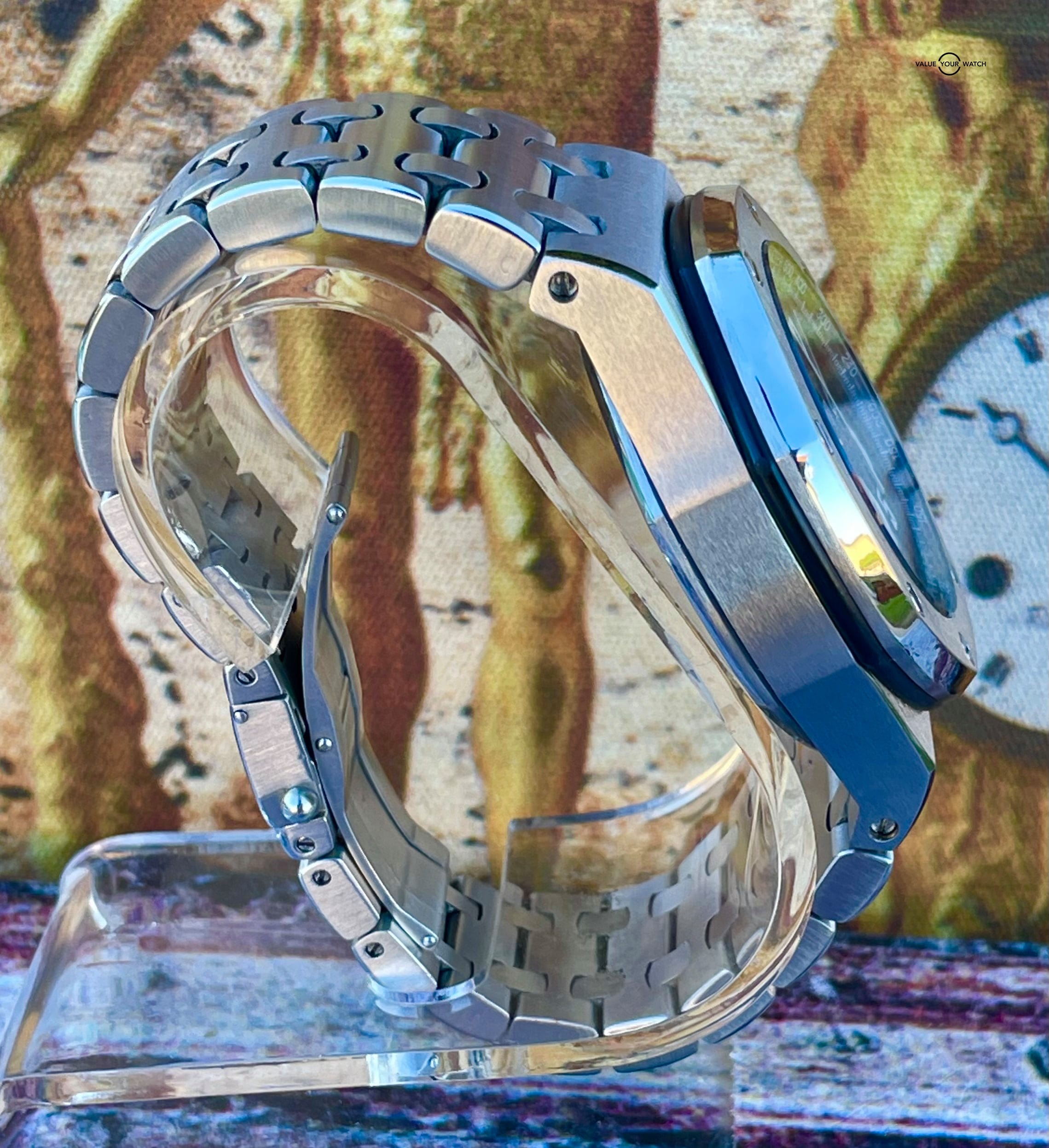 This is the AP that you’re looking for. Rare with a nice hint of blue dial that is not loud but is elegant. It doesn’t shout for attention but definitely eye catching to fellow AP owners. Different lighting changes how the blue dial is seen.