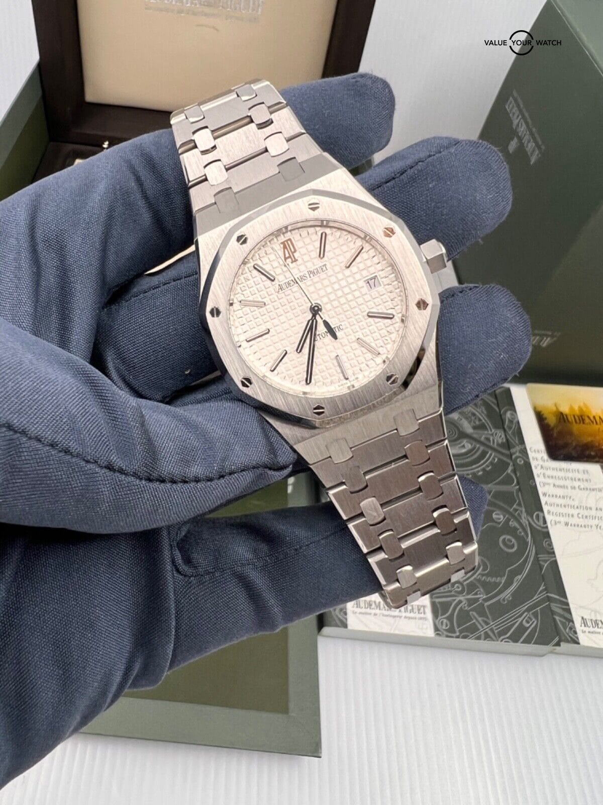 Guide to Buying and Selling 2011 AP Serviced Complete Set Audemars Piguet Royal Oak White Dial 39mm Steel Online