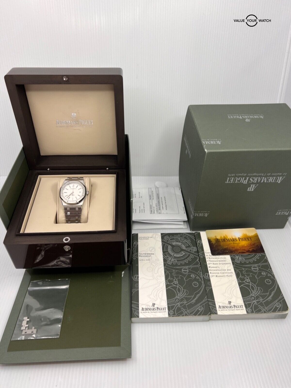 Guide to Buying and Selling 2011 AP Serviced Complete Set Audemars Piguet Royal Oak White Dial 39mm Steel Online