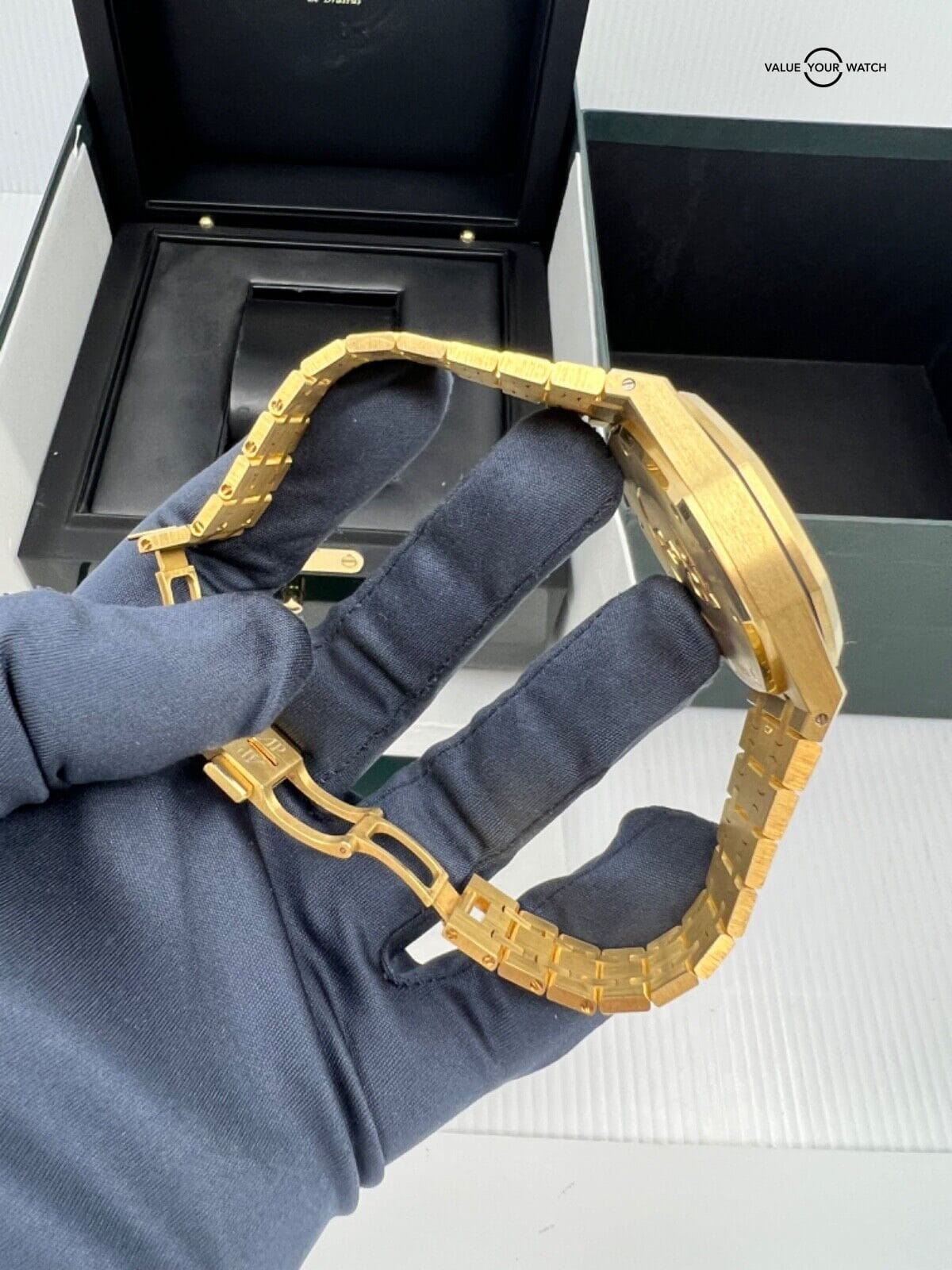2018 Rare Yellow Gold Blue Dial 41mm 18k Royal Oak Chronograph Box + Card