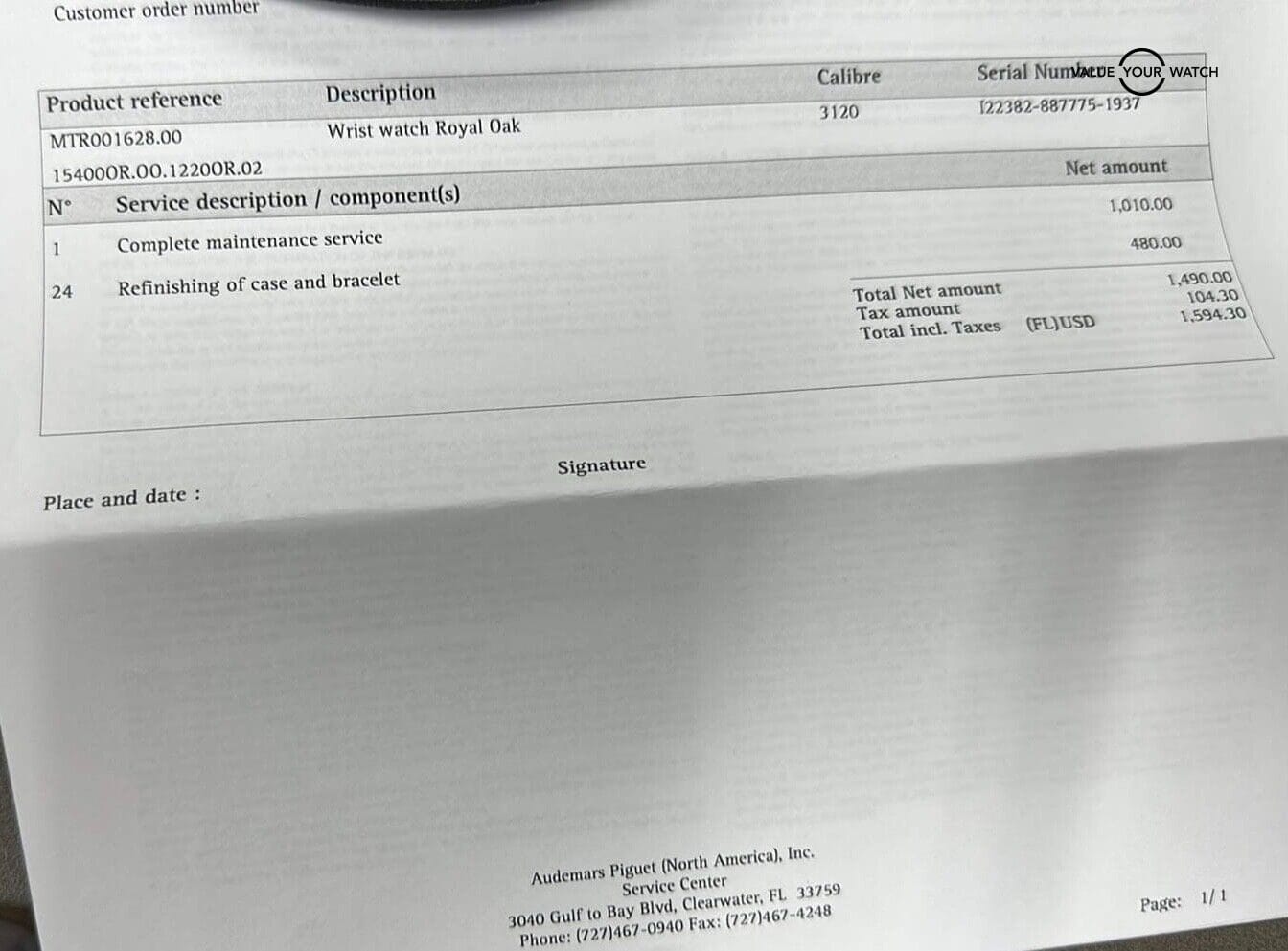 Fresh Audemars Piguet service May 2023. Factory warranty for 2 years