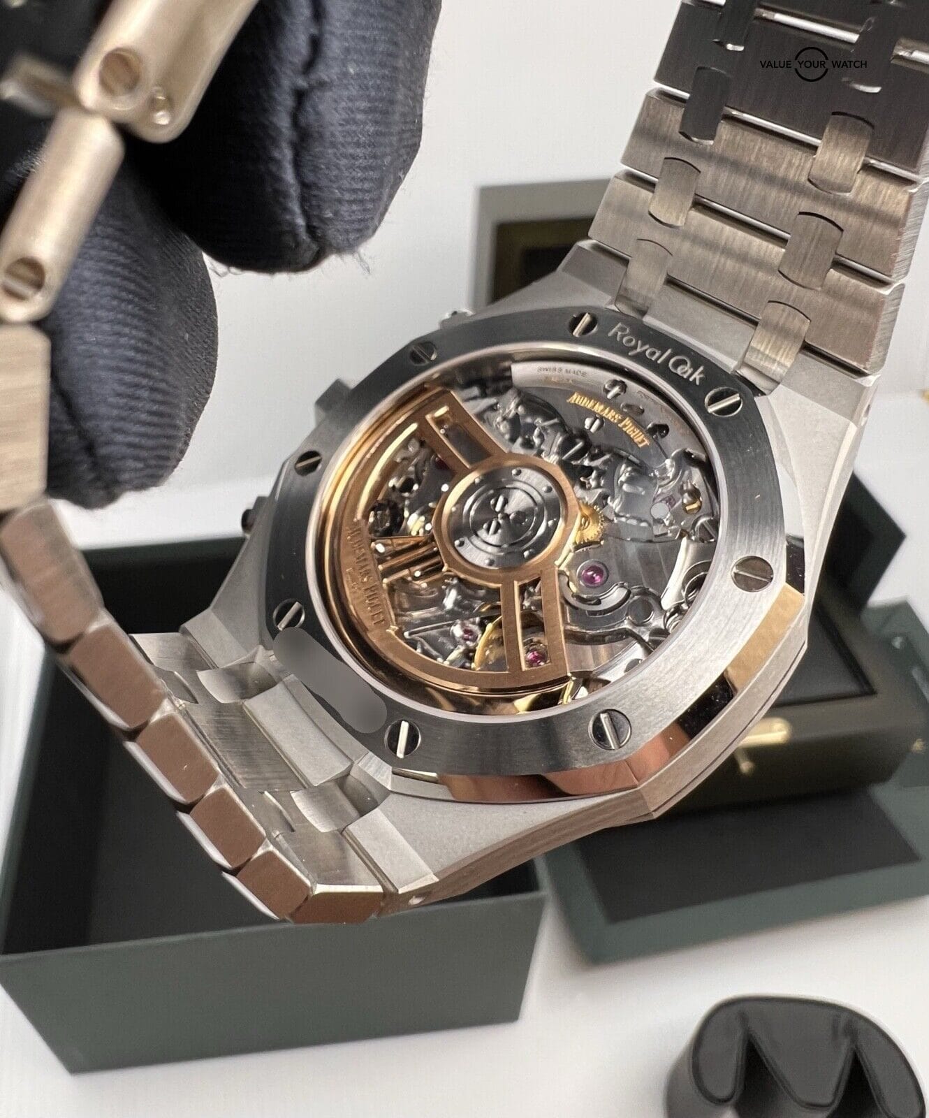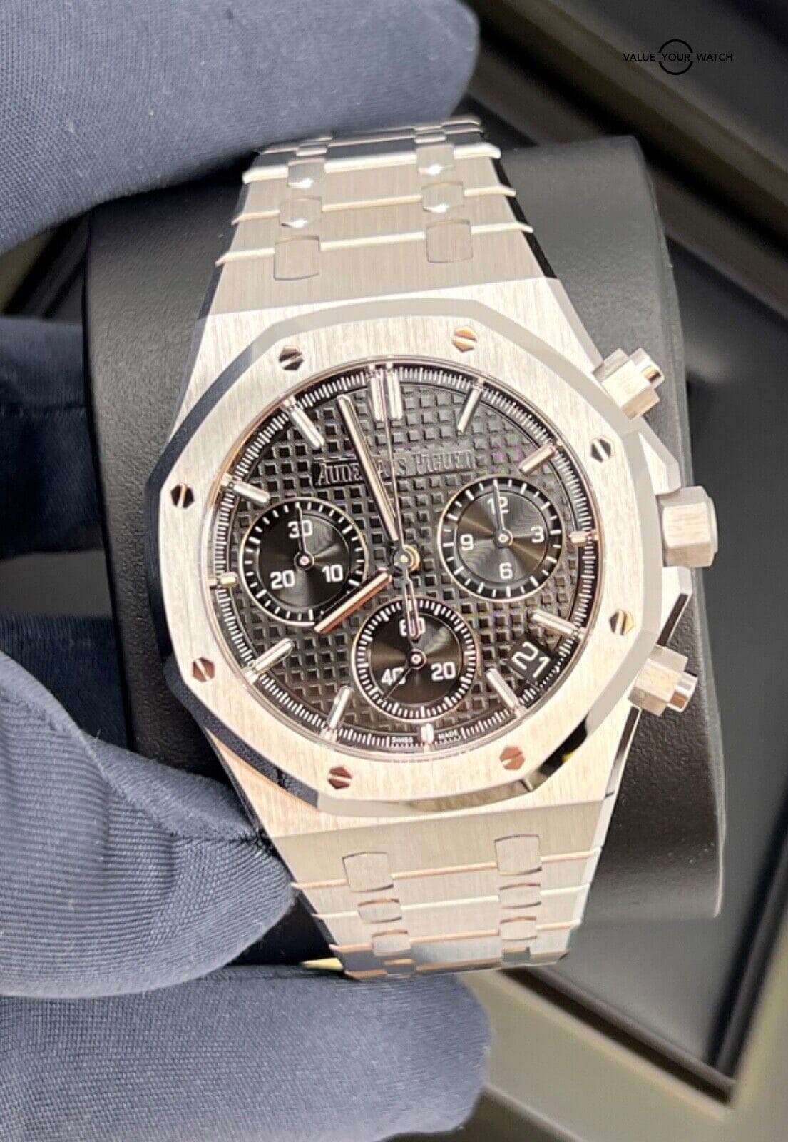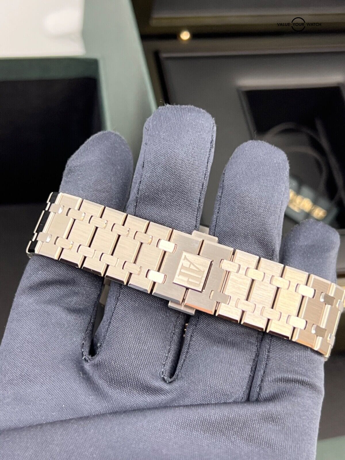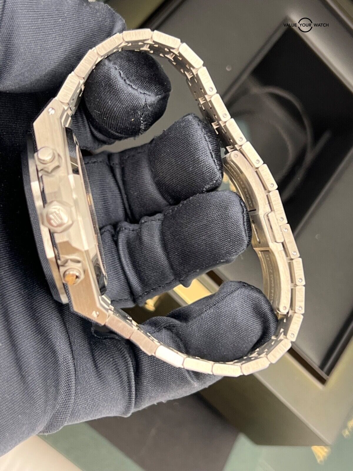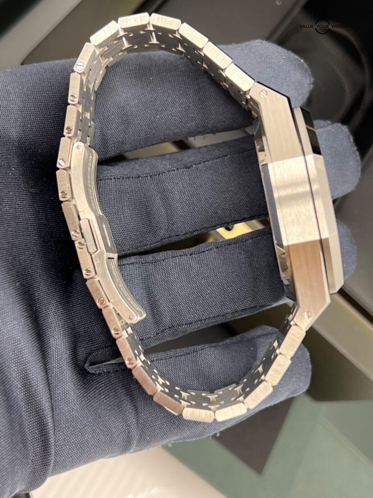 If you are considering selling your 2023 Audemars Piguet Royal Oak Chronograph, it is essential to preserve its condition and retain all original documentation, including the warranty card, box, and any servicing records. Having these documents enhances the watch’s authenticity and value.
