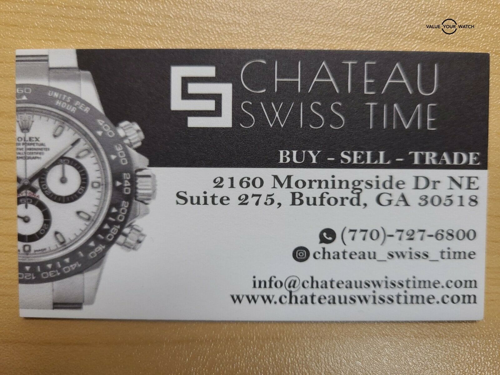 Brought to you by Chateau Swiss Time in Braselton GA. Family owned and operated pre-owned swiss watch retailer. We have been involved in the business of buying, selling and collecting fine timepieces for over 22 years.