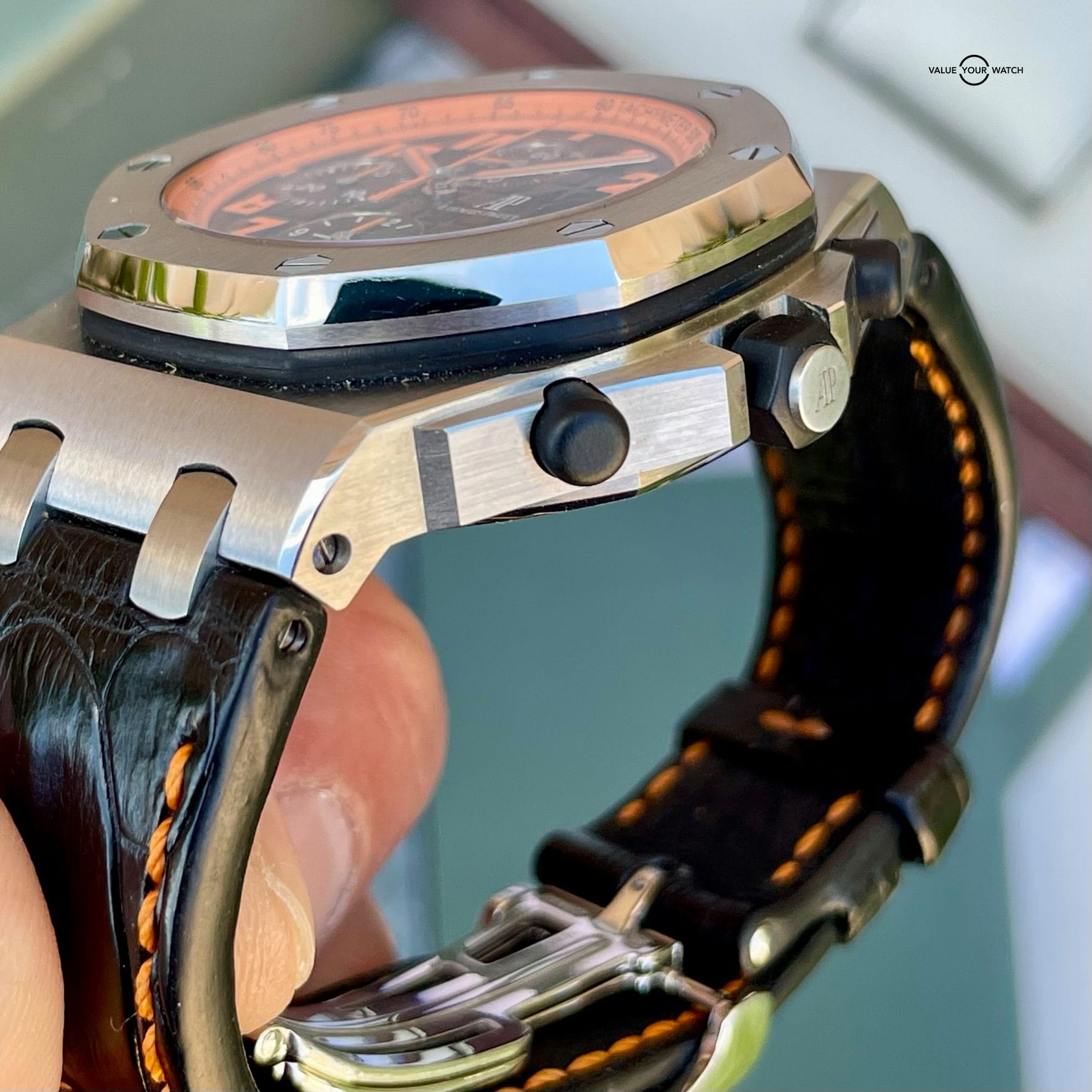 This Audemars Piguet Royal Oak Offshore Volcano Orange Steel wristwatch is the perfect watch for you. This is the model that Axl Rose and Lebron James wore during their amazing career.