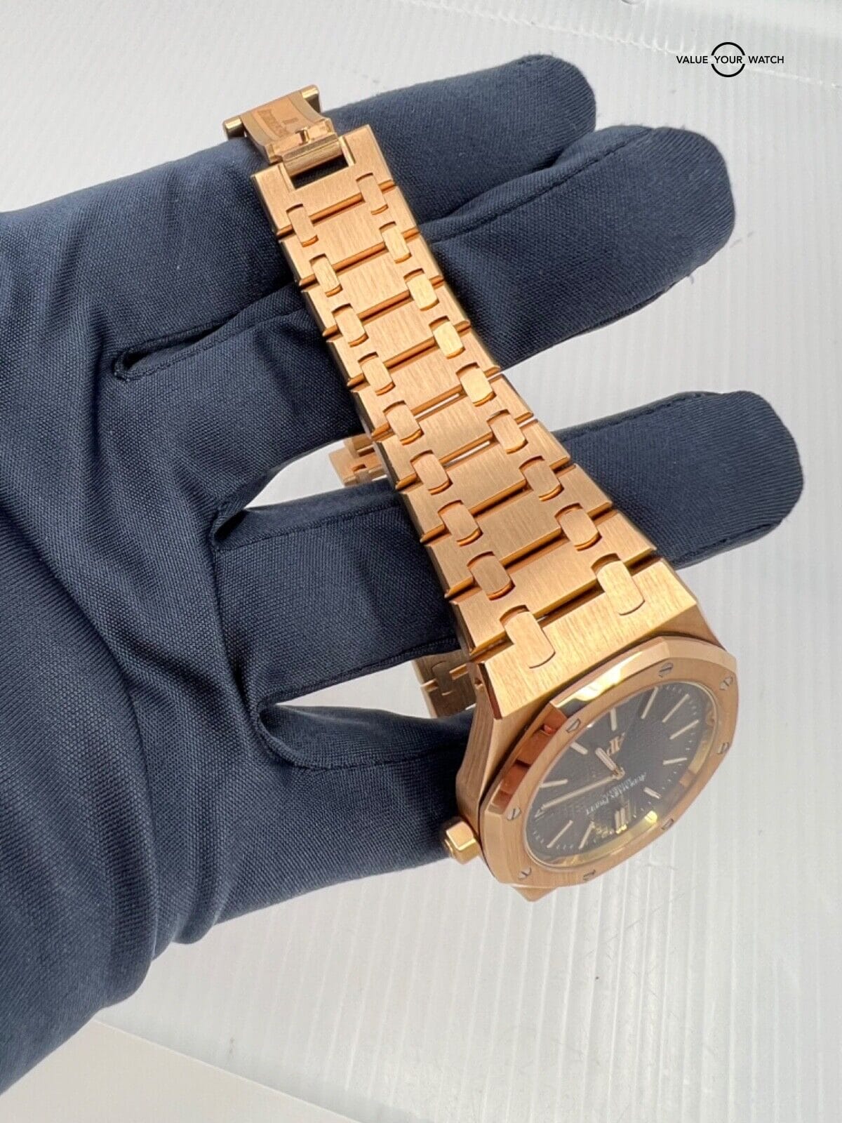 J Serial Mint Audemars Piguet Royal Oak Blue 39mm 18K Rose Gold Watch Only