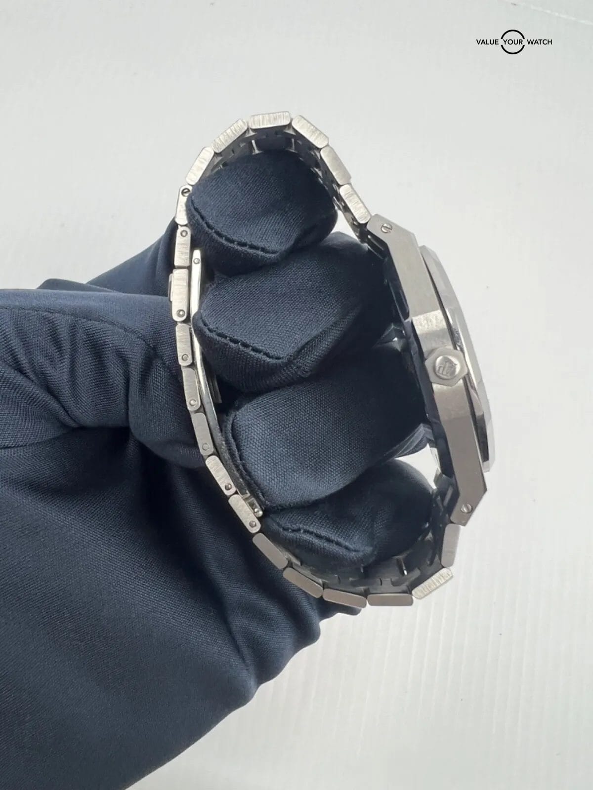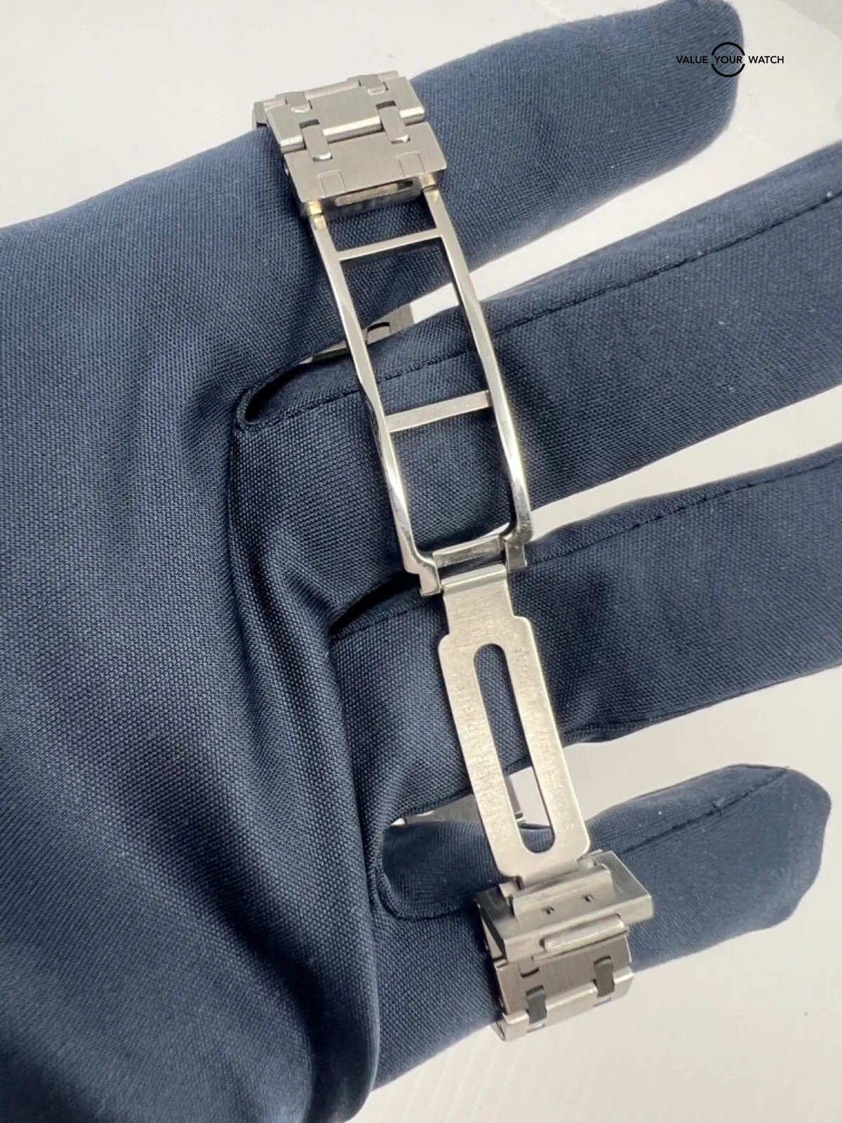 This watch was serviced by AP March 2023 and still under warranty. Super sharp angles with factory finish and gives impression that it’s almost new, has a near perfect timegraph when we test it