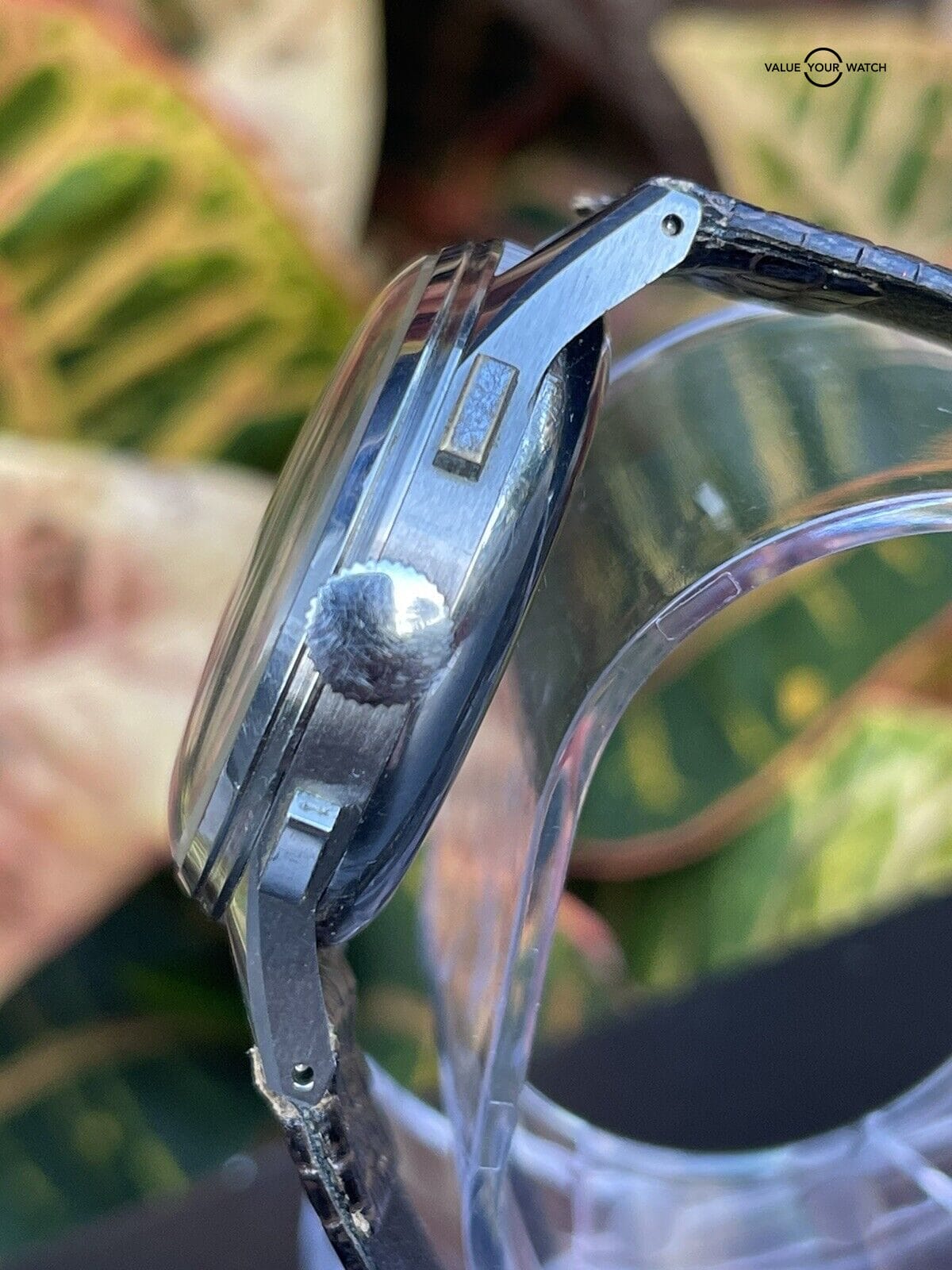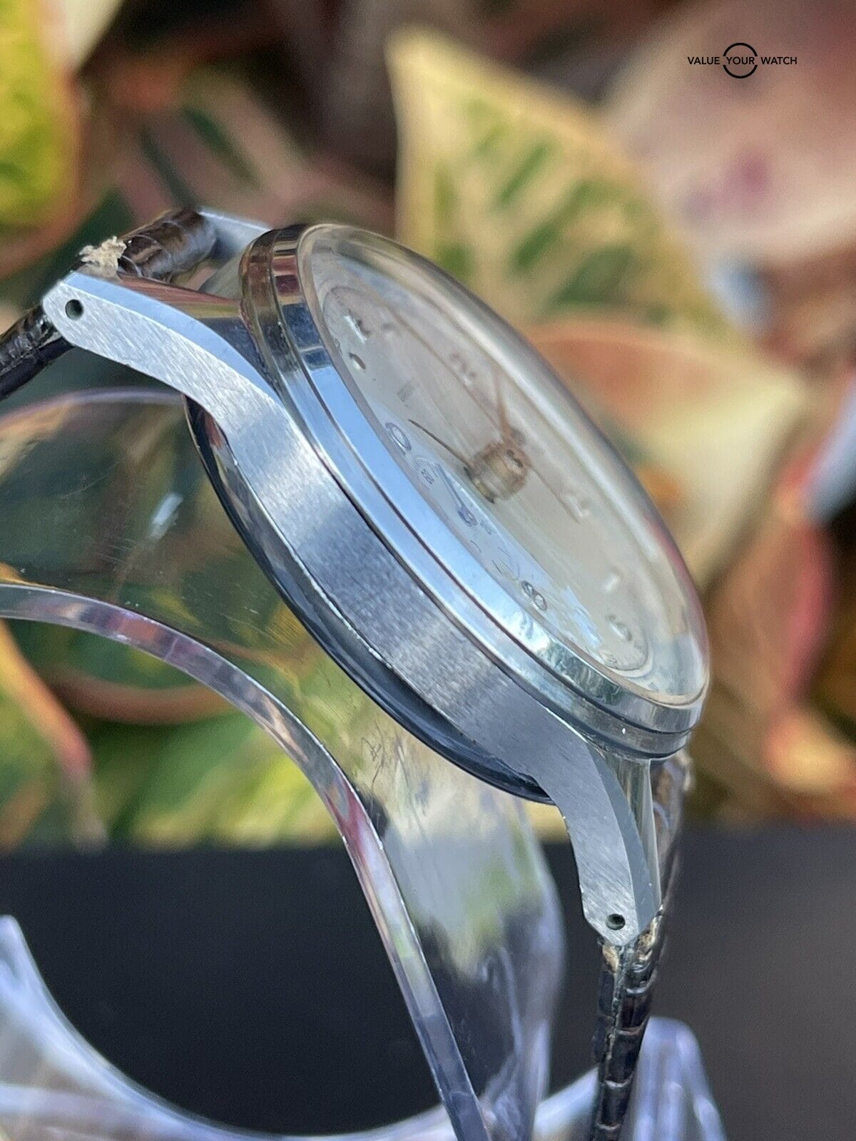 Leather strap is used and shows signs of wear. Not original to the watch.