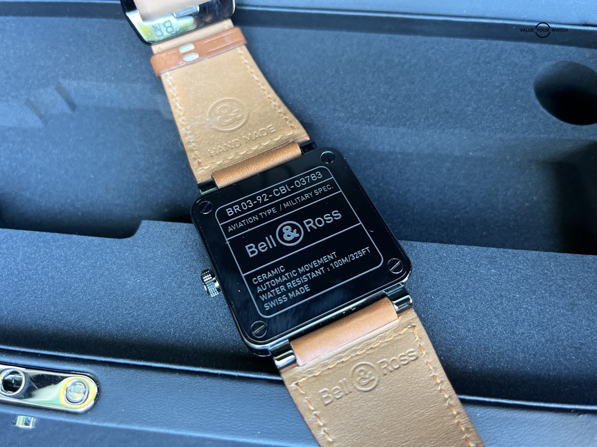 Extremely Clean BELL & ROSS Aviation BR03-92 Black Ceramic 42mm Brown Leather