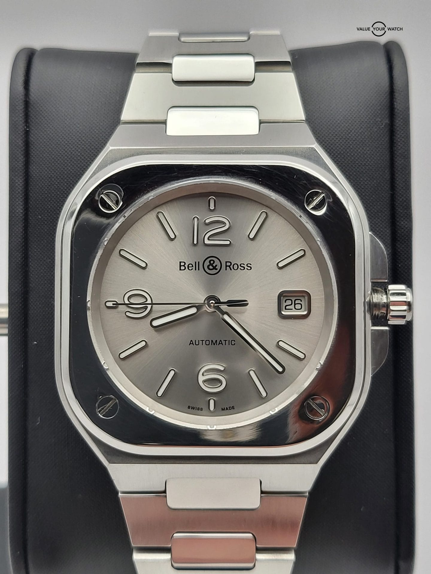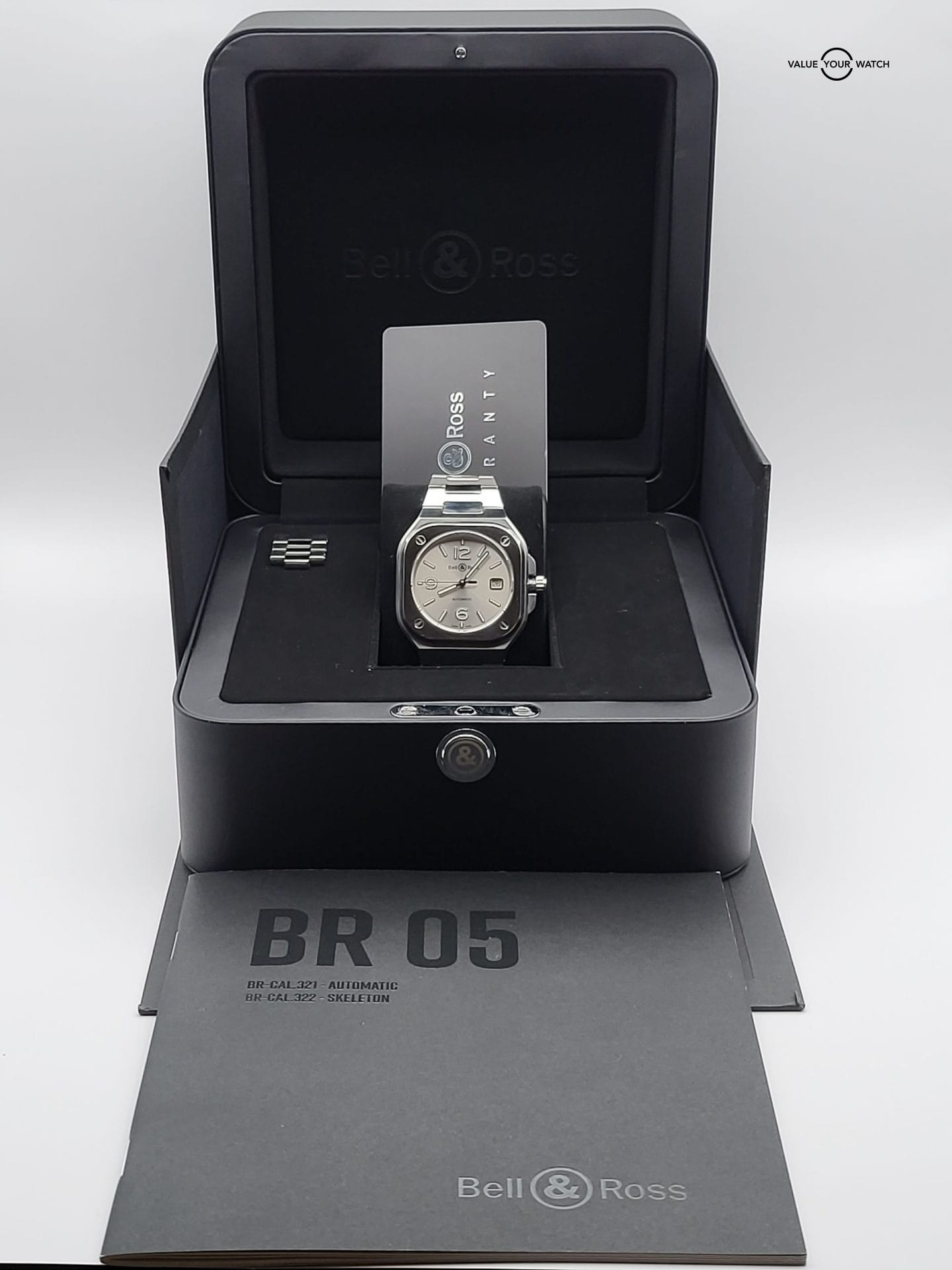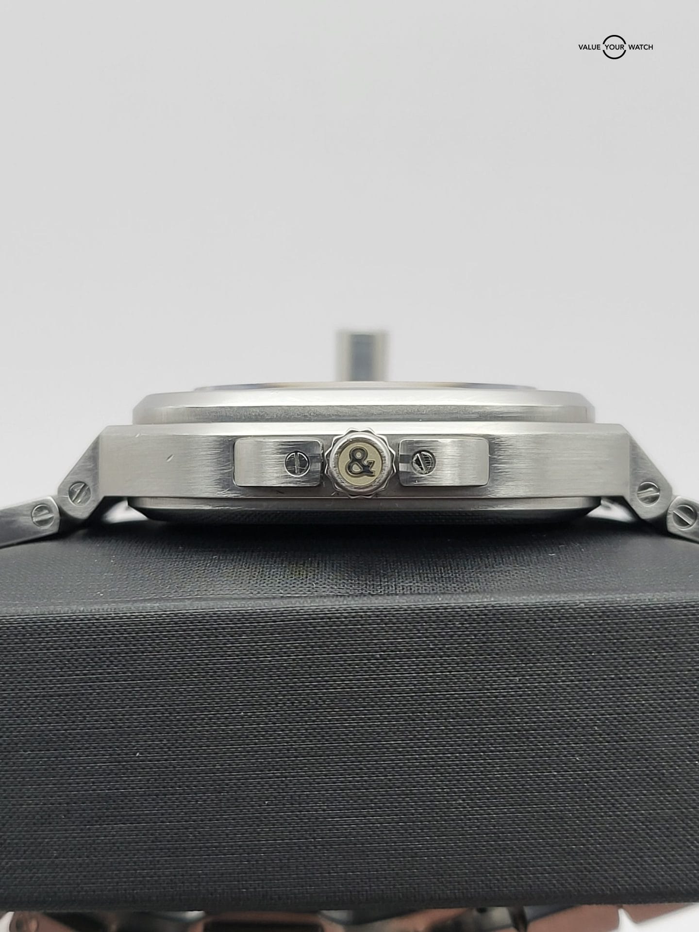 This Bell & Ross BR-CAL.321 has been gently used and is in great condition. It has a 40mm stainless steel case with a grey dial and a date window. It has a Sellita SW300-1 automatic movement with a 42-hour power reserve.