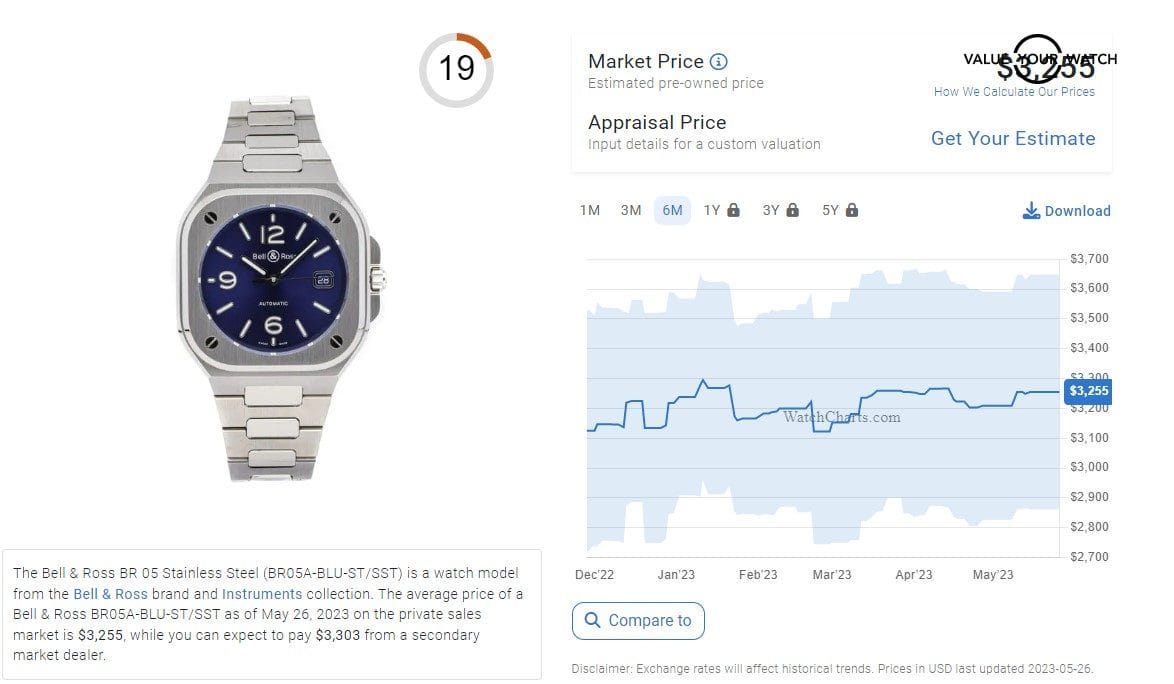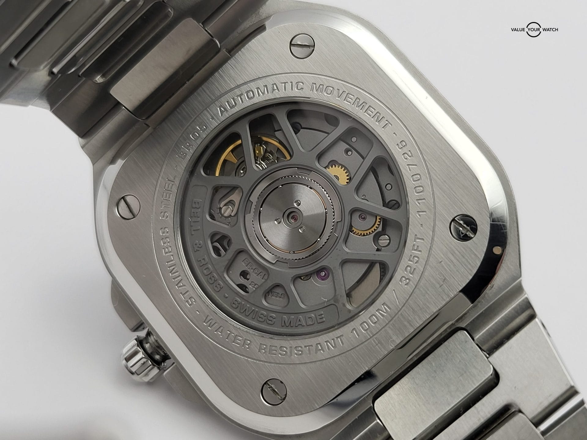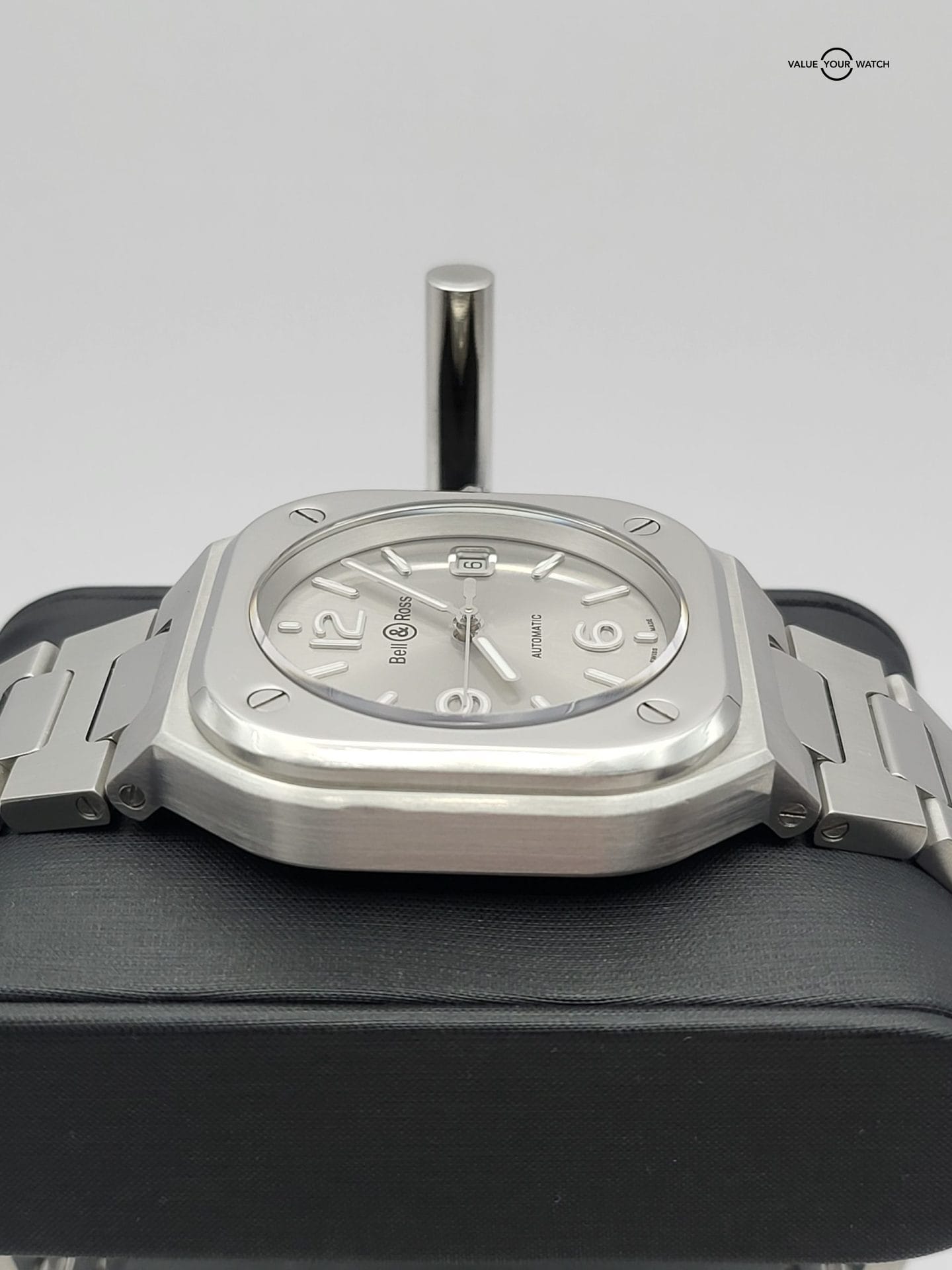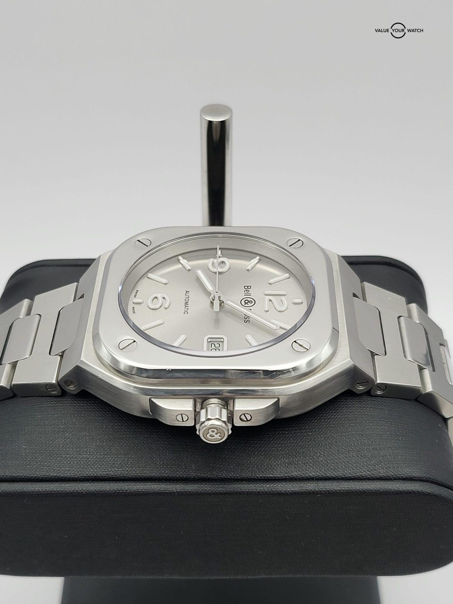 This Bell & Ross BR-CAL.321 has been gently used and is in great condition. It has a 40mm stainless steel case with a grey dial and a date window. It has a Sellita SW300-1 automatic movement with a 42-hour power reserve.
