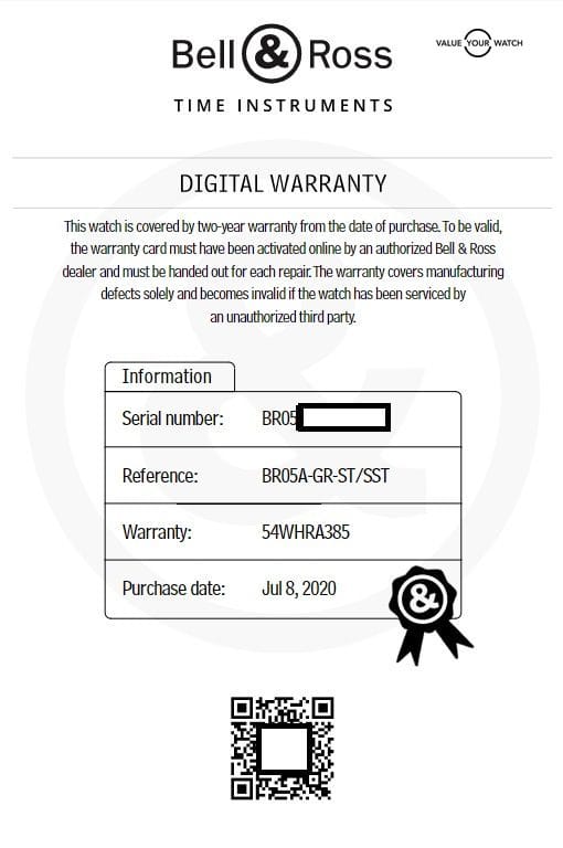 This set comes with time piece, box, outer box, B&R Warranty card dated 7/28/2020 and papers.