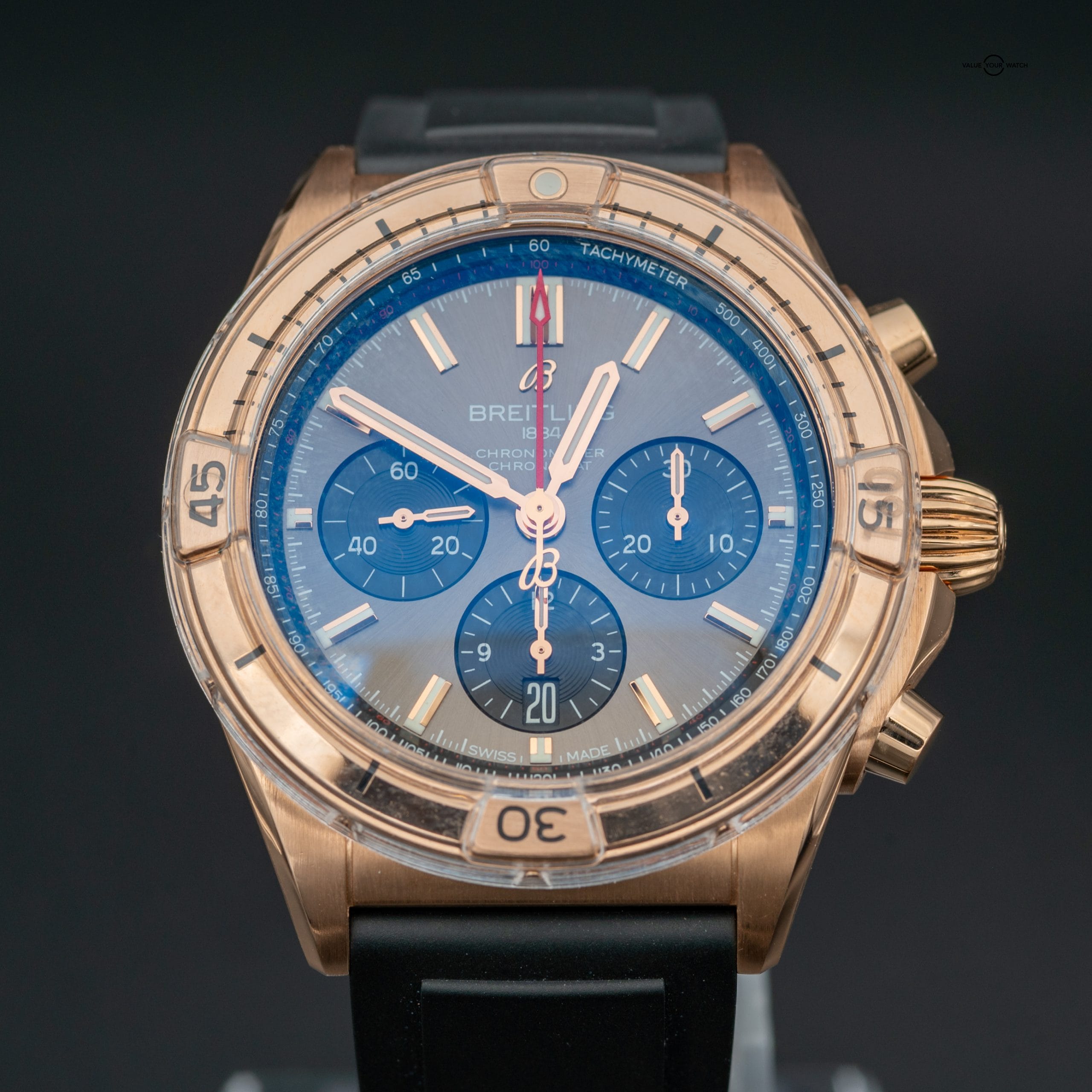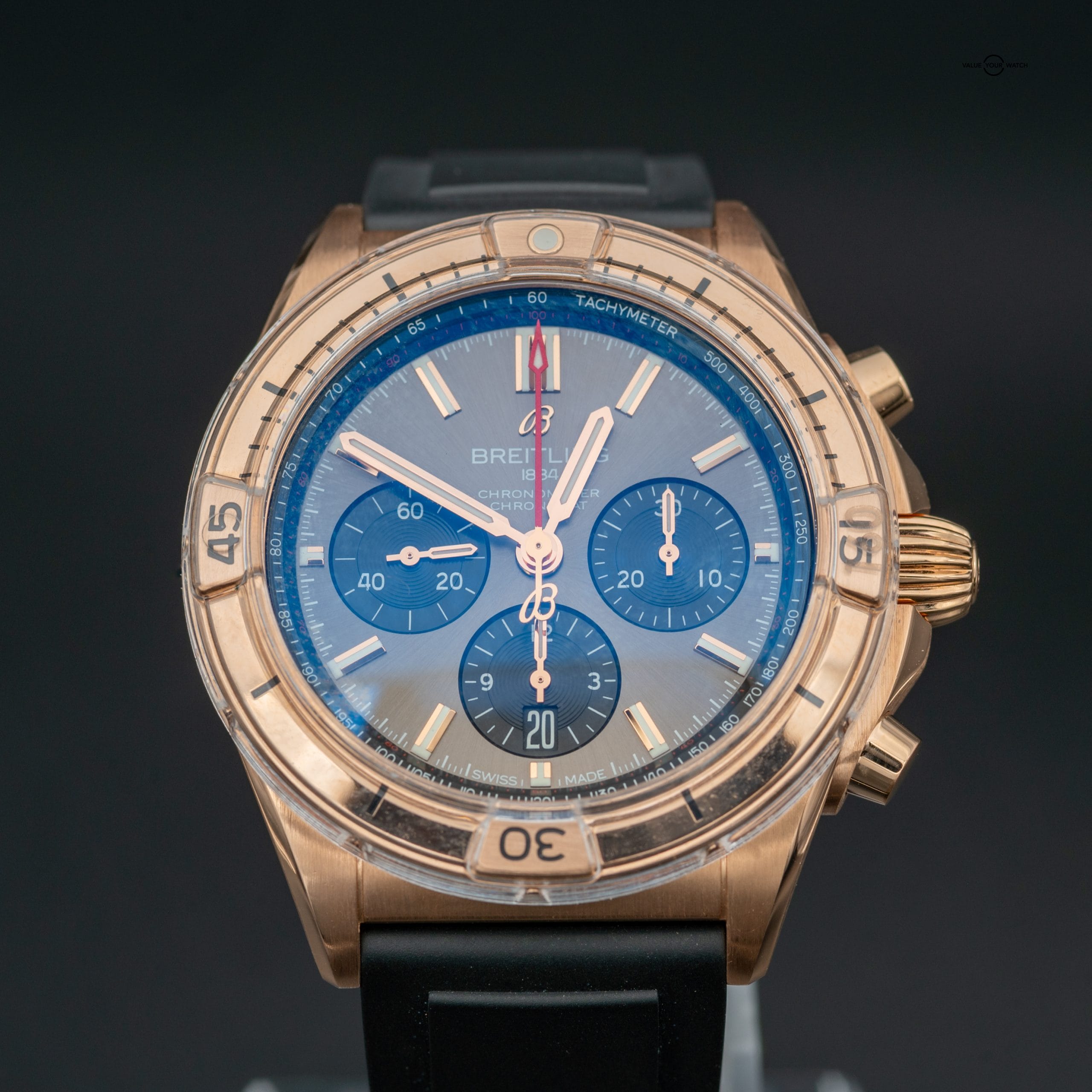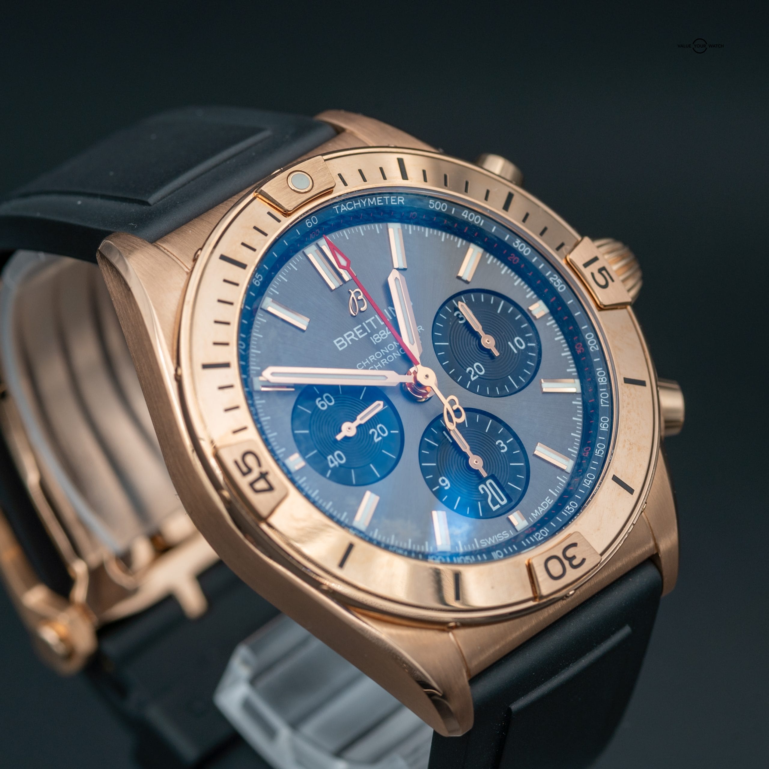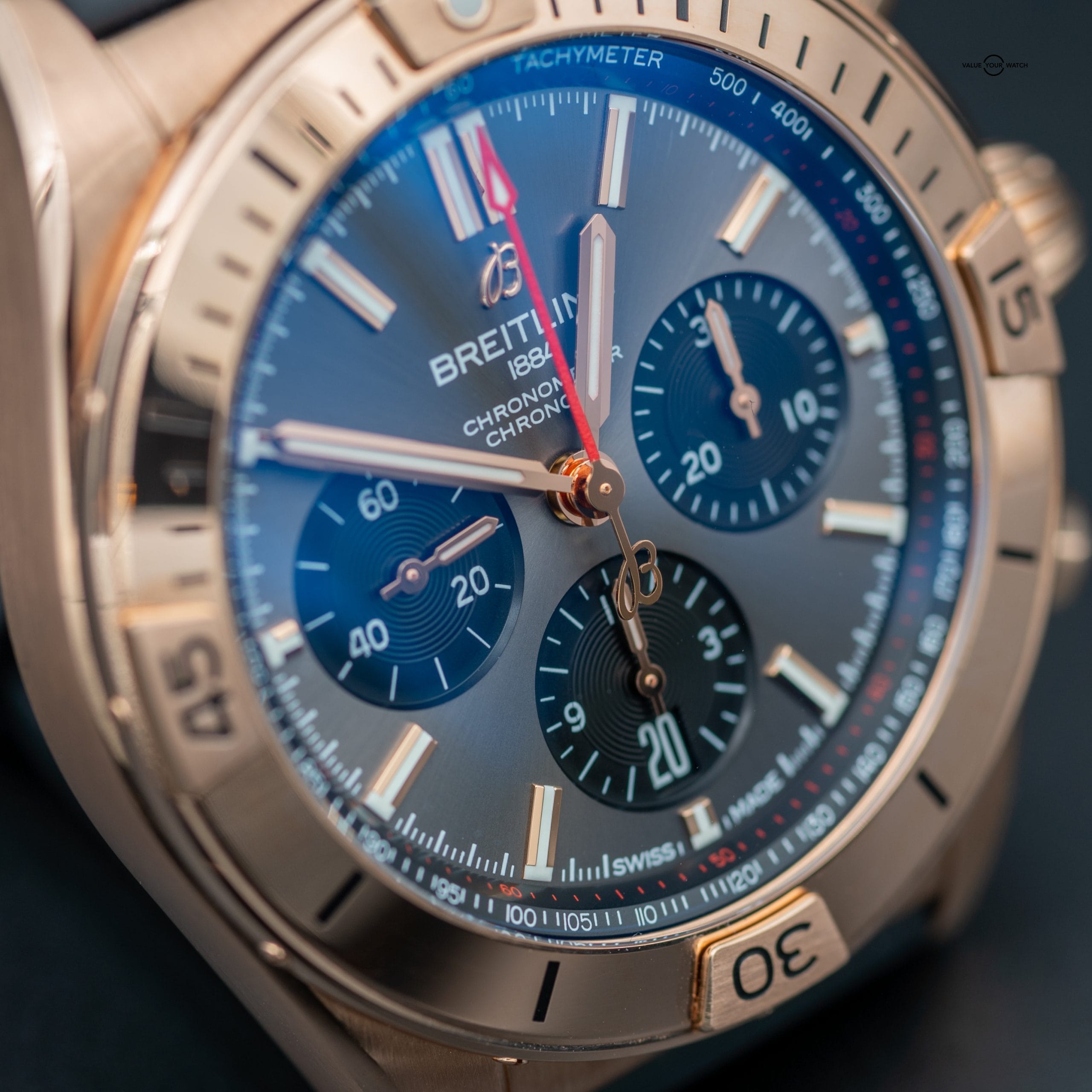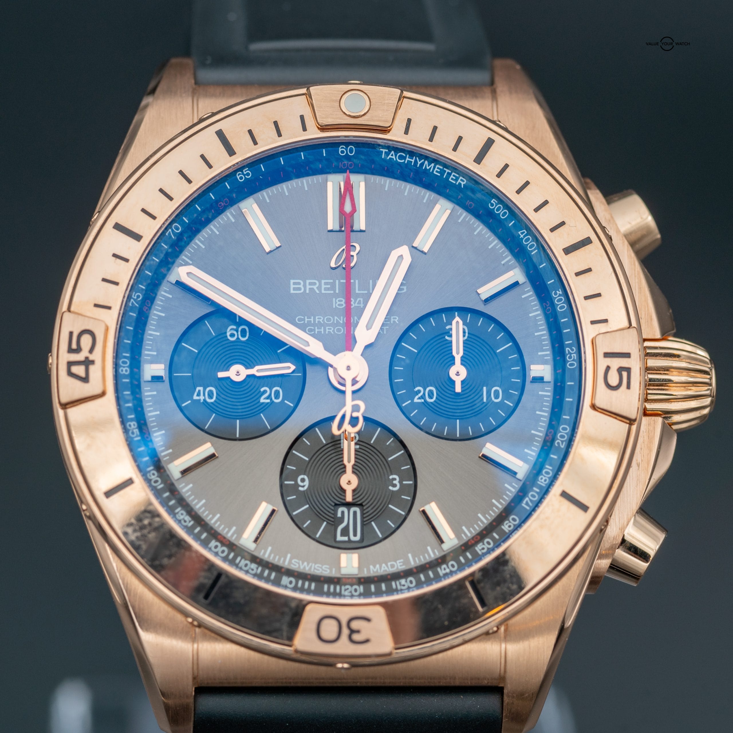 Guide to Buying and Selling 2022 Breitling Chronomat B01 Rose Gold Chronograph Anthracite Gray/Black Dial (42mm, RB0134101B1S1) — MINT, FULLS SET Online