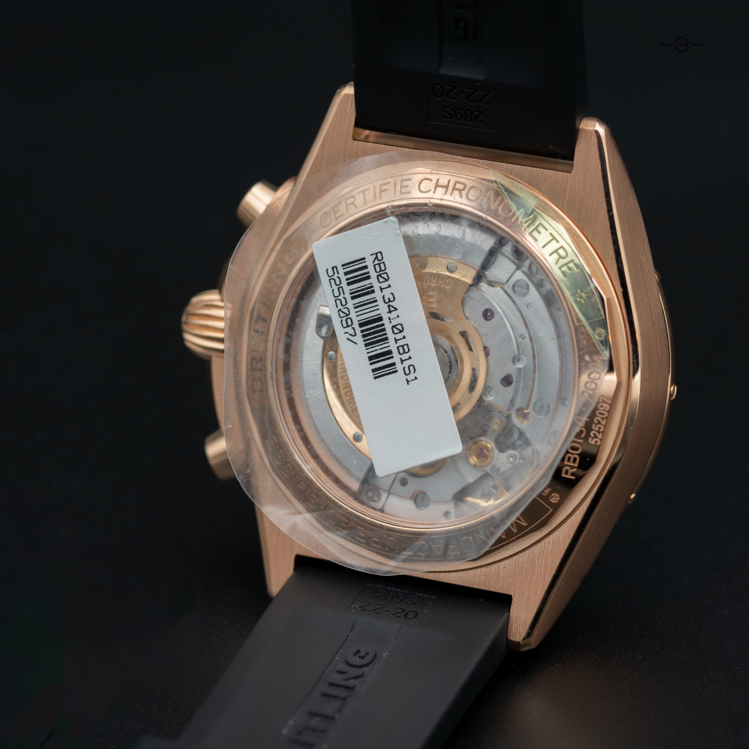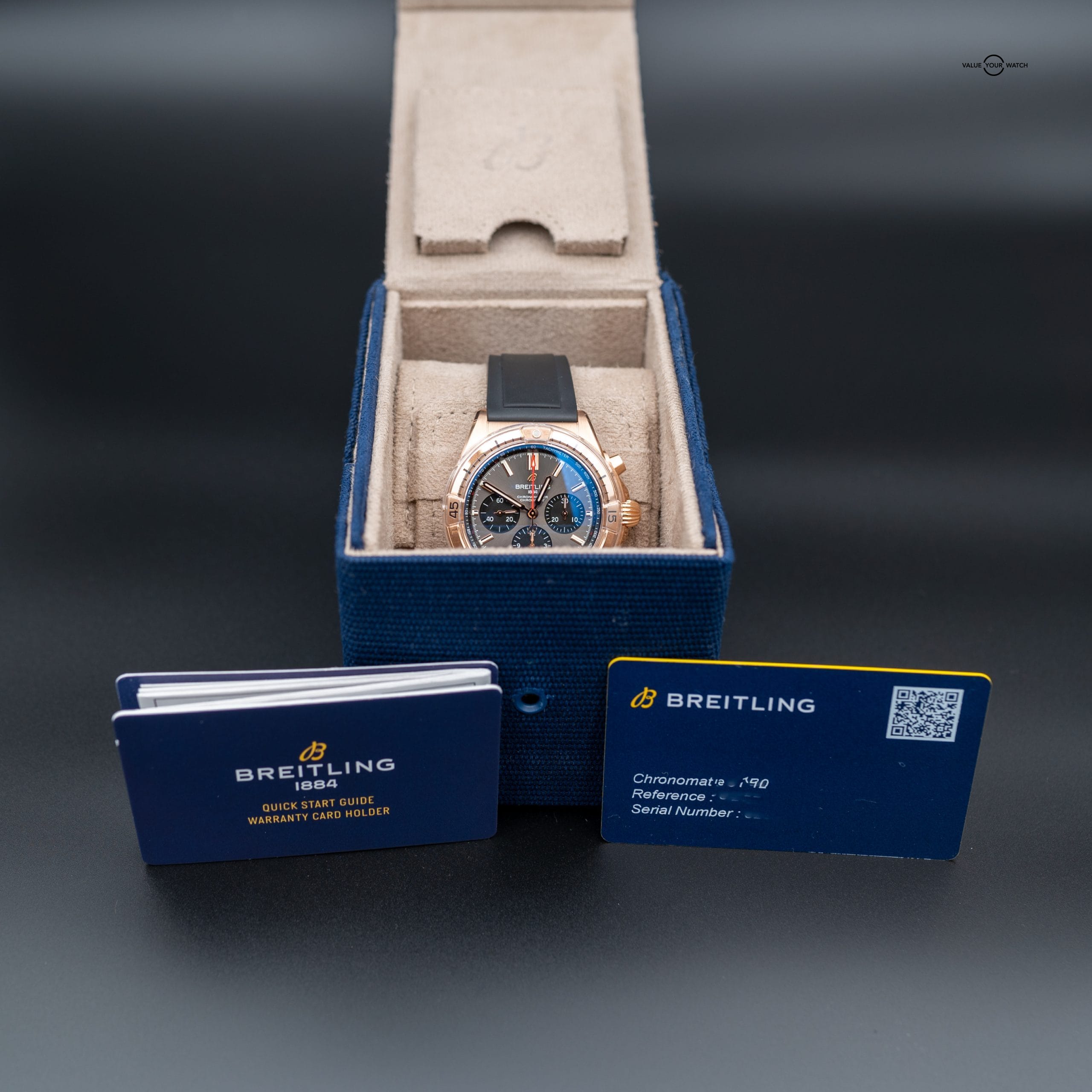 Specification: 2022 Breitling Chronomat B01 Rose Gold Chronograph Anthracite Gray/Black Dial (42mm, RB0134101B1S1) — MINT, FULLS SET