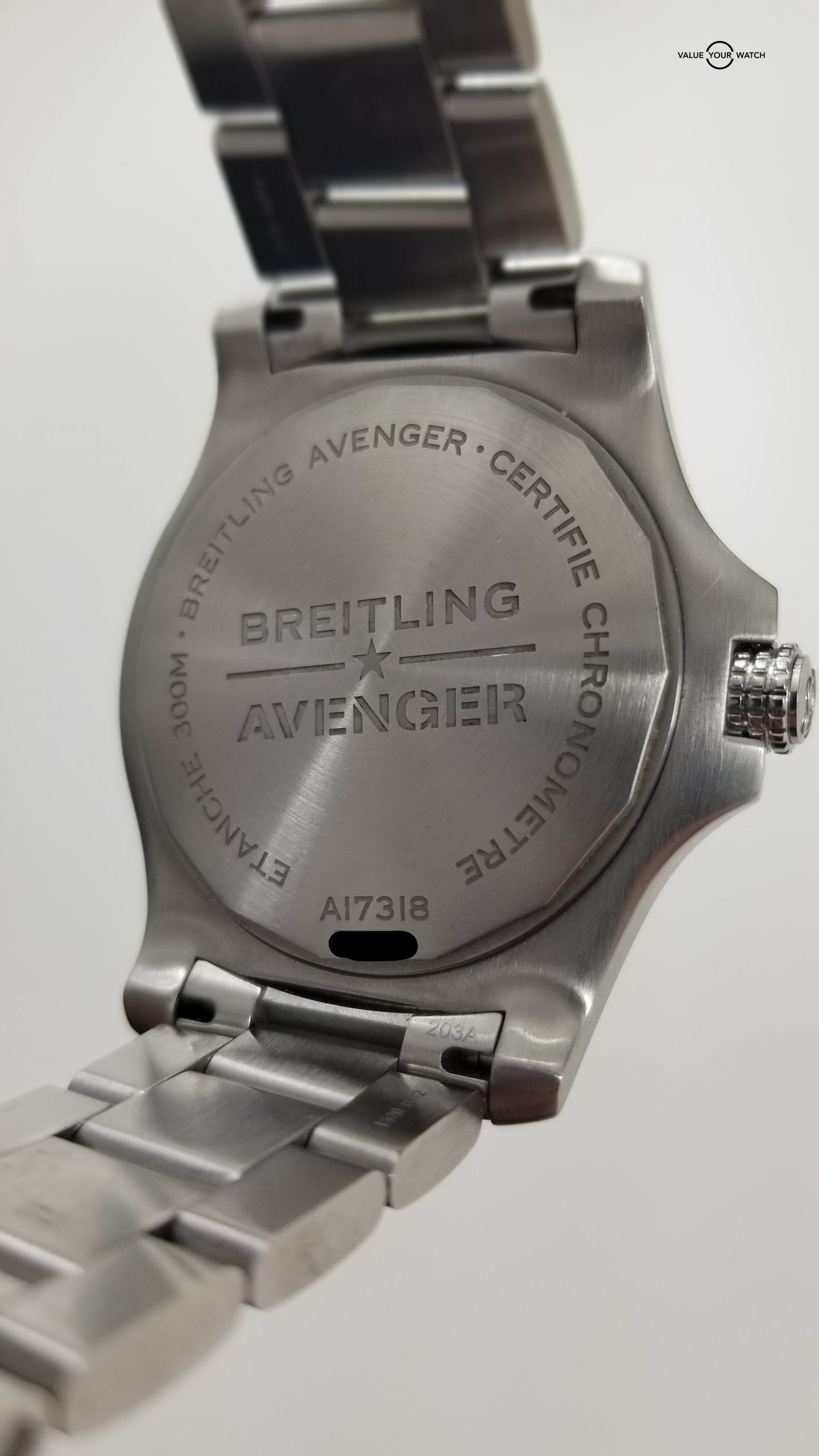 The Breitling Avenger 43’s shock resistance case paired with high polish and brushed finish on the stainless-steel bracelet compliments a day at the office, a formal event, the golf course, a construction job site, a day at the beach or work in the backyard. A clean legible matte blue dial pops underneath the sapphire crystal with double sided anti-reflective coating. The luminescent hour markers and hands glow making it possible to read at night. A key element in the avenger is the ability to use it while wearing gloves with the screw down bezel and special grip pattern on the crown. It’s a true tool watch that can be used while diving with 300m water resistance. The automatic self winding movement with a 38 hour power reserve will keep you on schedule (as it is also a COSC certified chronometer) as long as you need. This watch makes a statement without you saying a word.