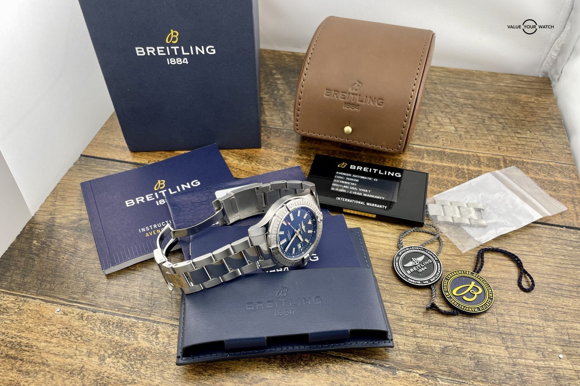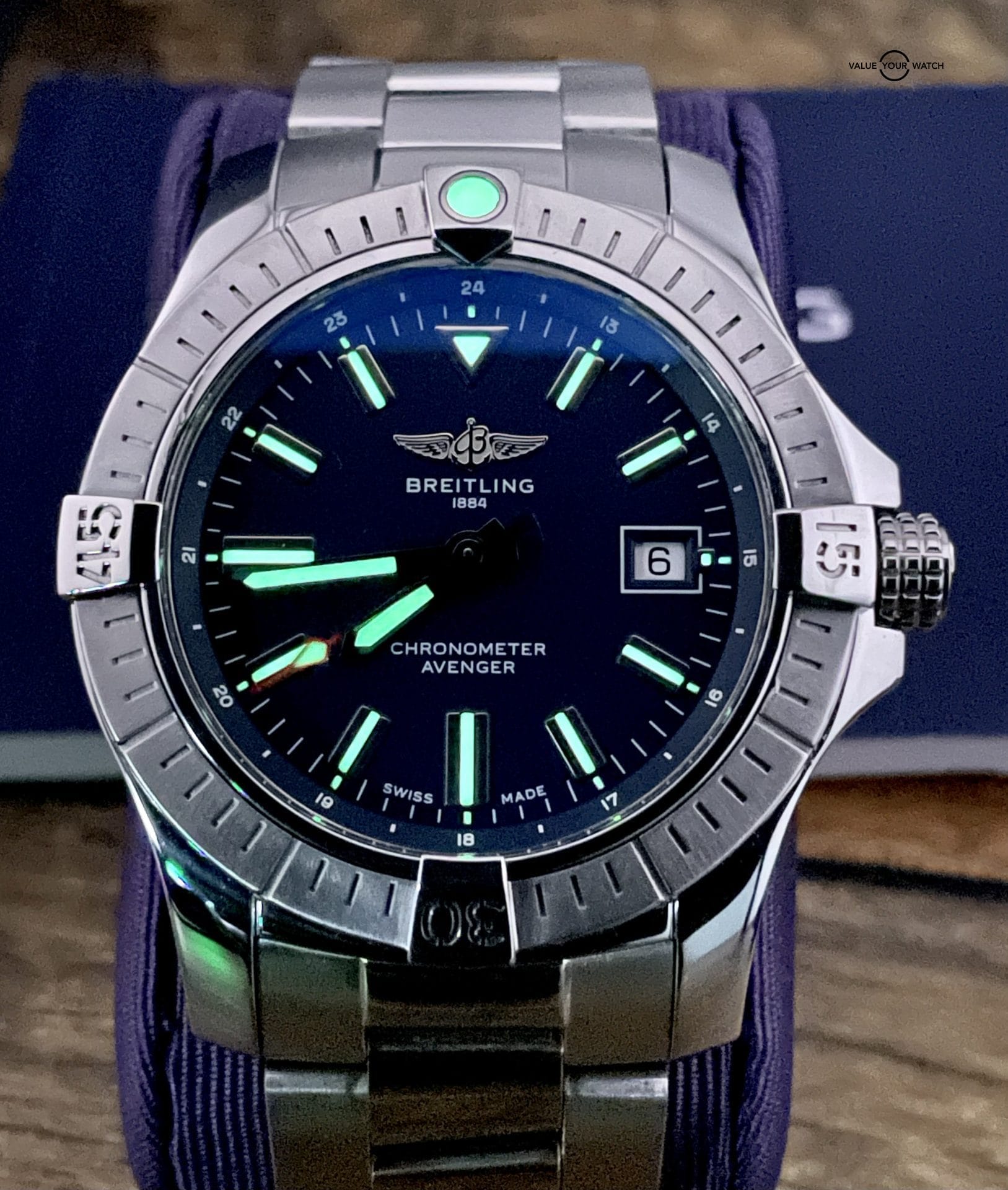 Specification: Breitling Avenger 43mm Blue Dial- A17318 Complete Set W/ Box & Papers 2019 Model