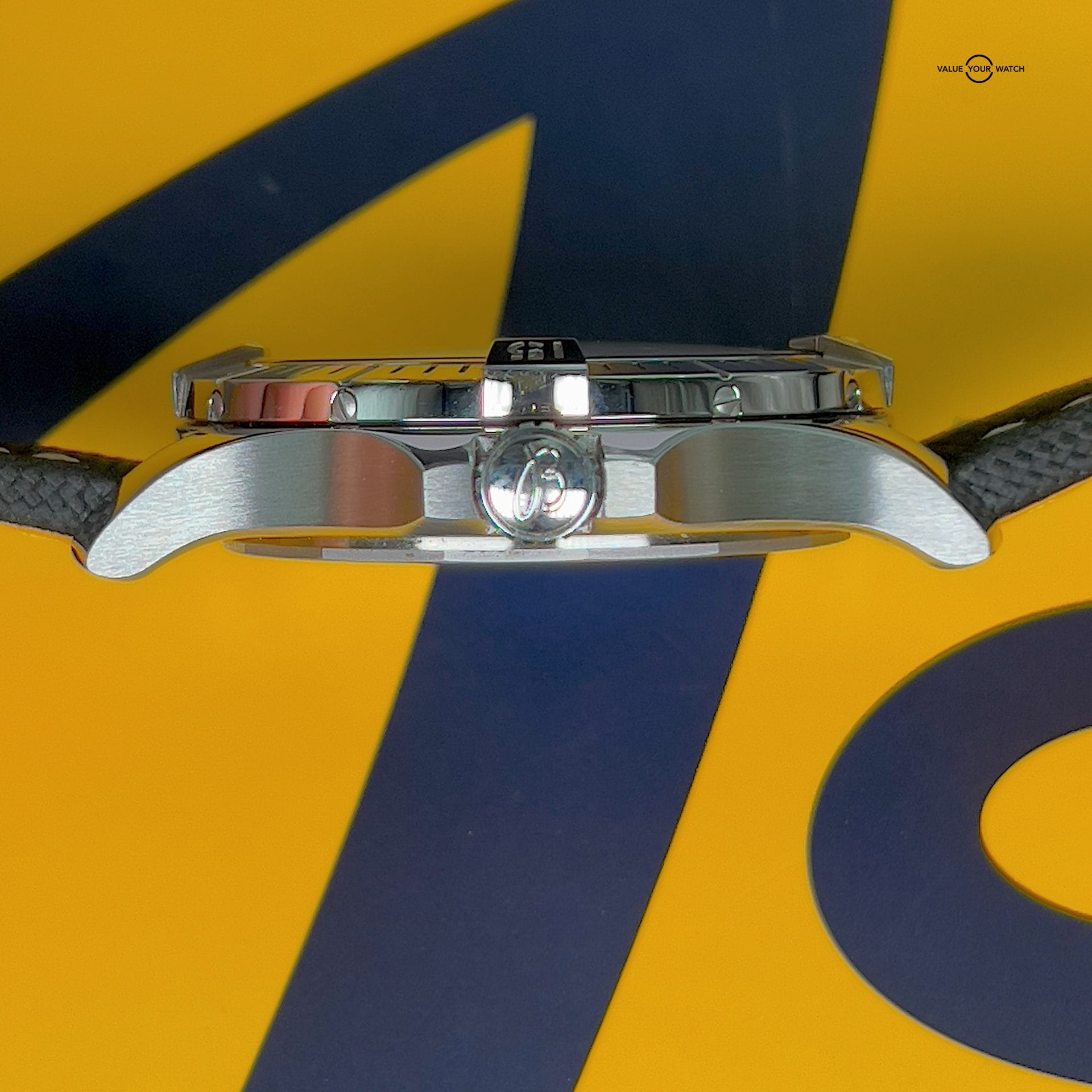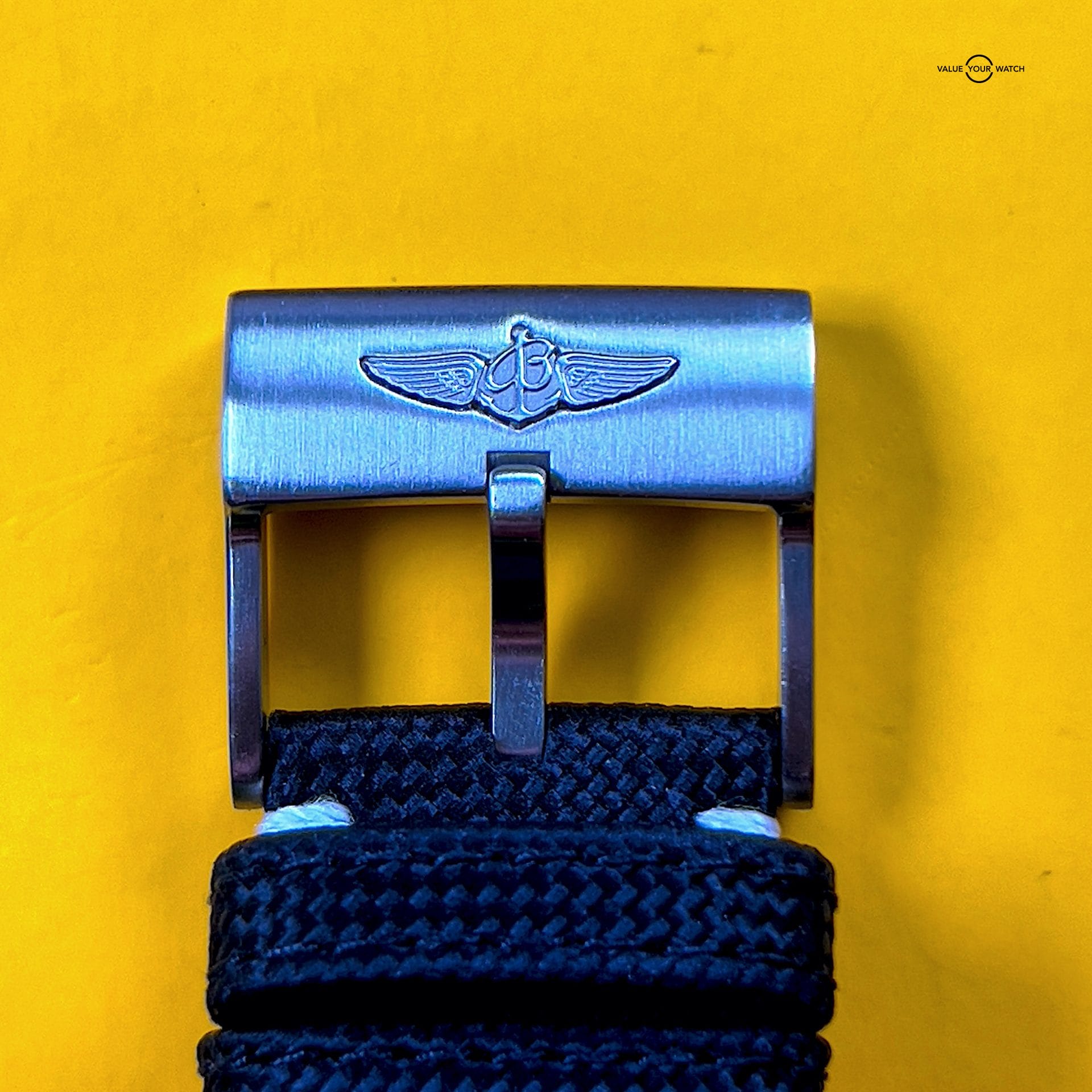 CONDITION & CONTENTS: This timepiece is in excellent pre-owned shape and the photos accurately reflect its condition. The sapphire crystal is free of scratches. The watch comes with its original shipping box, display box, brand new blue Breitling rubber strap, quick start guide and international warranty card valid until 8/15/24
