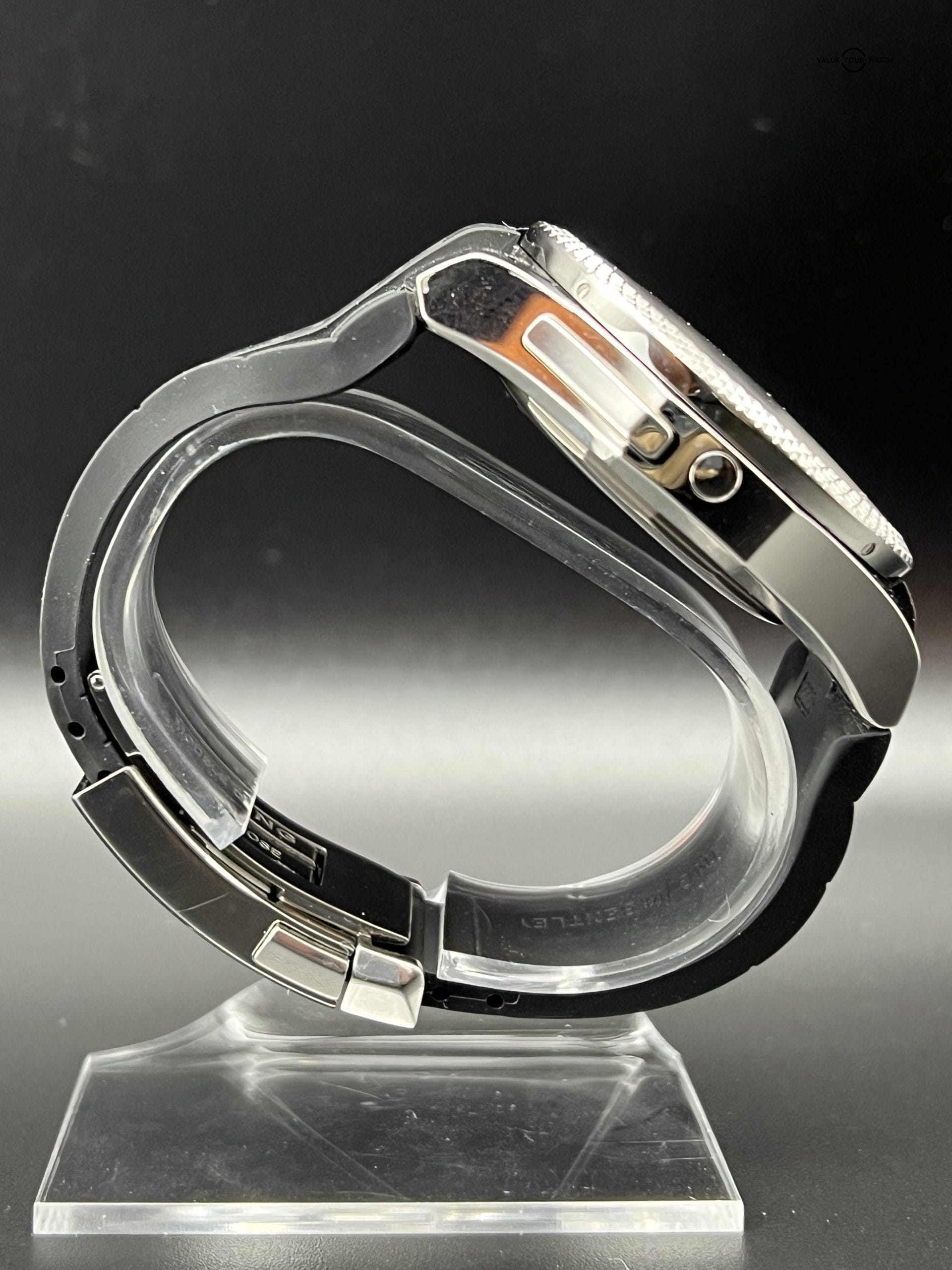Up for sale is the evocative Breitling for Bentley GMT Chronograph World Time. The watch offers abundant complexity and quality craftsmanship from the World Time Bi-directional rotating bezel to the unique 30 second chronograph mechanism developed by Breitling. The case size draws you in like a stop sign. Well, some of you at least…