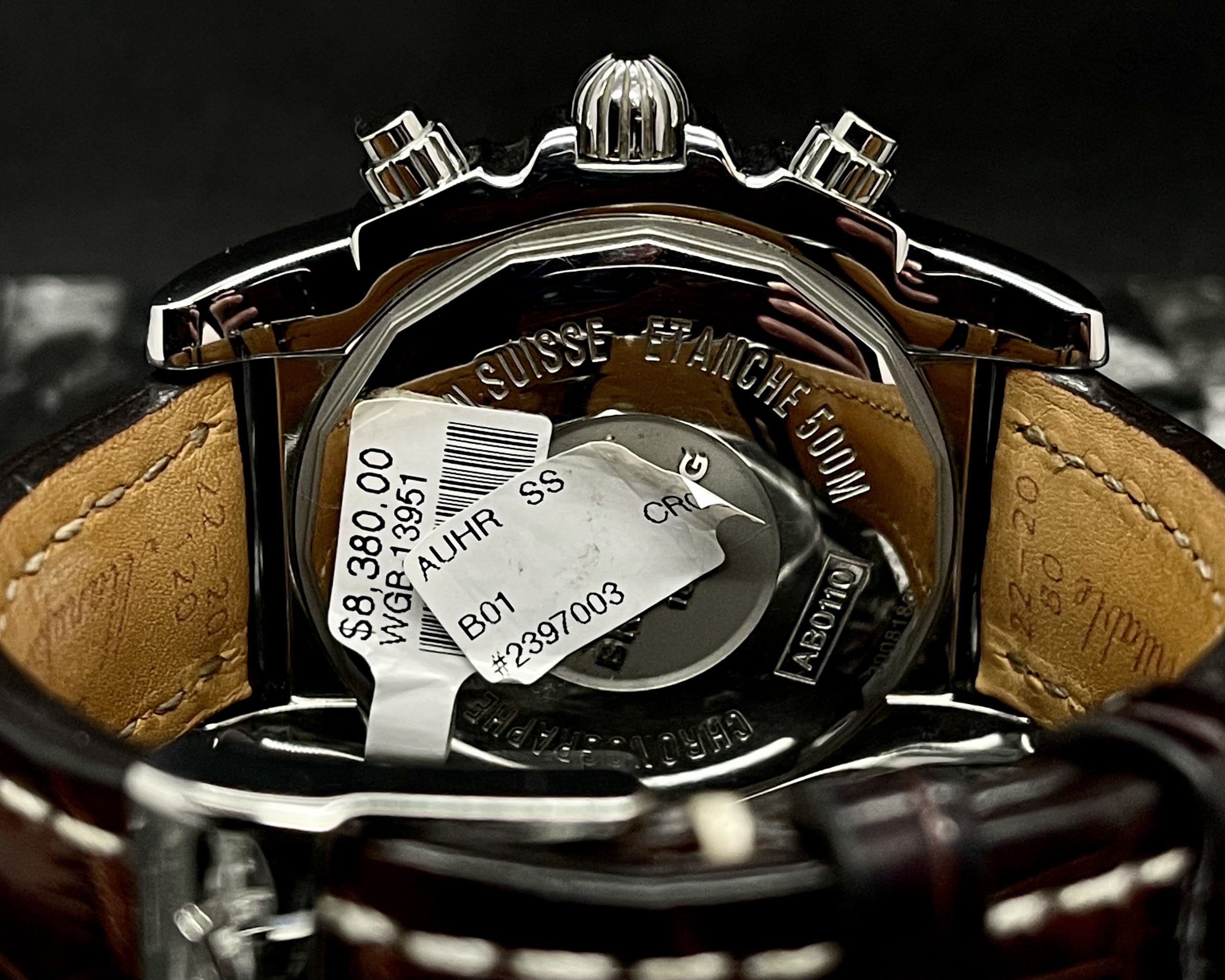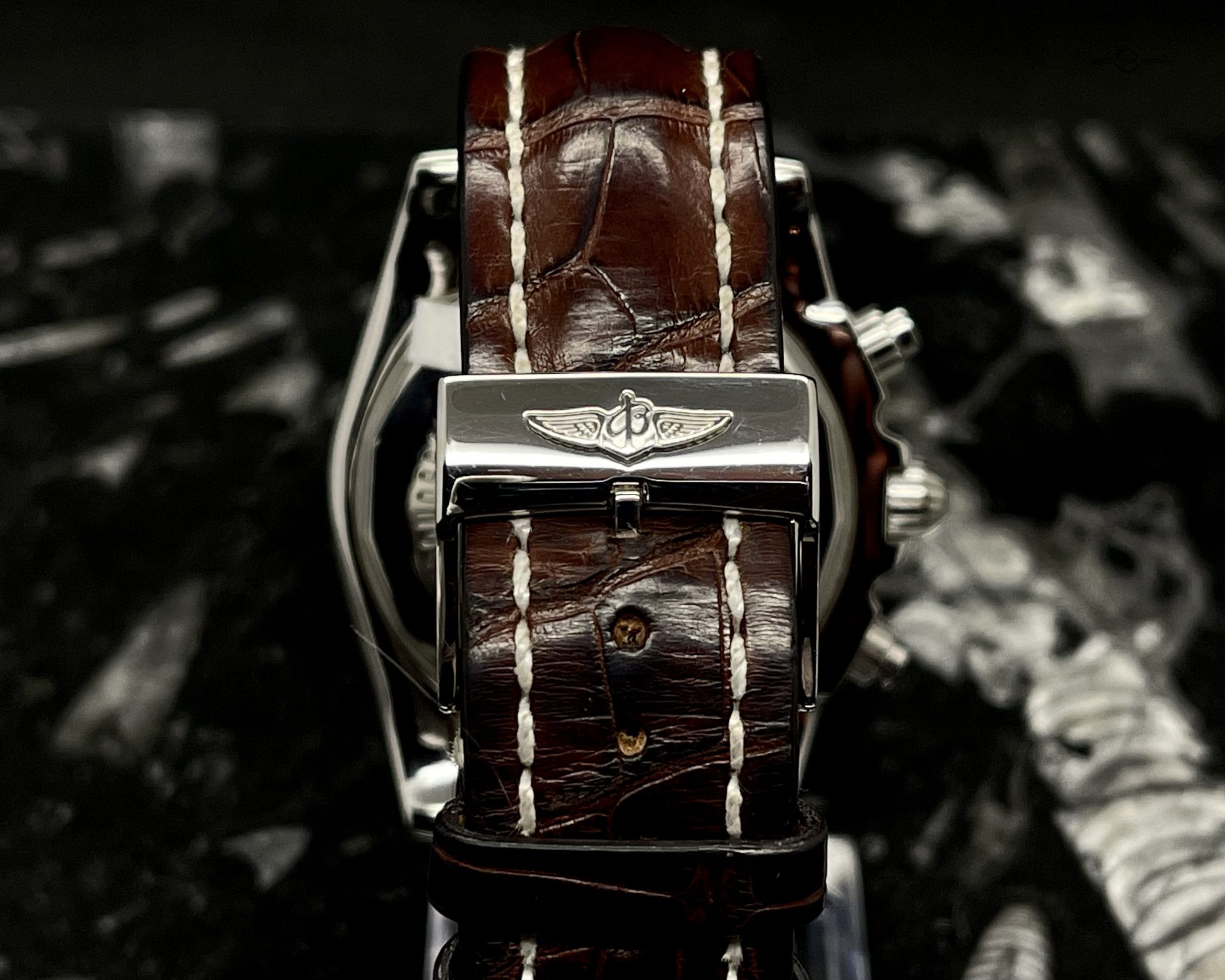 At 44 millimeters and with it’s stunning brown dial, this watch has some presence! This came from an owner that barely wears his timepieces and keeps them in immaculate condition. The back still has the original stickers! With a chronograph, tachometer, dive timer, date, and 500m of water resistance, this piece provides some serious usability. This watch comes with box, travel case, warranty booklet, manual, and chronometer certificate. The strap is shaped but shows no discoloration, the case and bezel are in fantastic shape, the buckle show very light scratching, and the sapphire is flawless. The original retail price of this watch was $8380. Get this beautiful pre-owned time piece before it’s gone!