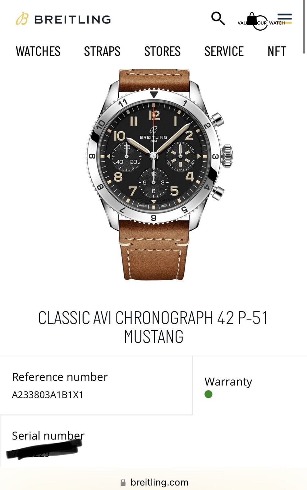 Breitling CLASSIC AVI CHRONOGRAPH 42 P-51 MUSTANG – A233803A1B1X1