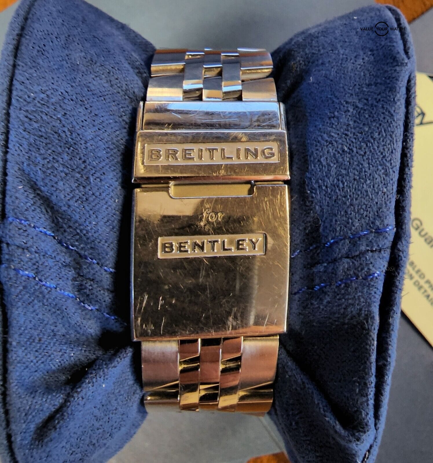 Breitling For Bentley Continental GT Blue Dial 44mm Watch-A13363 Case is in excellent condition, clasp has some minor wear, has amazing shine, and catches a lot of attention in the light. Authenticated by eBay with stickers still in place and authentication card and eBay box! Feel free to message me with additional details kevinnightingale on IG or GM. I have many references or additional pictures available upon request. Condition: Pre-owned: An item that has been used previously. The item may have some signs of cosmetic wear, but …
