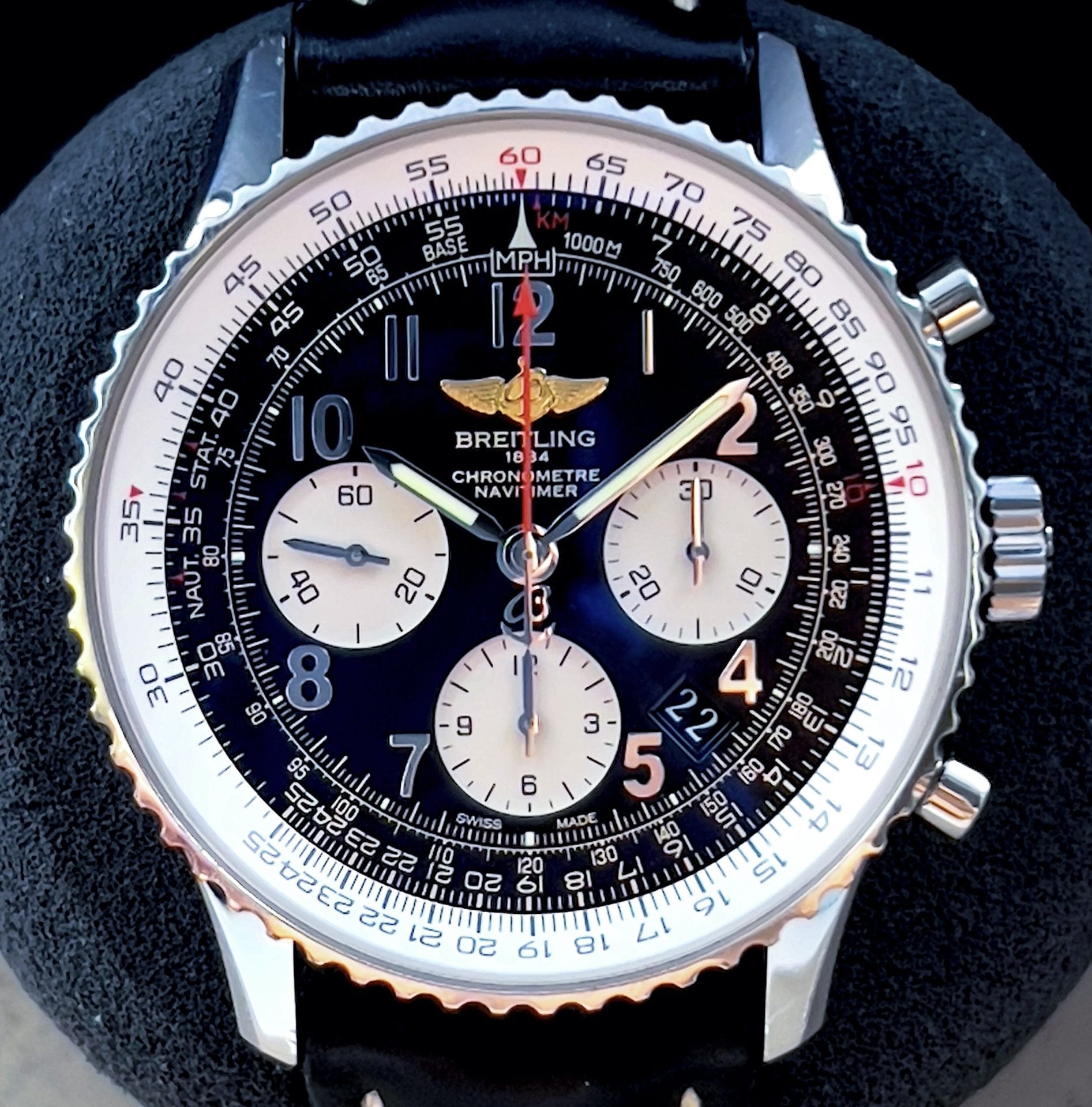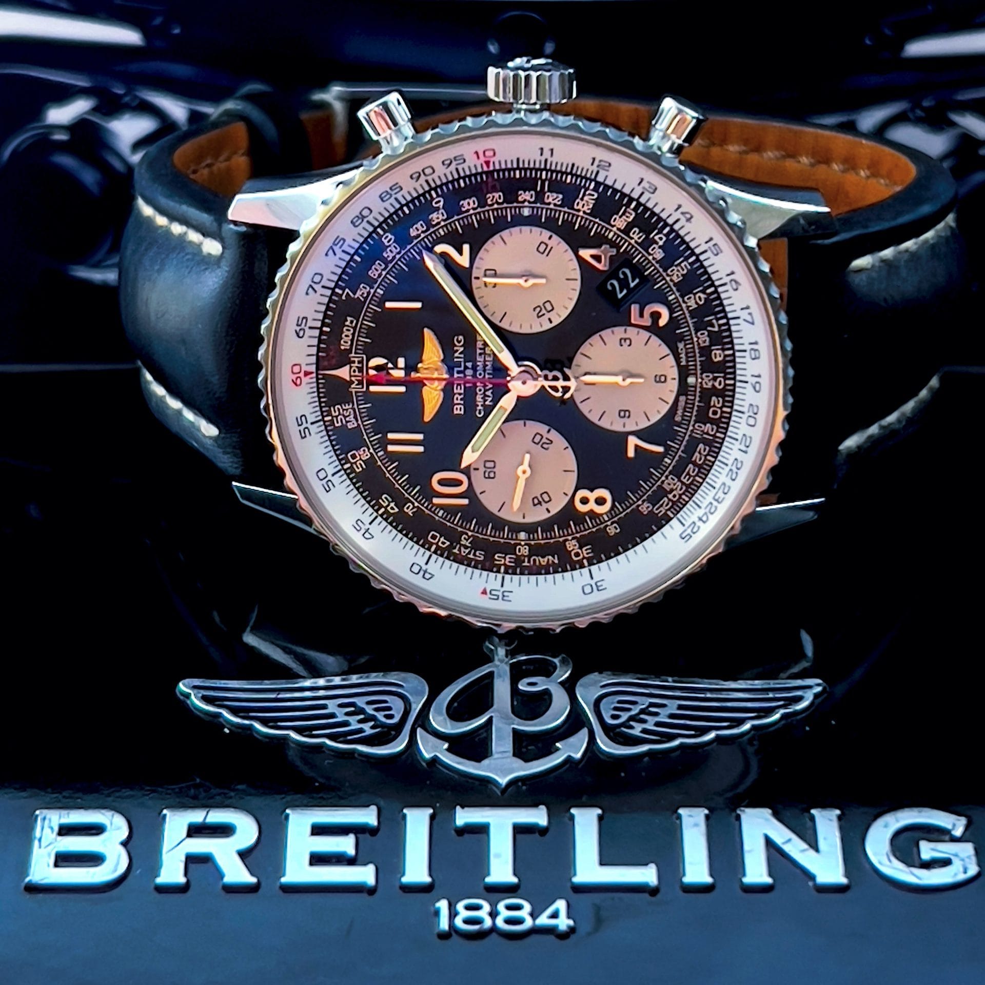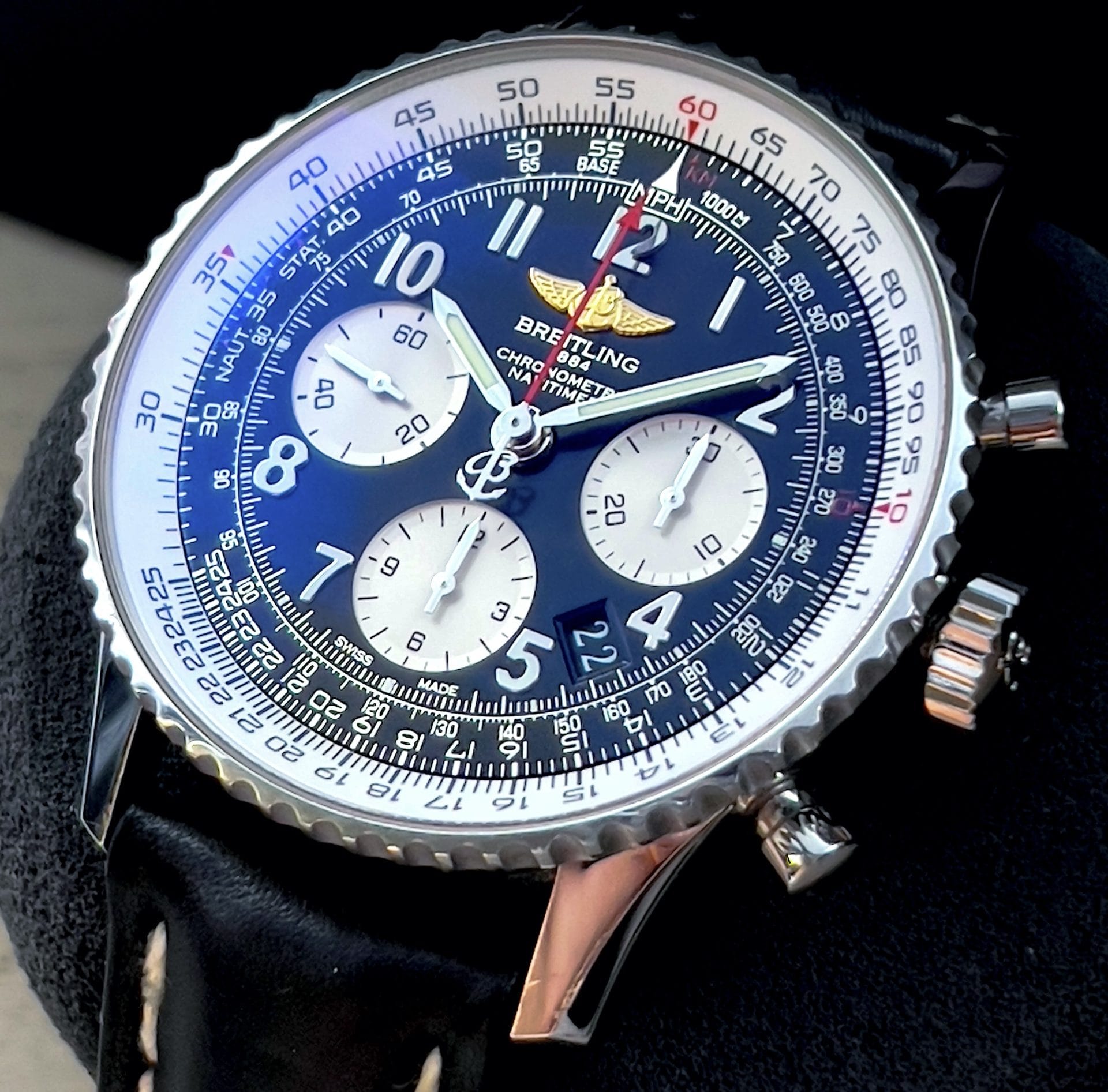 Presenting the Breitling Navitimer, an icon of aviation generations in the making. What makes this specific iteration special is that it is still adorned with the fan favorite wings logo.