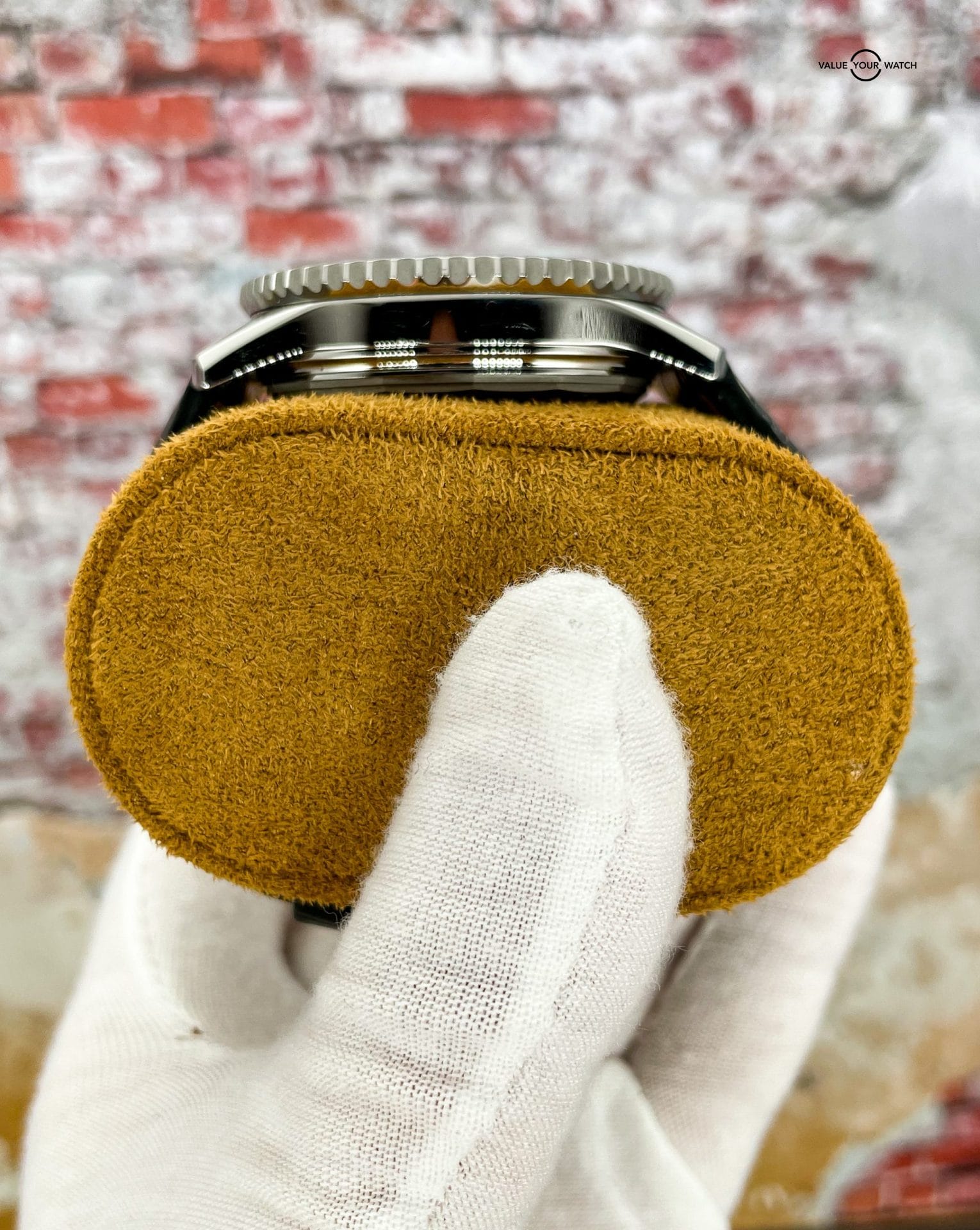 This piece is in good 2nd hand condition with no noticeable markings on the crystal or bezel. The case is in good shape overall with a couple hairlines and swirl marks as to be expected with a polished finish but much like the rest of the watch, nothing significant. The case back does show heavy scratches on the lugs due to strap changes, as well as some hairline scratches around the polished section, but the sapphire exhibition crystal is free or any markings and in very good condition. The leather strap shows signs of being worn, but has plenty of life left while the clasp also show signs of use with what I would consider normal desk diving marks, but overall the condition is still good. Please review all photos carefully for condition and contact us with any questions. Additional images can be provided on request.