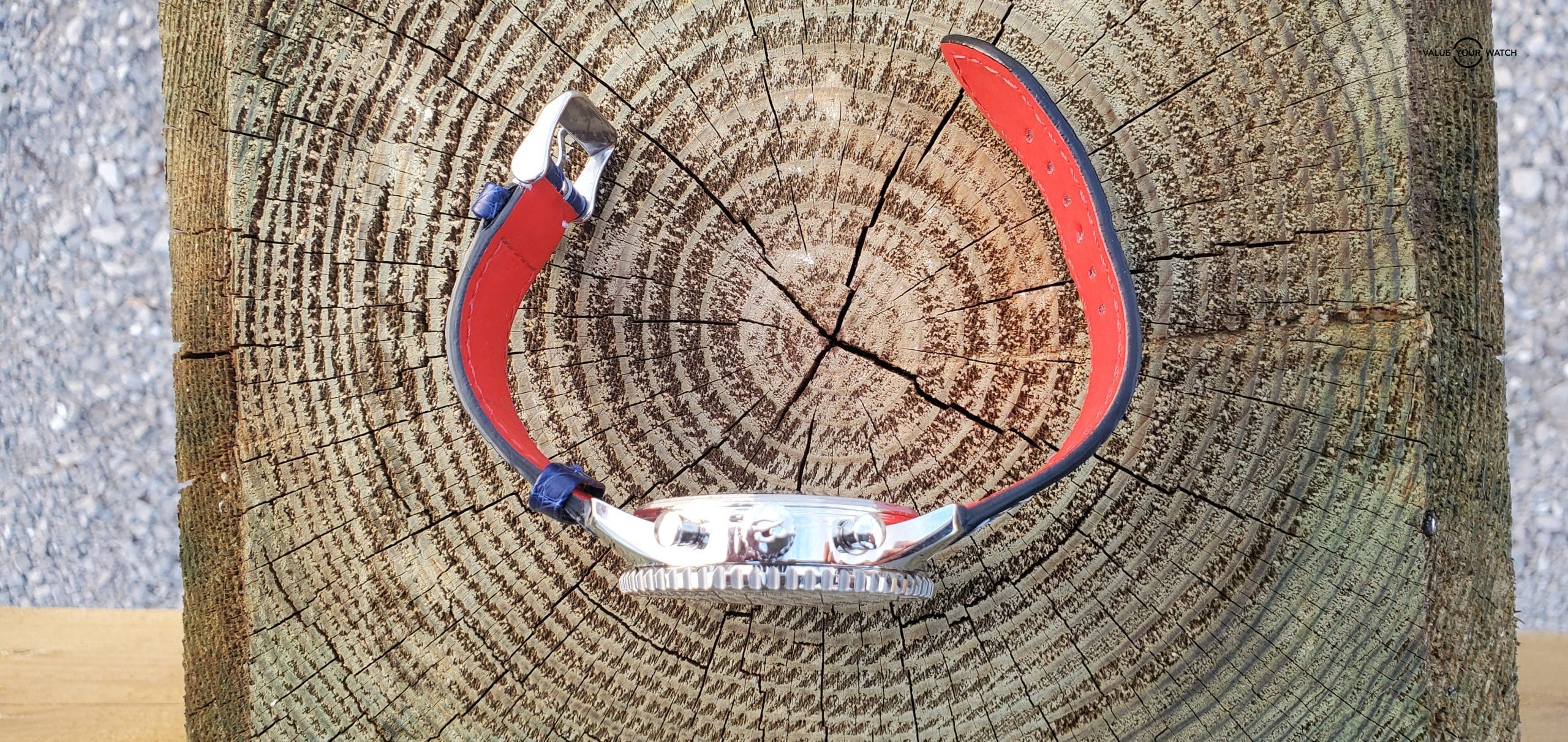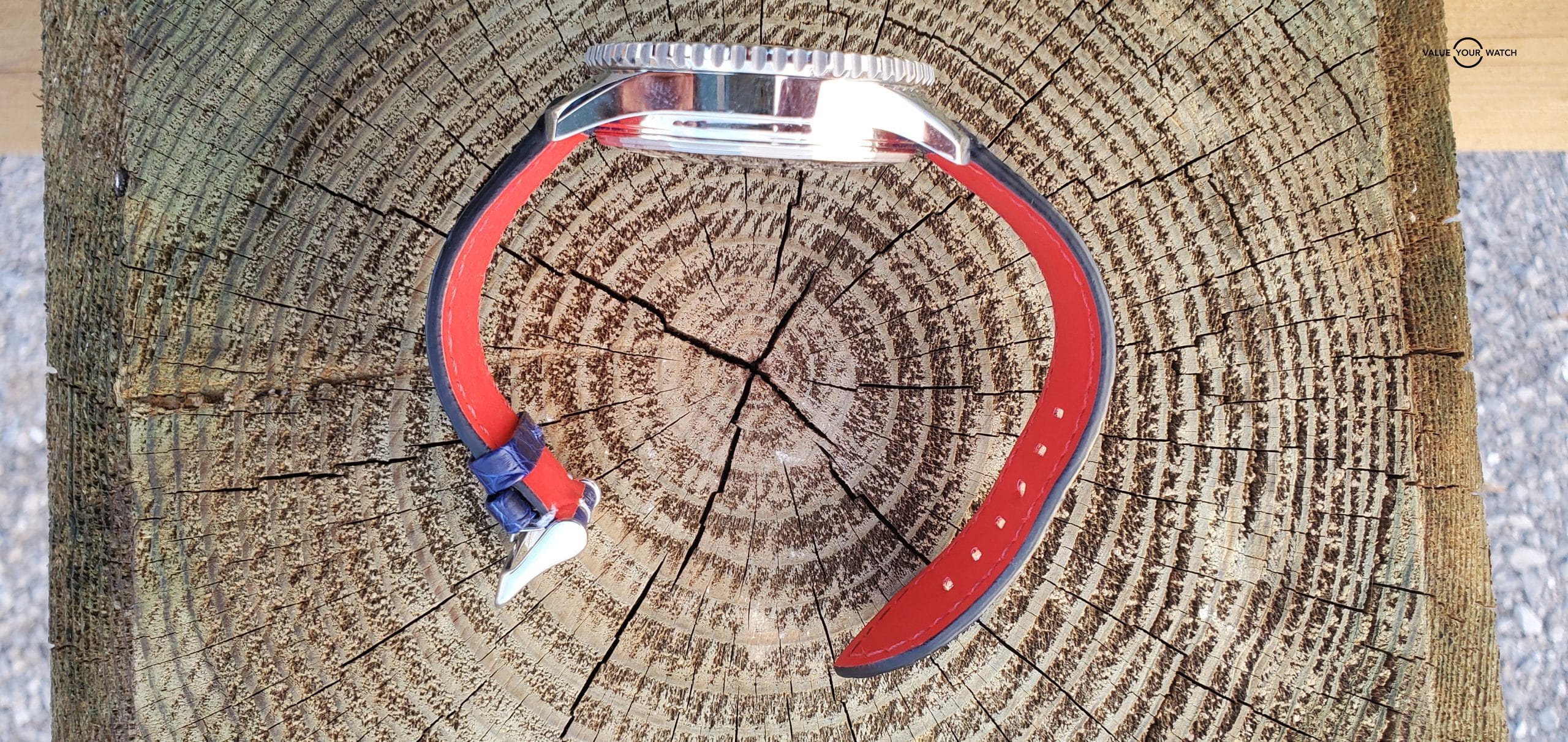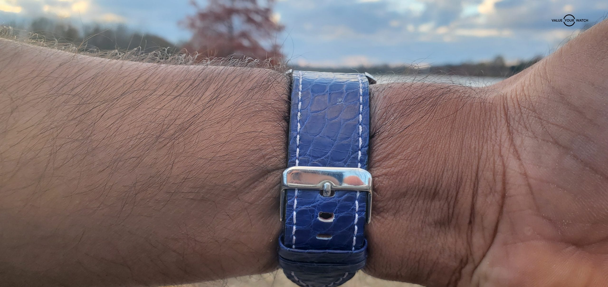 > After market blue crocodile strap (already on watch) as well as a tan aftermarket leather strap