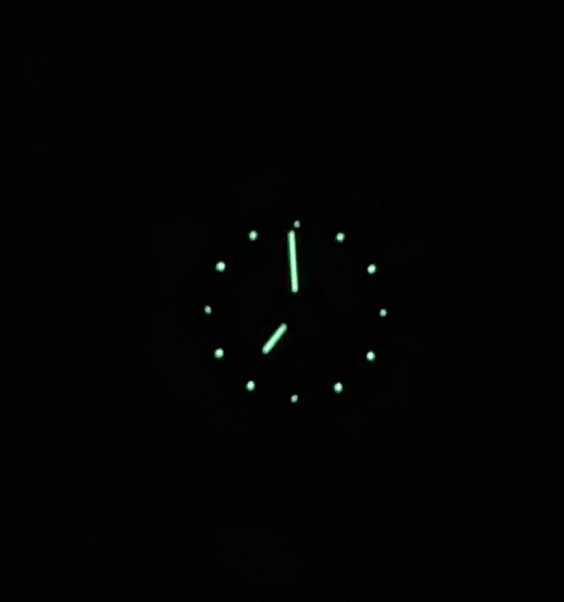 The 24 hours indications are printed in Arabic numerals for the even hours, bold indexes for the odd hours & lighter indexes for the half hour markings.