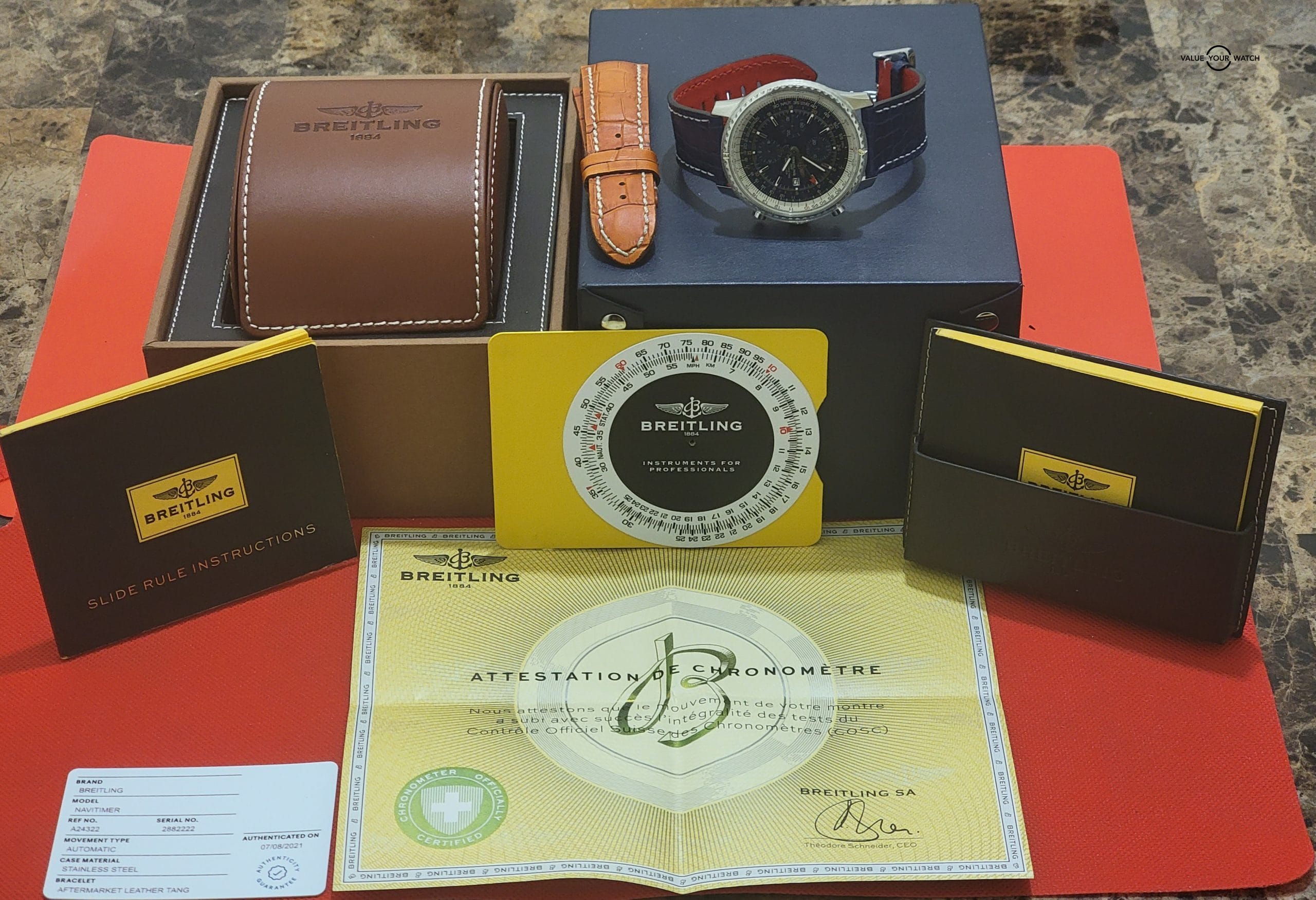 > Comes with with box, pouch, papers, instruction manual, manual/or paper sleeve holder, navigation slide rule, and pre-authenticated cards from Ebay