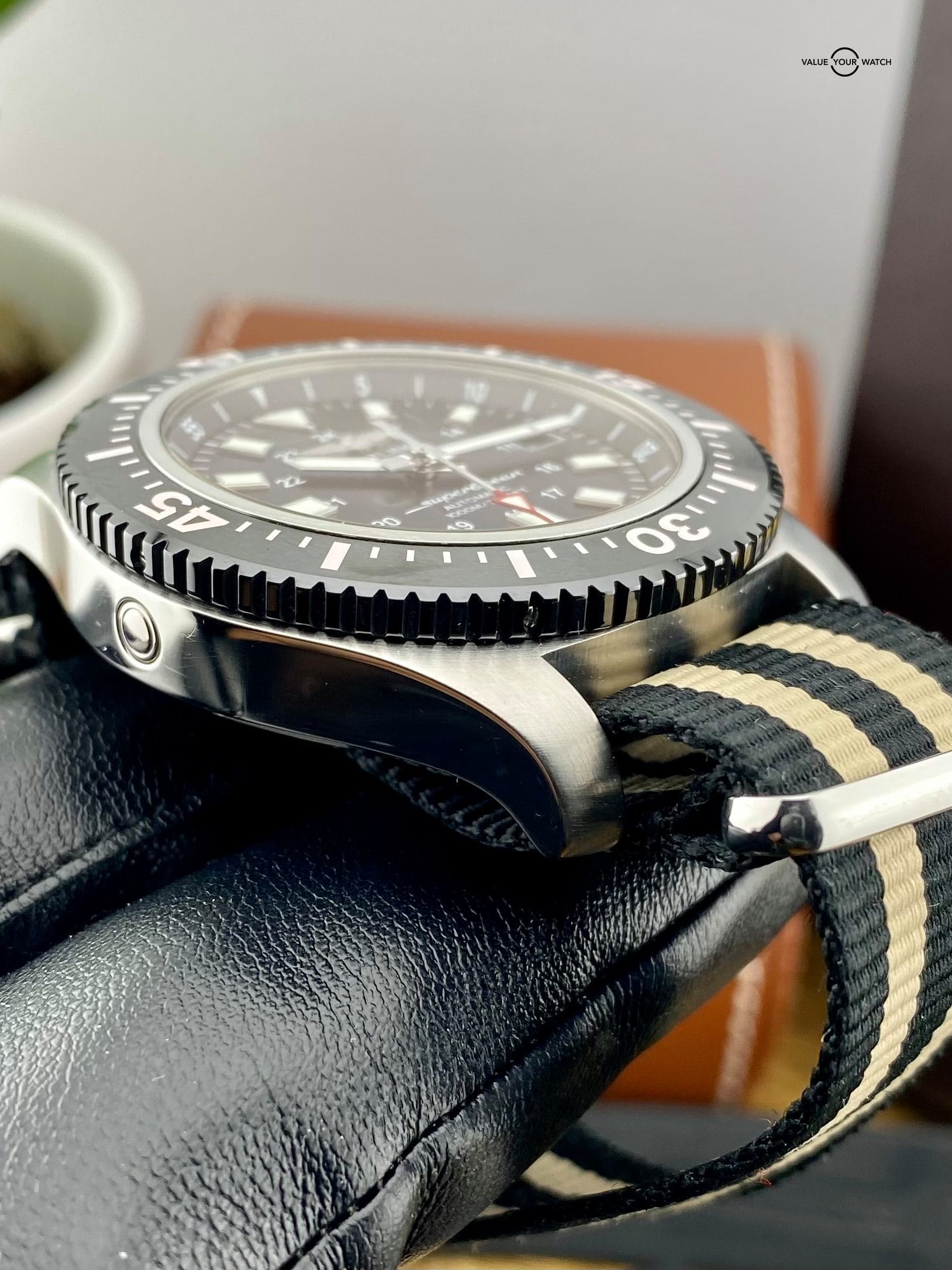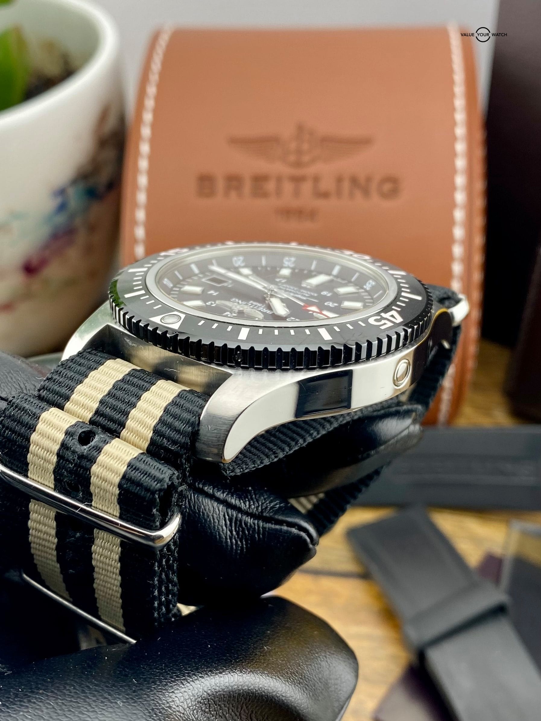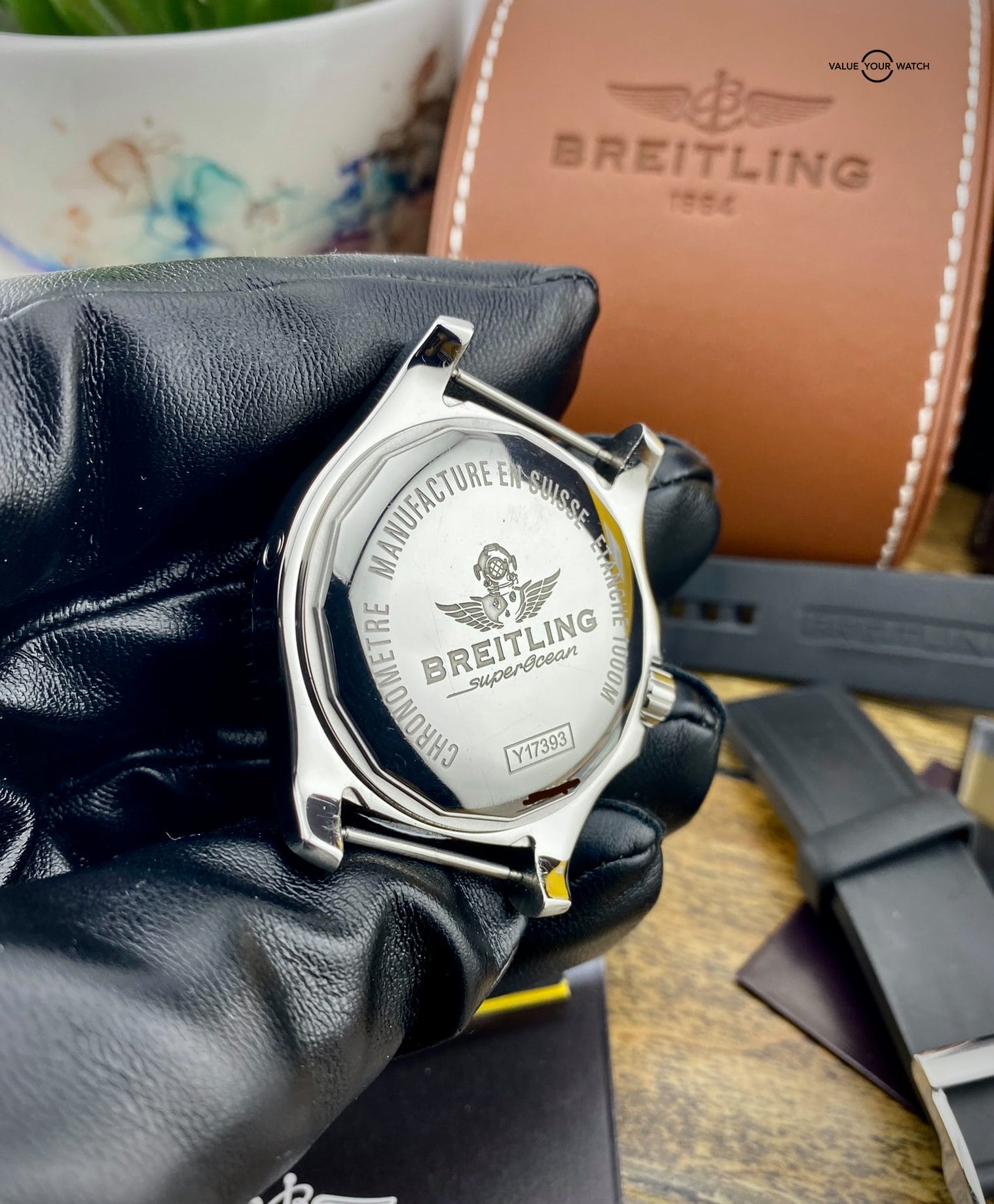The Breitling Superocean Special Editon is tailored for discerning buyers who prioritize quality and value. This timepiece is crafted from high-quality materials, including a stainless steel case, vulcanized rubber strap, and a black dial with Arabic numerals and indices. The Special Edition comes with a black ceramic bezel and unique diver helmet on the case back. The Breitling Superocean Special Edition Automatic is an ideal gift for anyone who values precision, style, and sophistication.