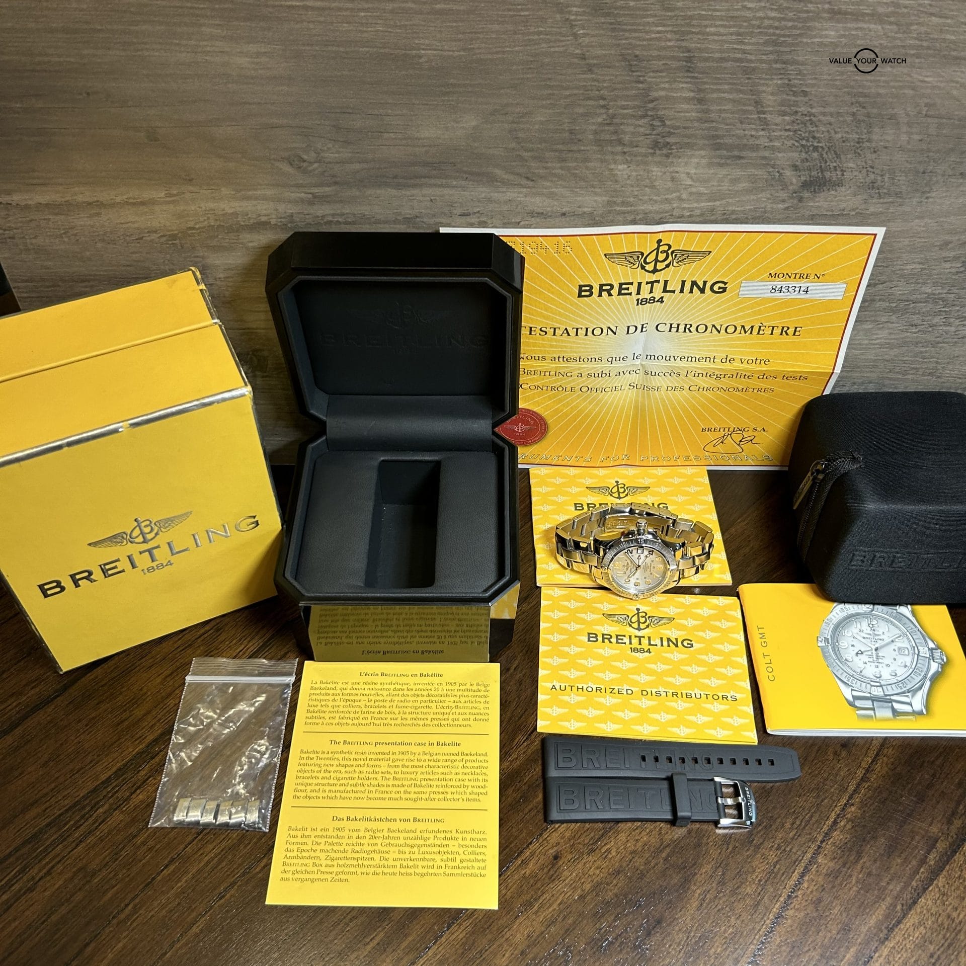 Breitling Colt GMT White Dial watch 41mm Complete Set Bracelet + Extra strap + travel case