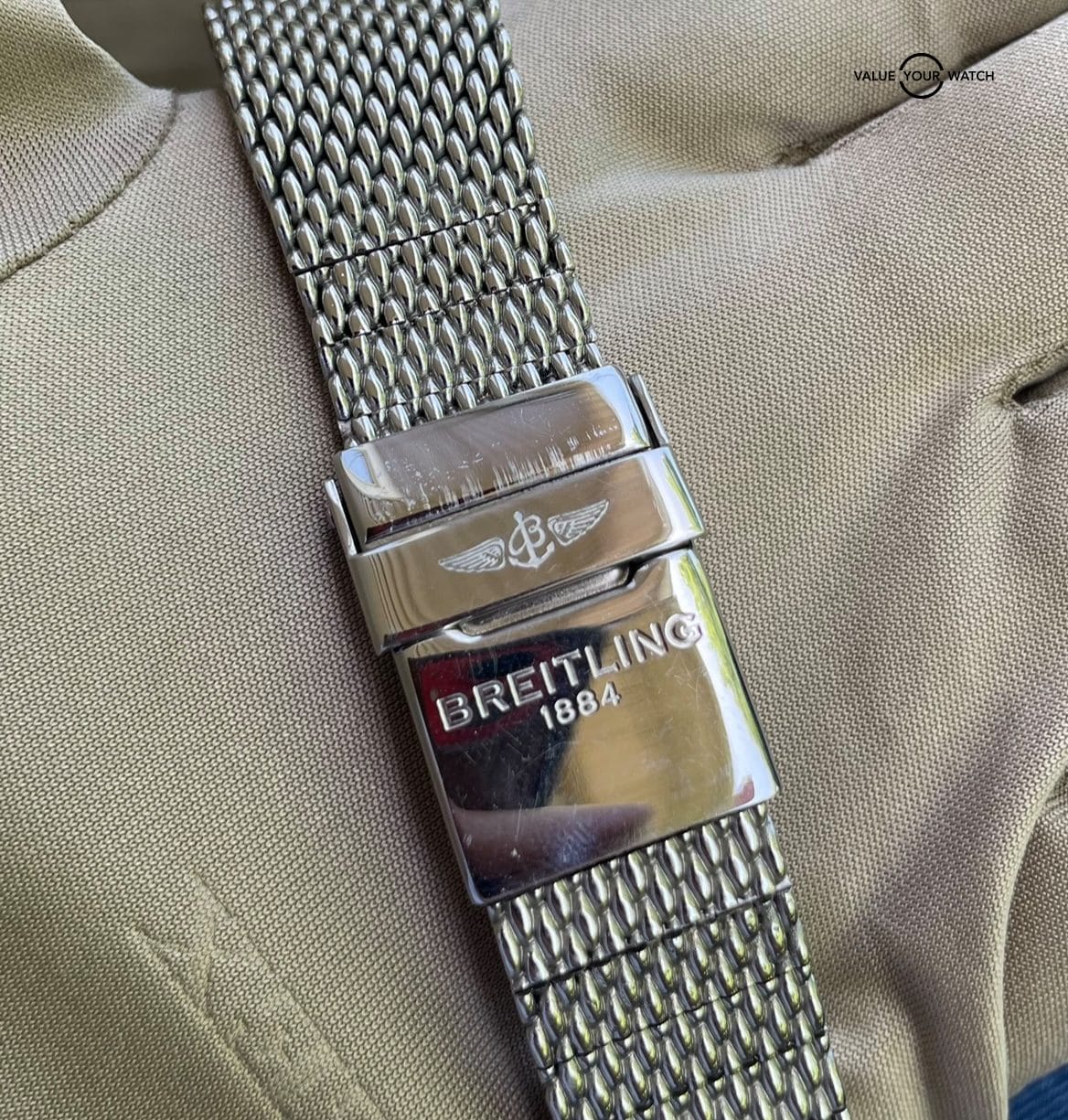 This watch also has 8 hands on the dial and tells Day, Date, Month, 24 hour register with small seconds and chronograph functionality for timing things. On top of that it also feature the famous slide rule by Breitling that was designed to work out math problems on the “fly” for pilots
