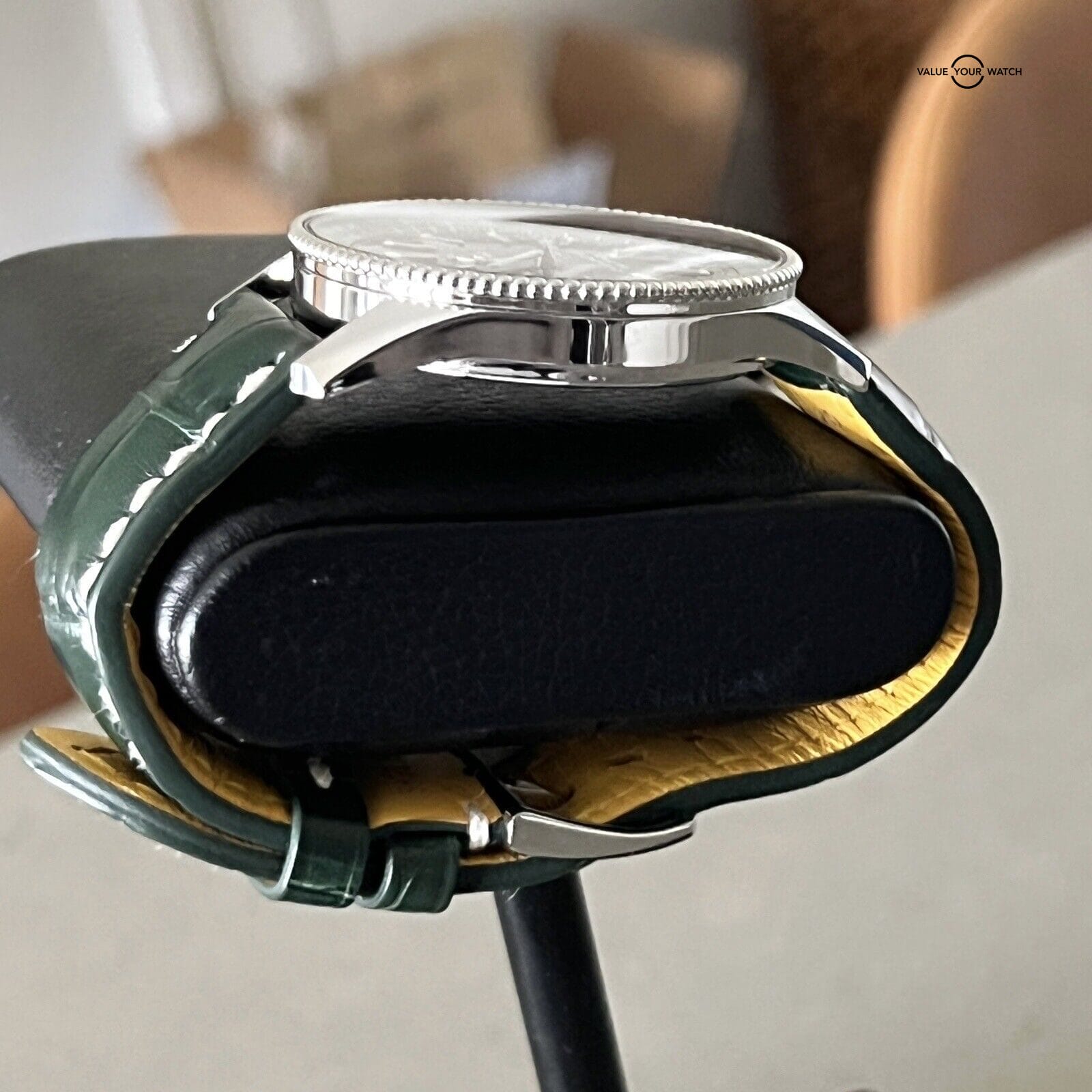 Caseback Design: The caseback features an engraved image of an aircraft, reflecting the watch’s aviation heritage.