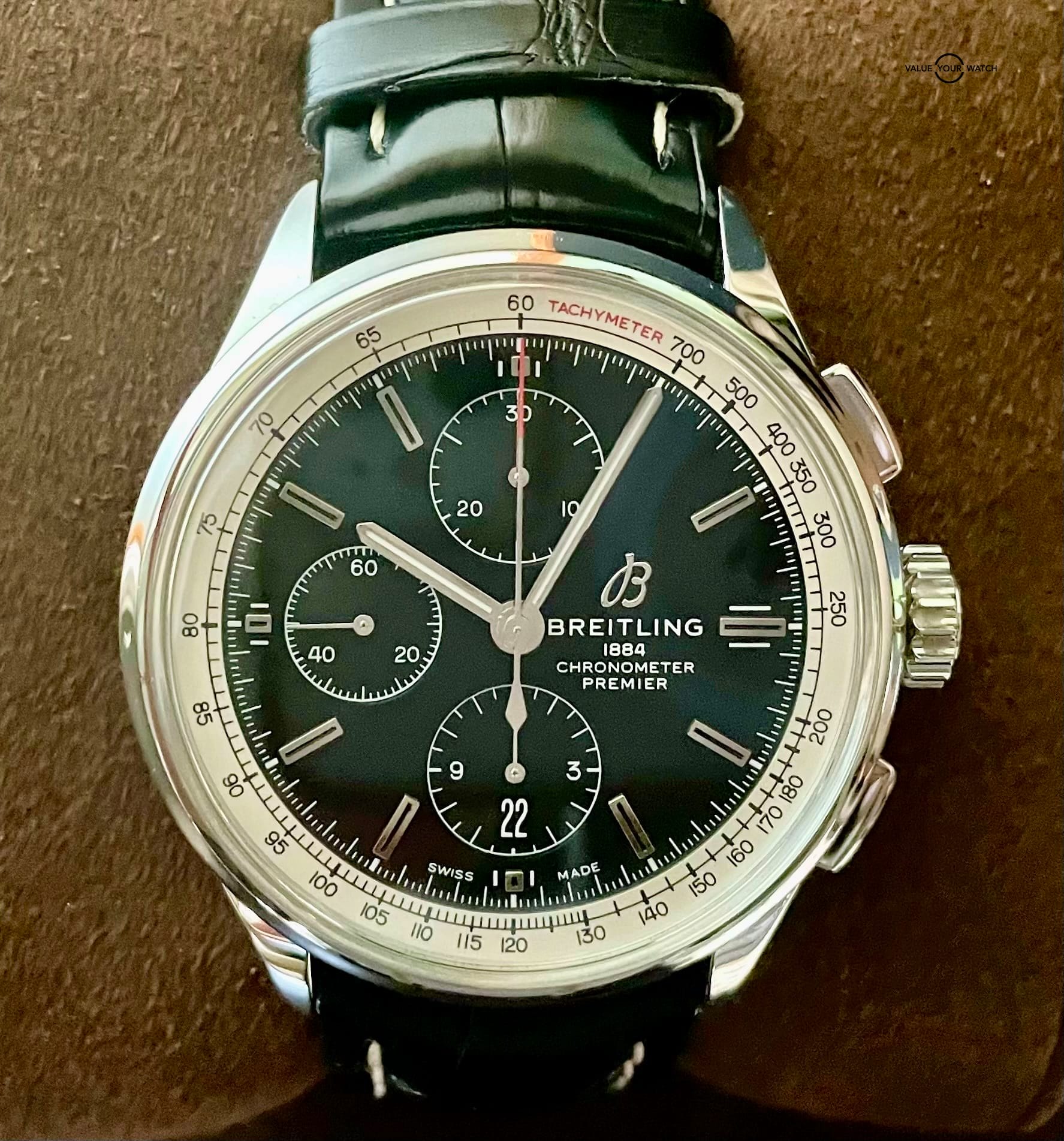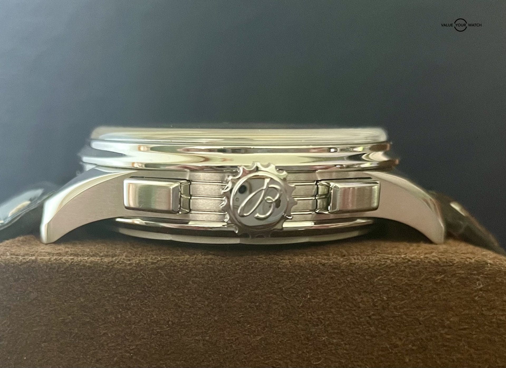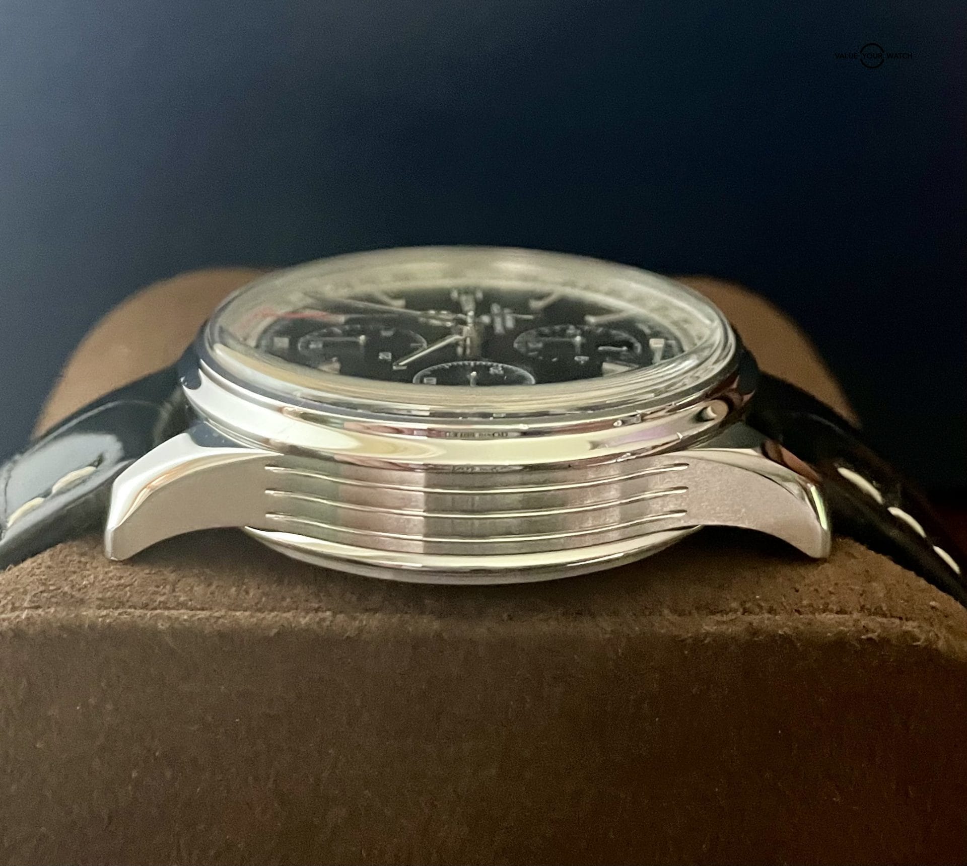 This watch gives a 1950’s vibe, but with a more modern look. Super easy to wear. From the quick deployment clasp to the smooth push buttons, this watch just begs to be worn as a daily. Good condition with a coupe hairlines and a couple knicks on the side opposite of the crown. I will gladly send more pics or answer any questions you may have. This watch comes as a full set. All the paperwork ( COSC cert, warranty manuals etc). It keeps great time. Shoot me a message for any questions you may have.