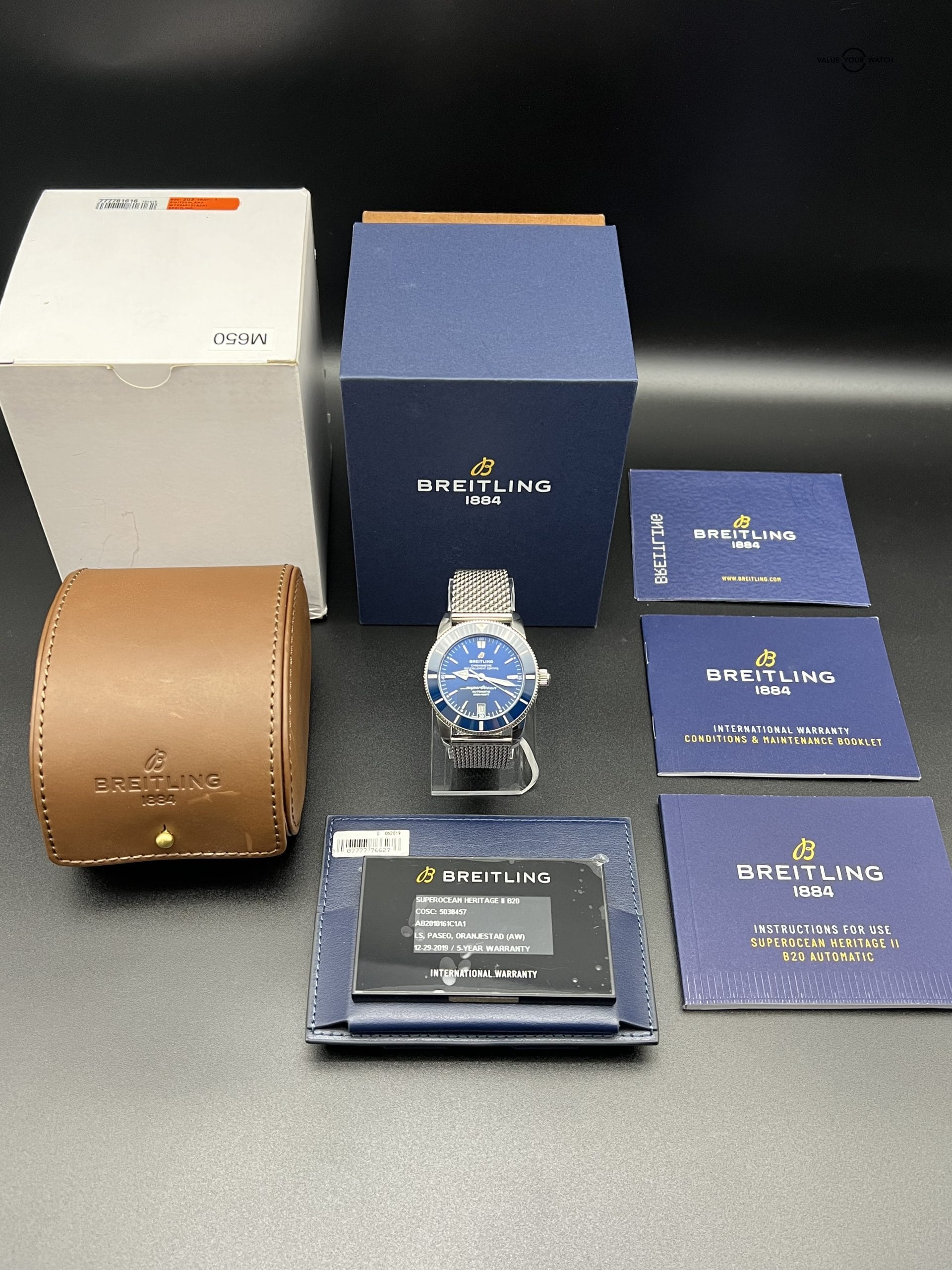 Breitling Superocean Heritage II 42 Blue Stainless Steel Mesh Warranty AB2010161C1A1