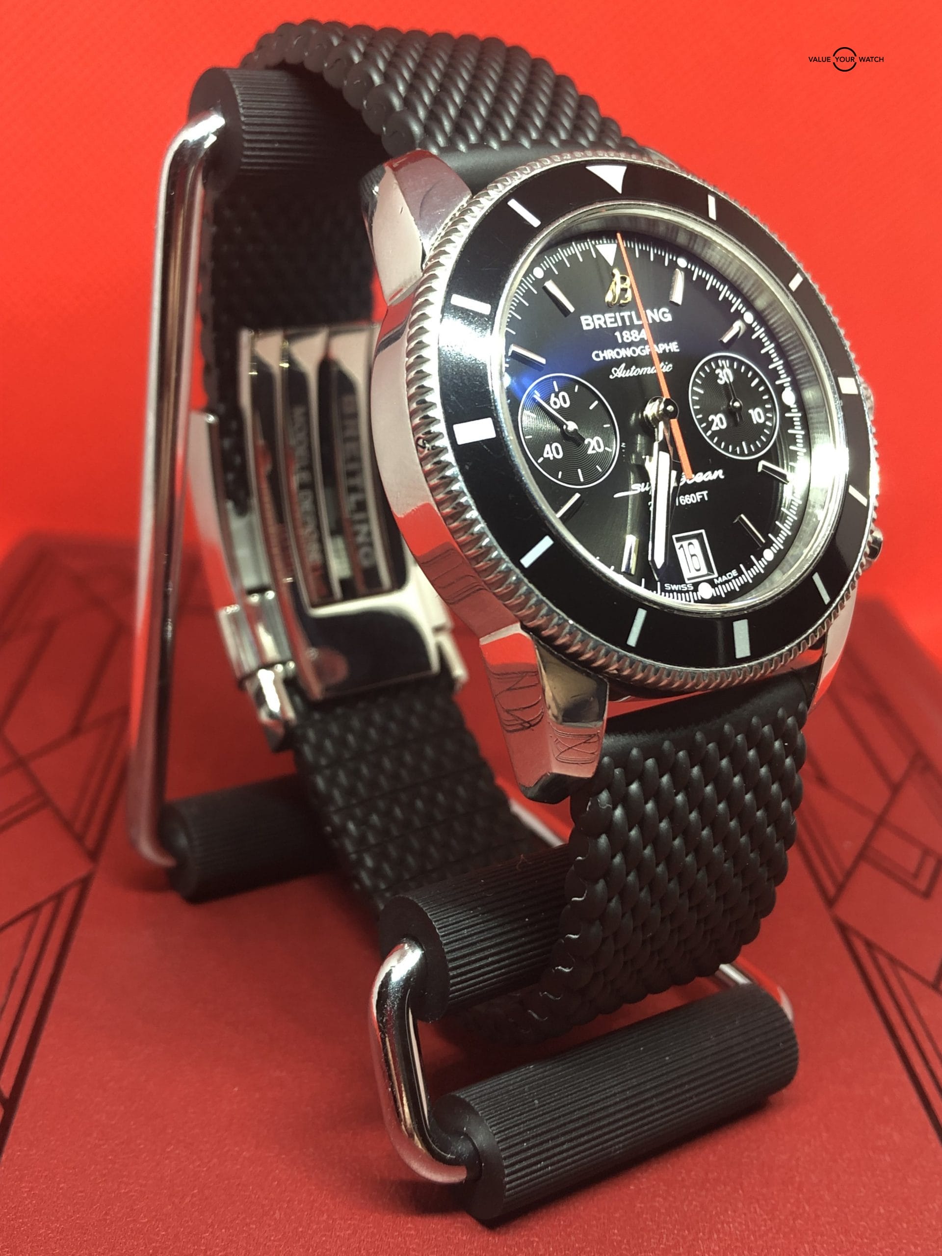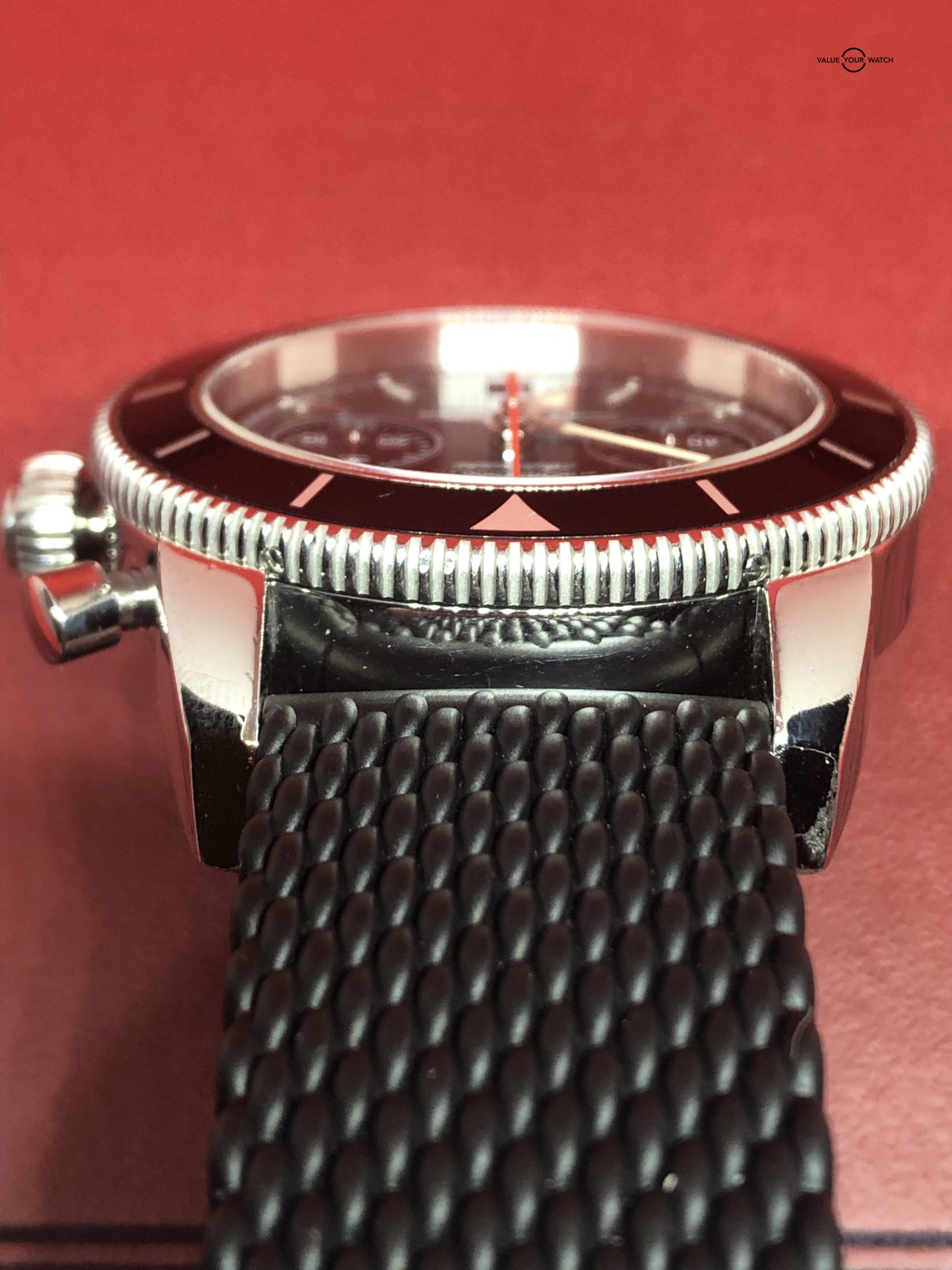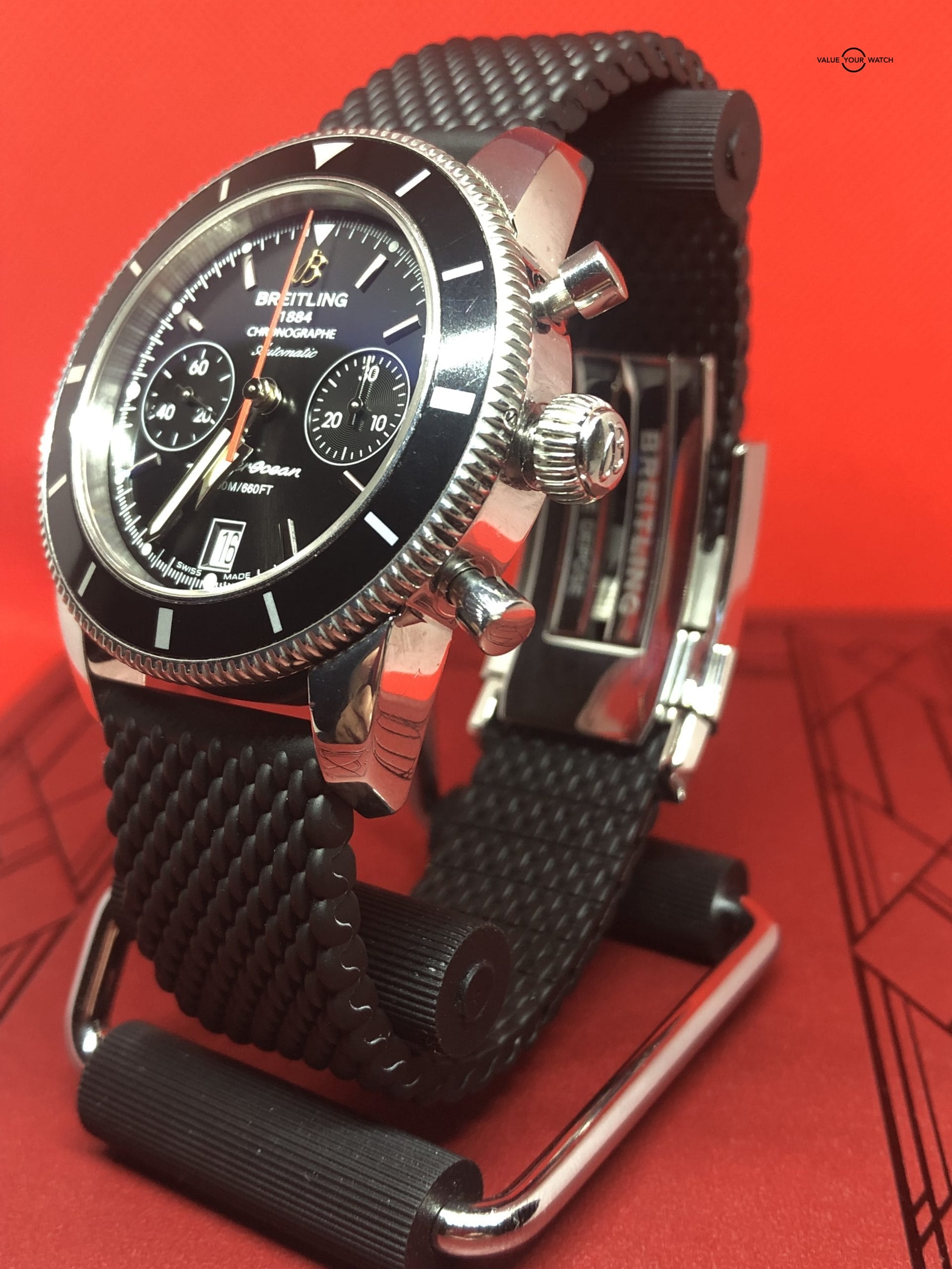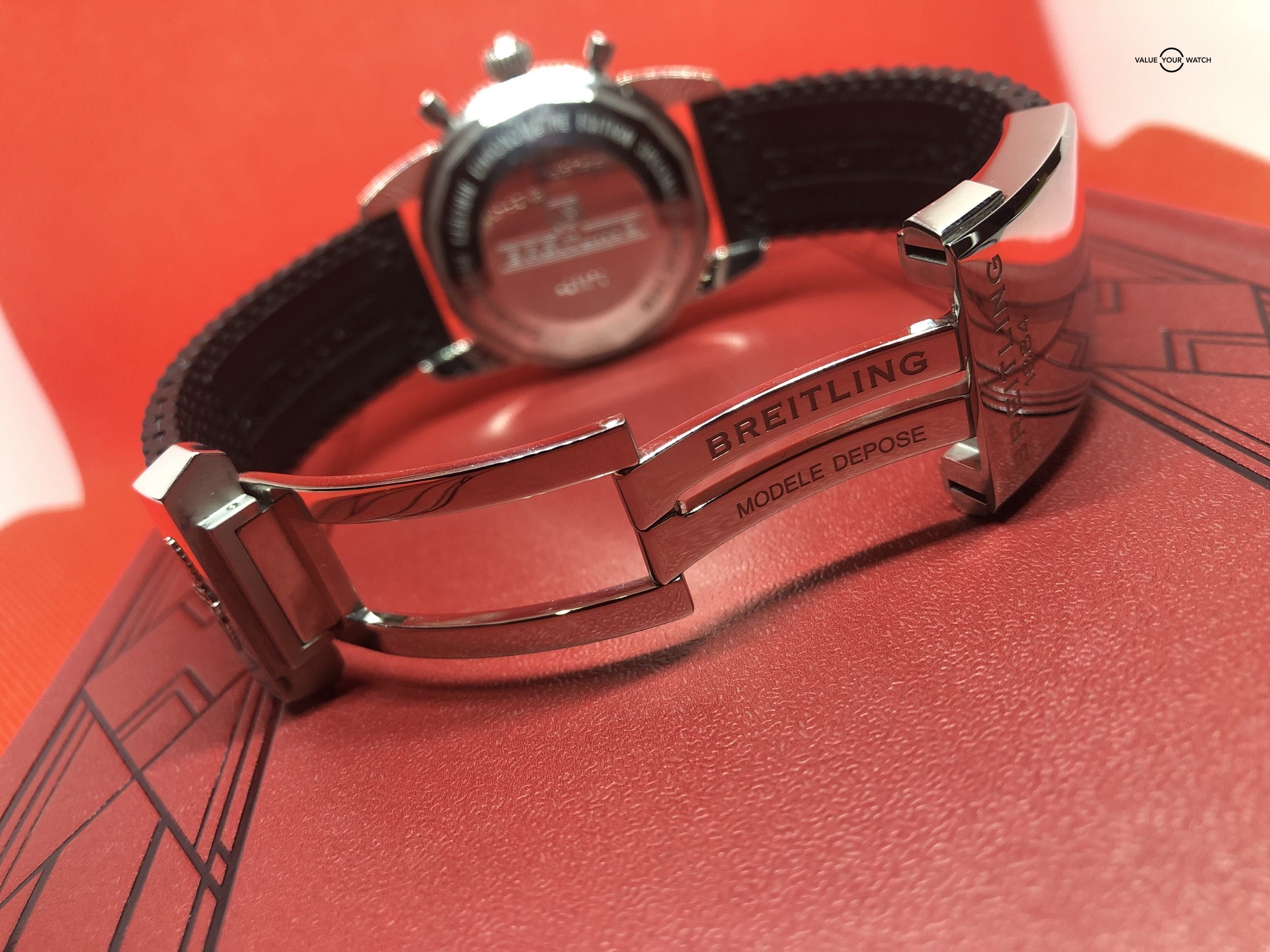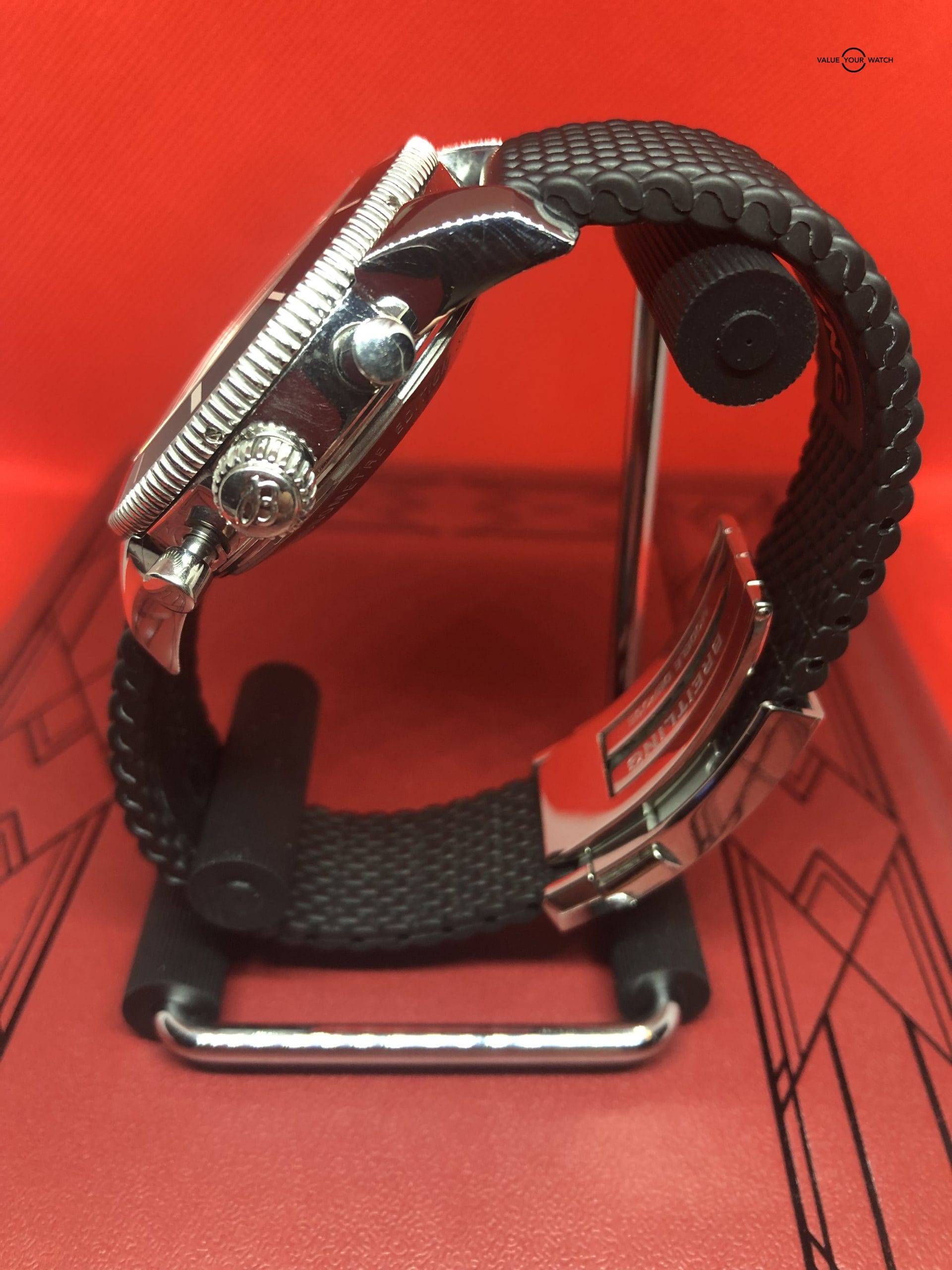 Bracelet: Original rubber bracelet with the Breitling deployment clasp buckle, plus an aftermarket mesh bracelet