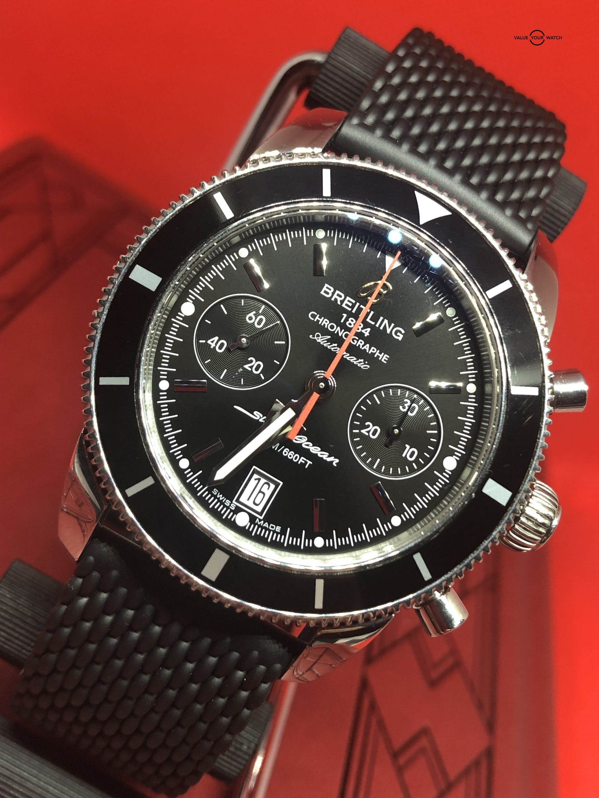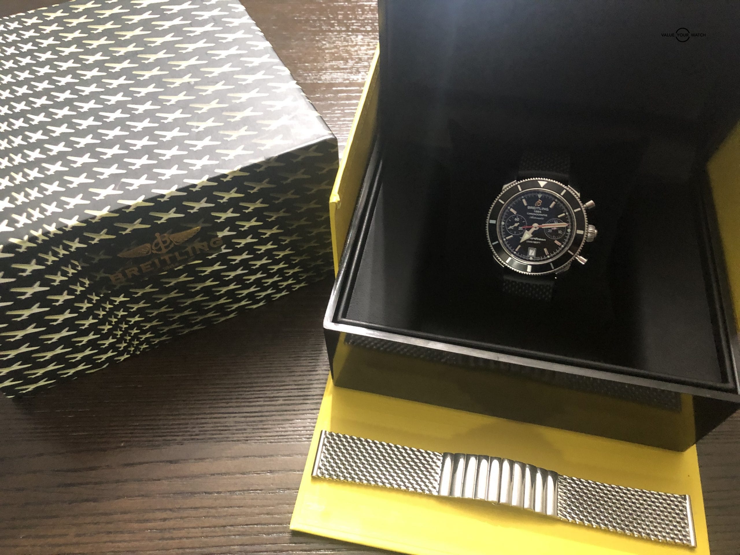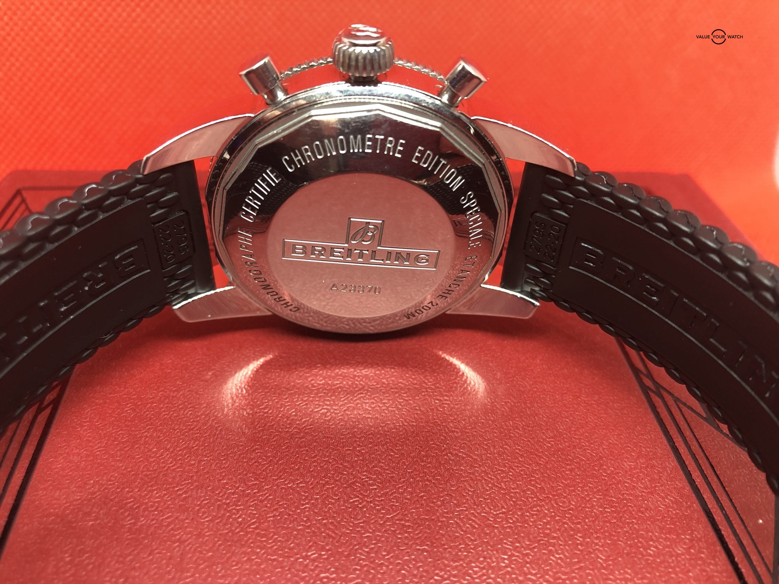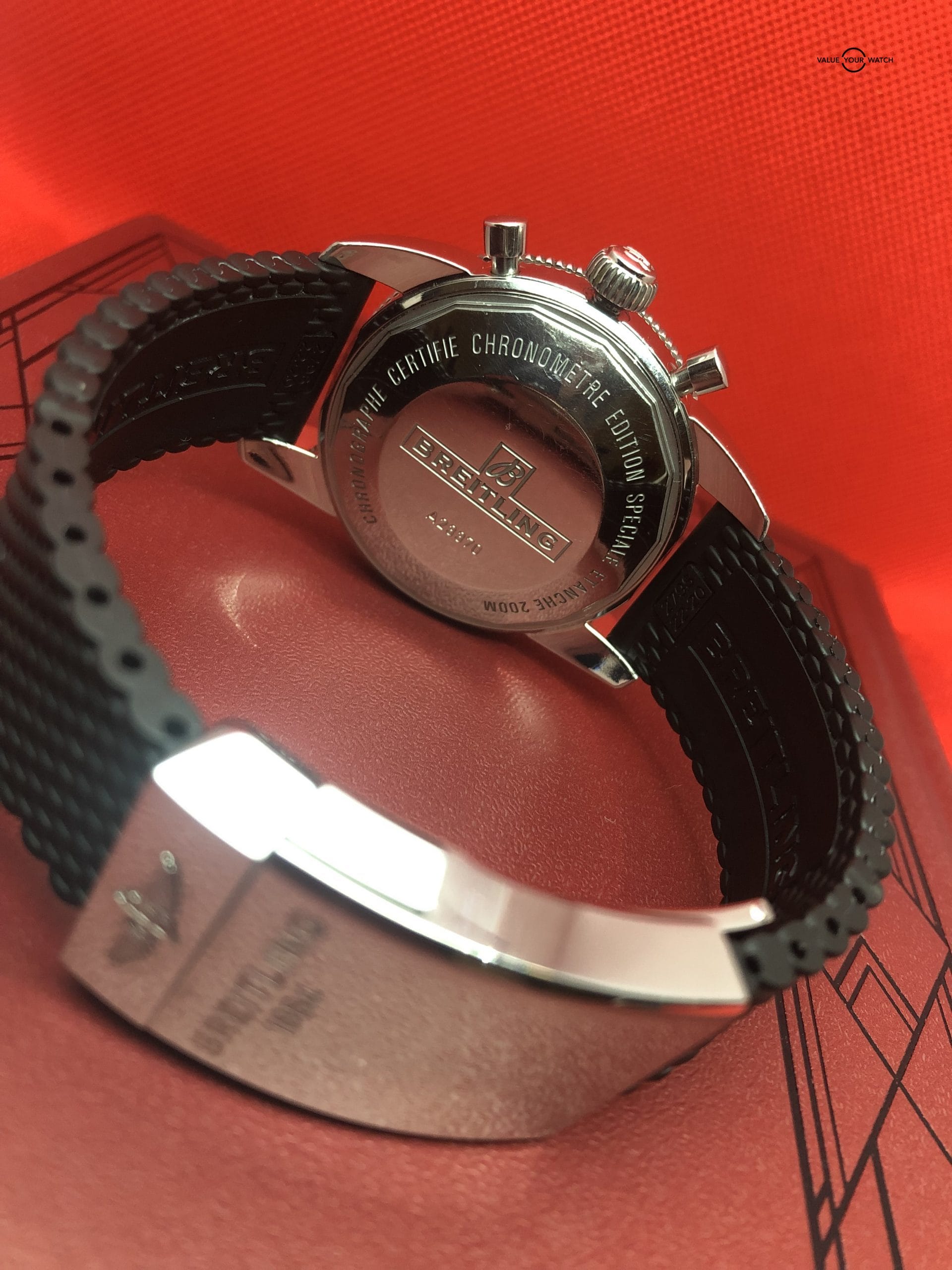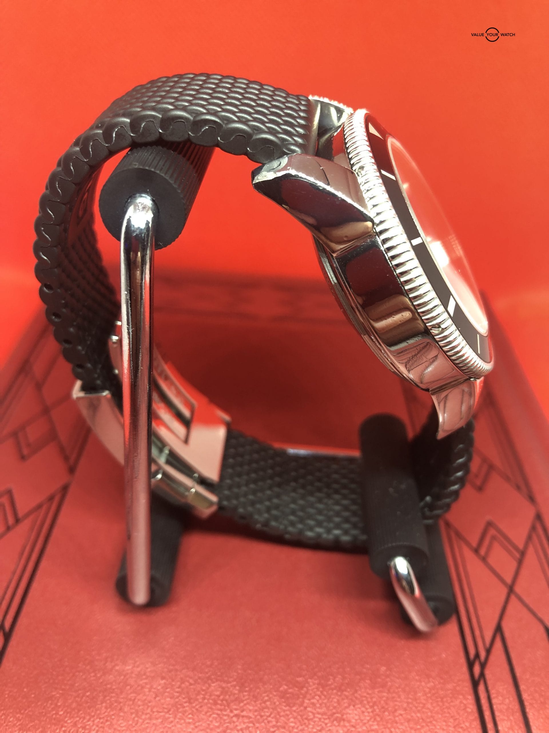 Bracelet: Original rubber bracelet with the Breitling deployment clasp buckle, plus an aftermarket mesh bracelet